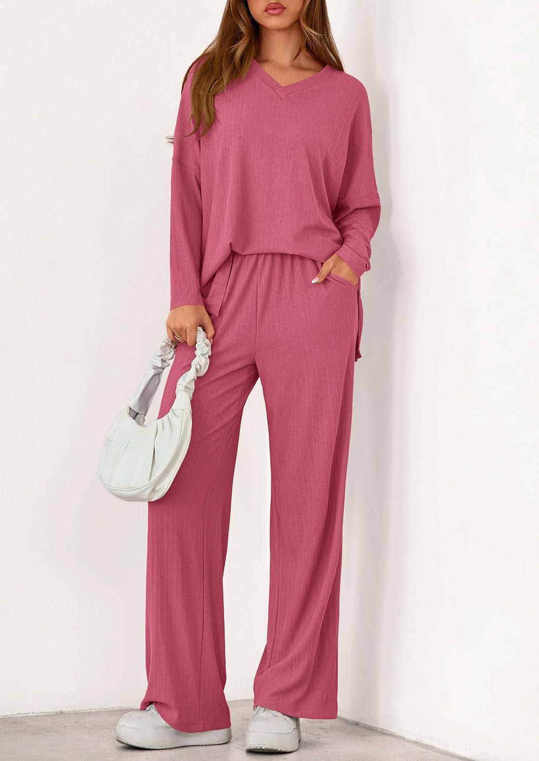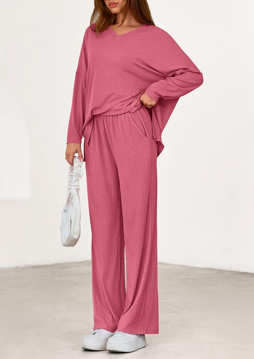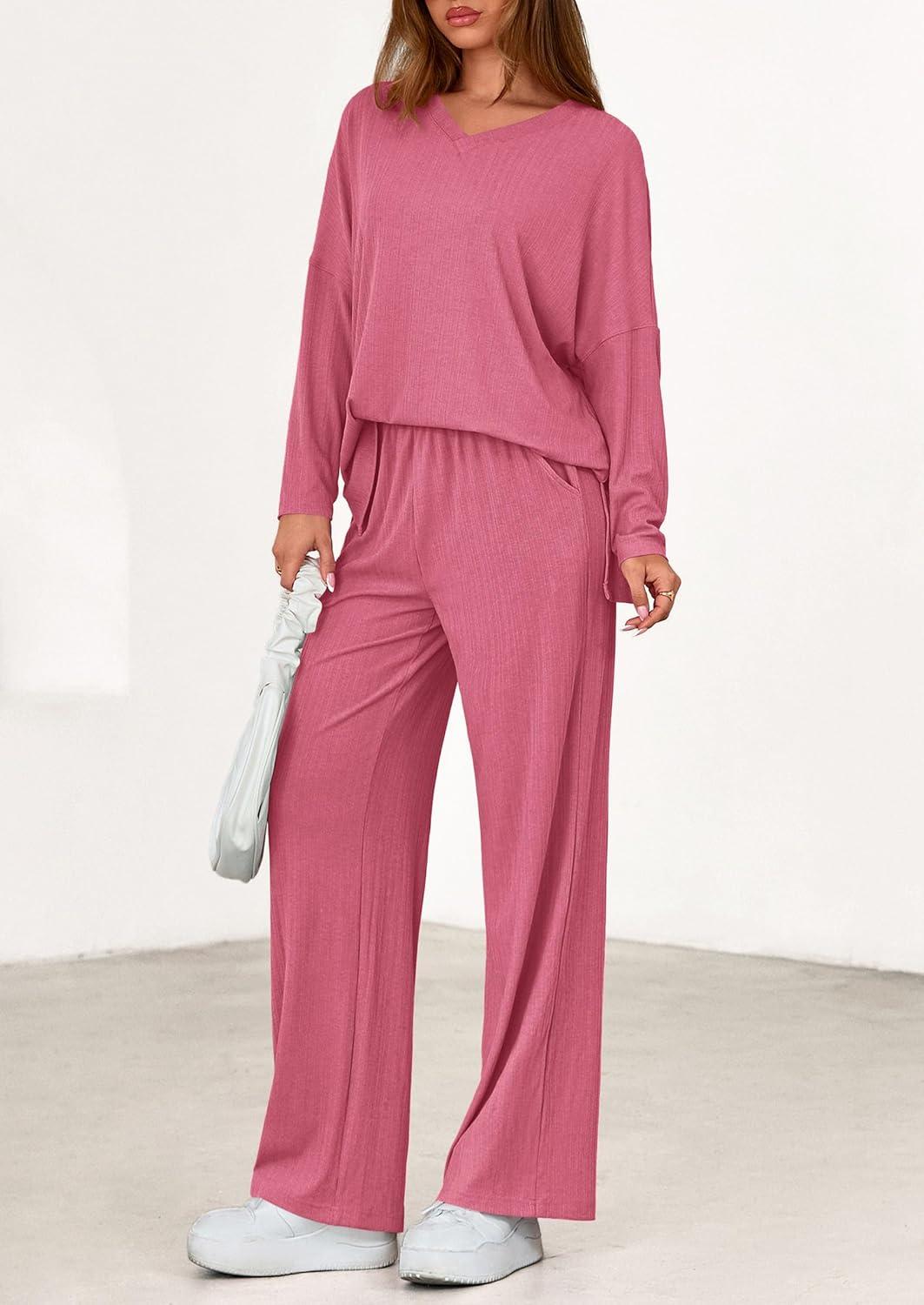 Get more for your money with our exclusive bundle deals on PRETTYGARDEN 2 Piece Lounge Sets for Women Fall Outfits 2025 Casual Loose Long Sleeve Tops Wide Leg Pants Matching Pajama Set(Pink) and accessories.