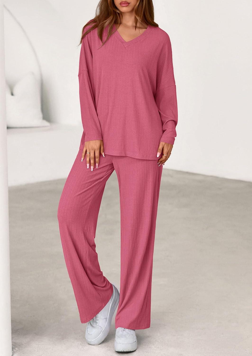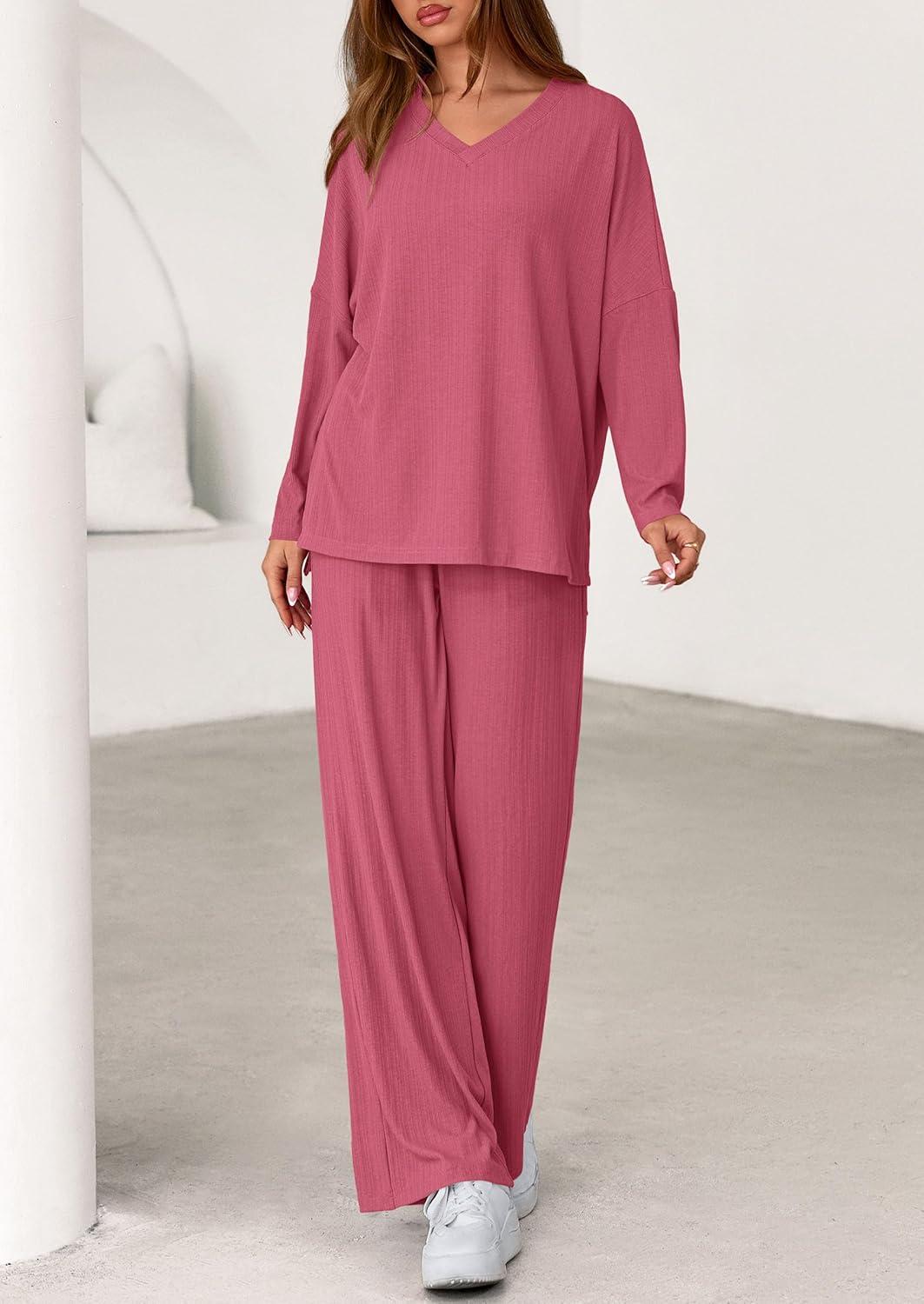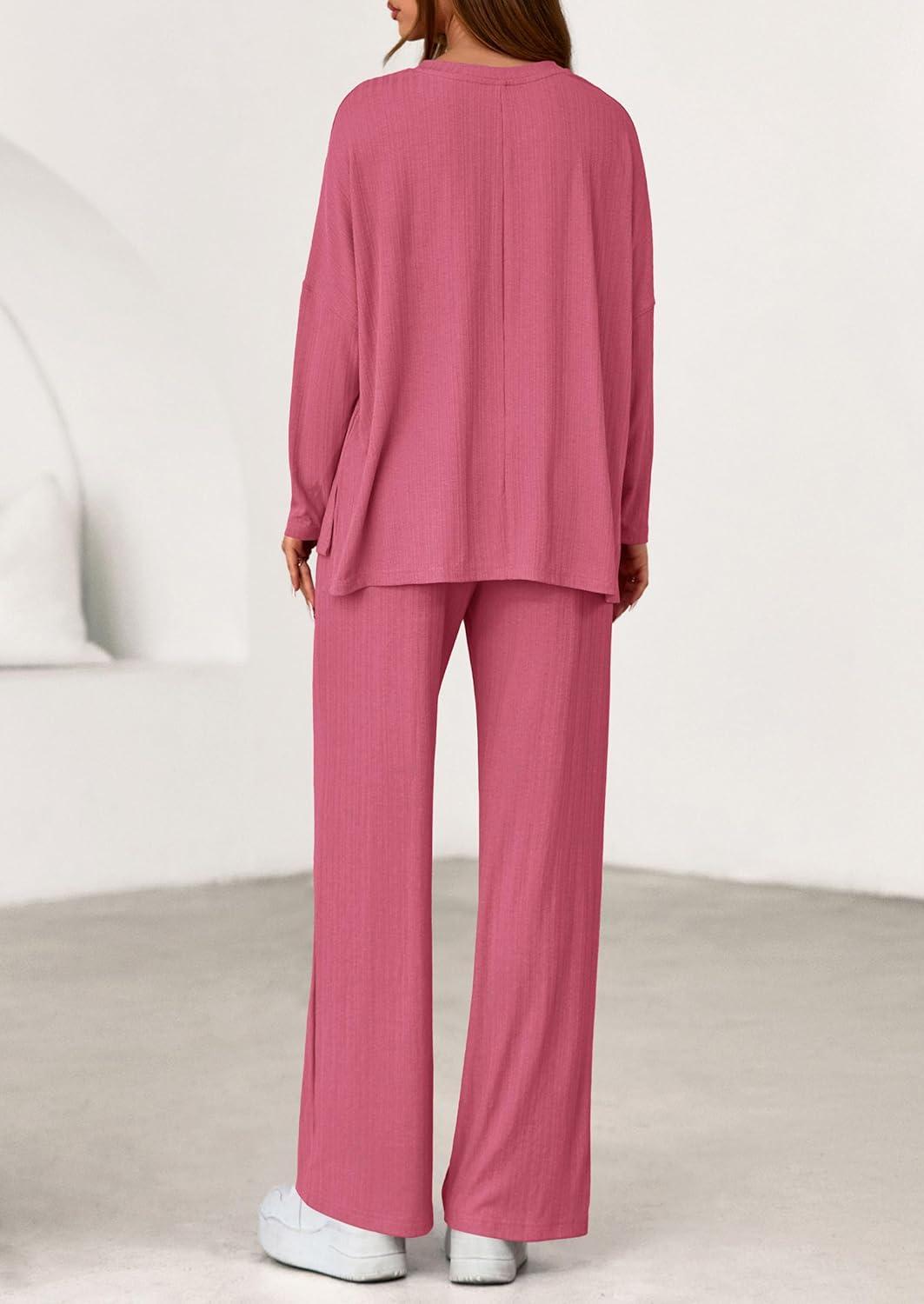 Get more for your money with our exclusive bundle deals on PRETTYGARDEN 2 Piece Lounge Sets for Women Fall Outfits 2025 Casual Loose Long Sleeve Tops Wide Leg Pants Matching Pajama Set(Pink) and accessories.