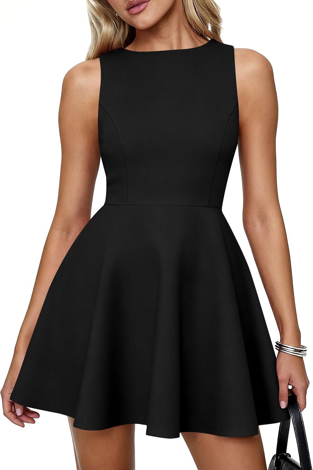 PRETTYGARDEN A Line Dresses for Women 2026 Elegant Classy Sleeveless Summer Short Tank Cocktail Party Spring Mini Dress(Black)
