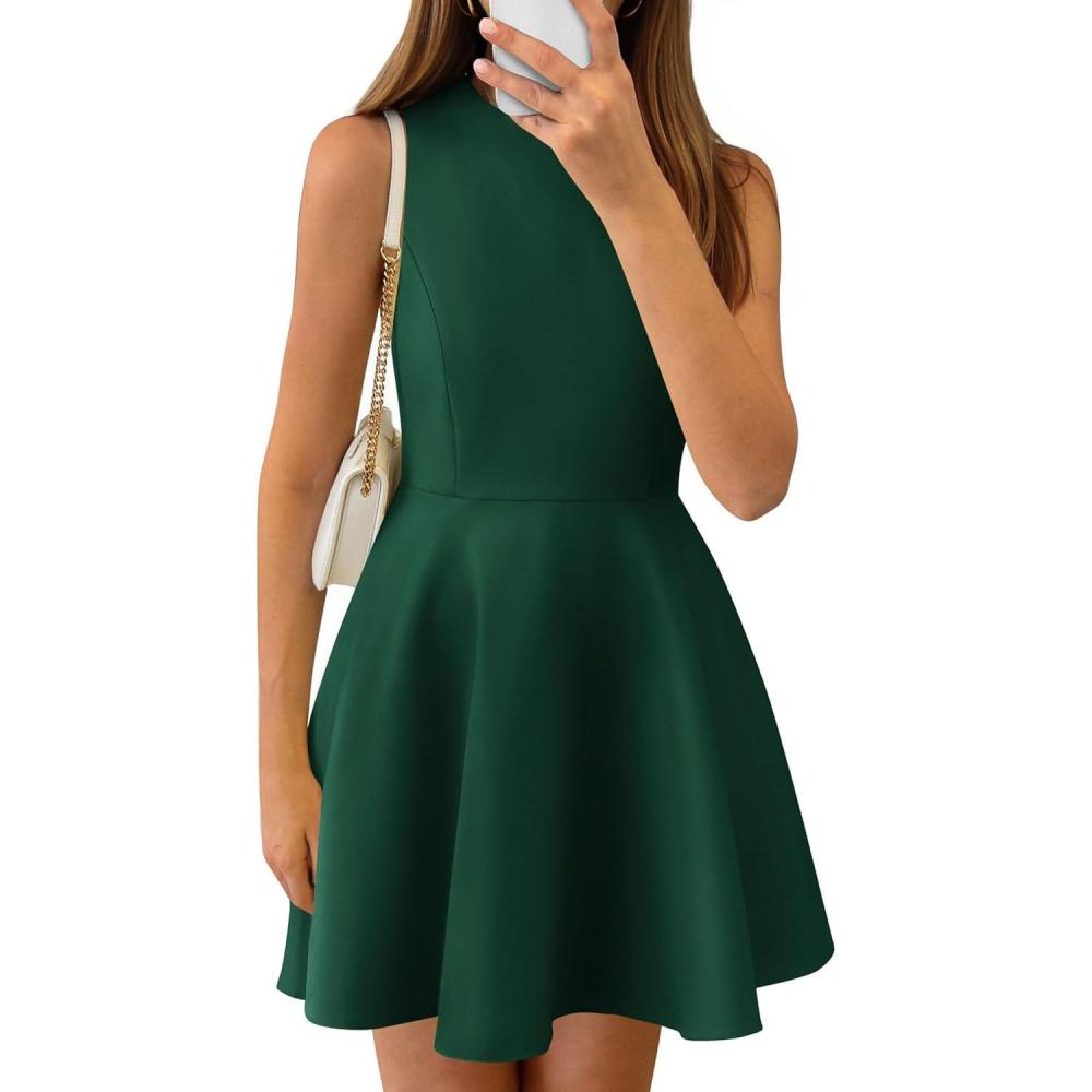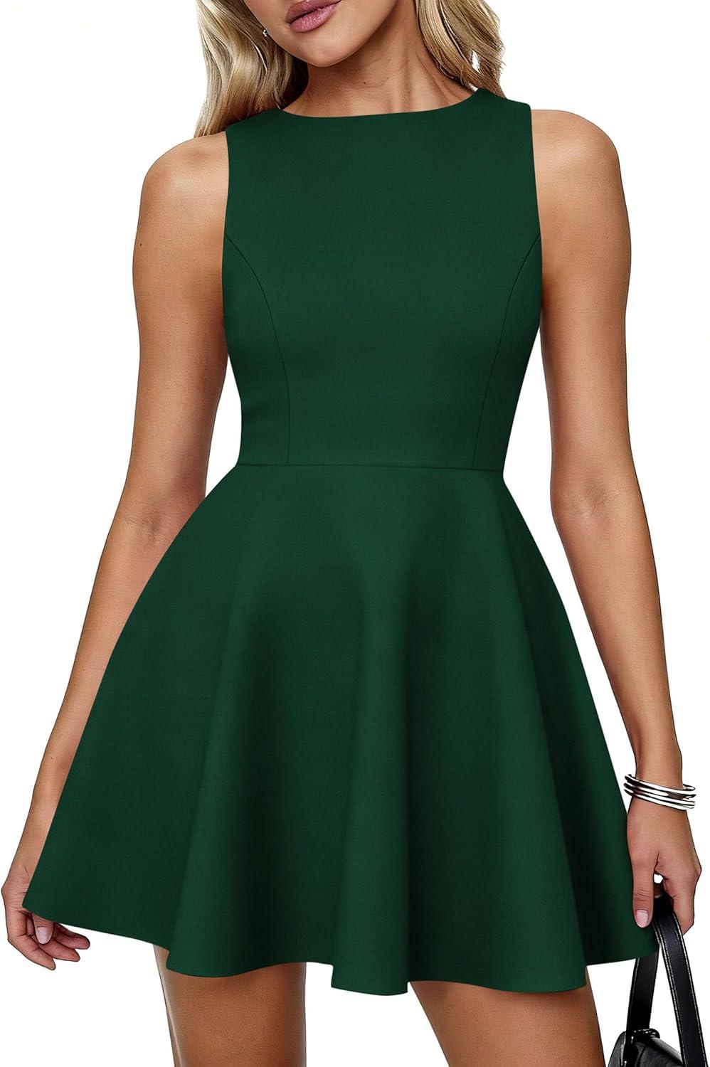 PRETTYGARDEN A Line Dresses for Women 2026 Elegant Classy Sleeveless Summer Short Tank Cocktail Party Spring Mini Dress(Dark Green)