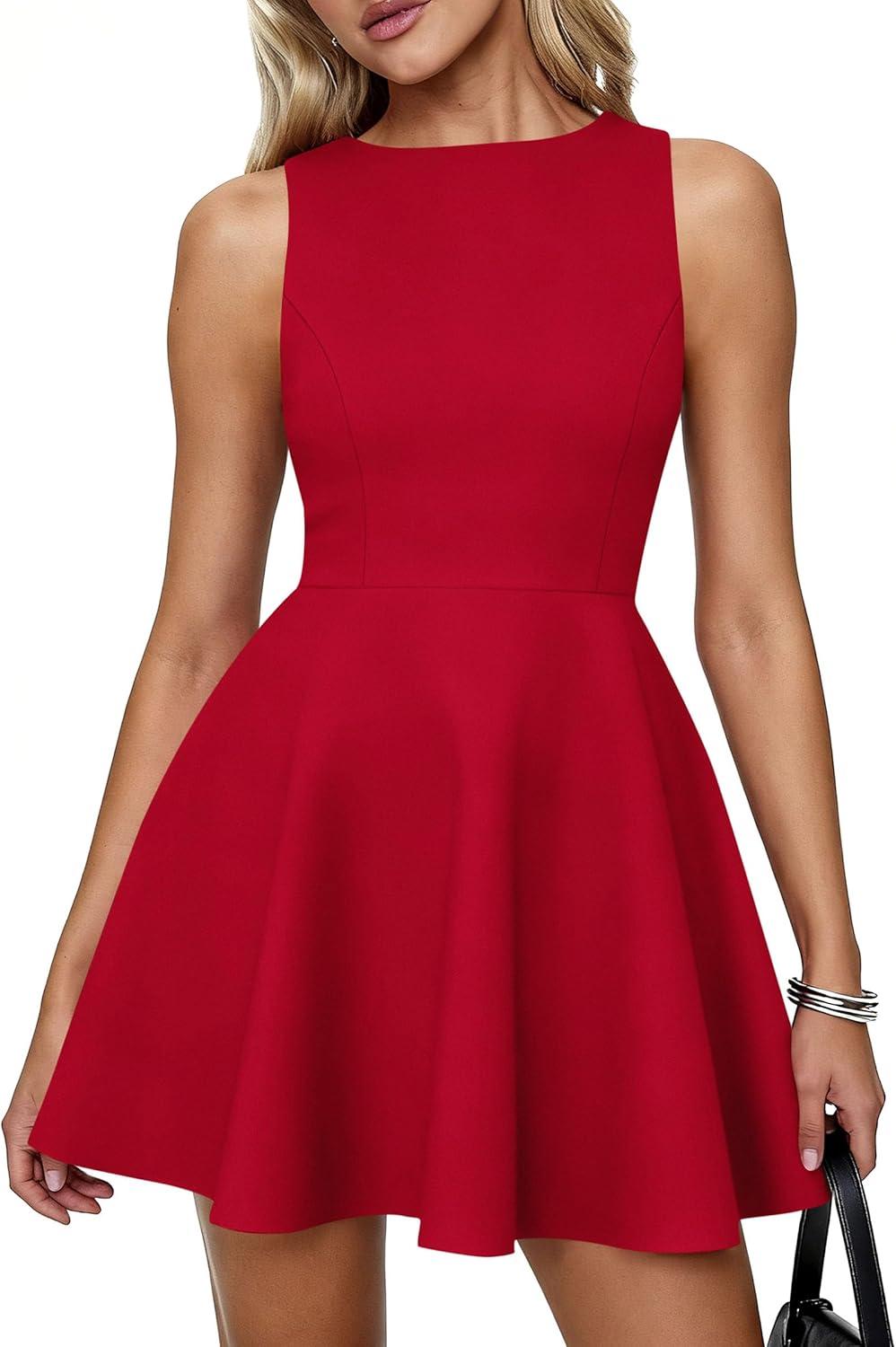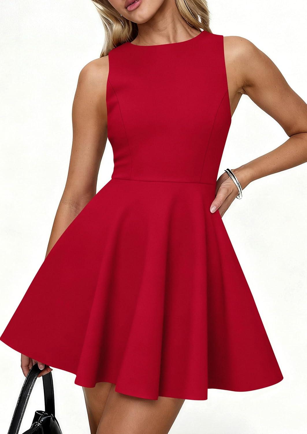 PRETTYGARDEN A Line Dresses for Women 2026 Elegant Classy Sleeveless Summer Short Tank Cocktail Party Spring Mini Dress(Red)