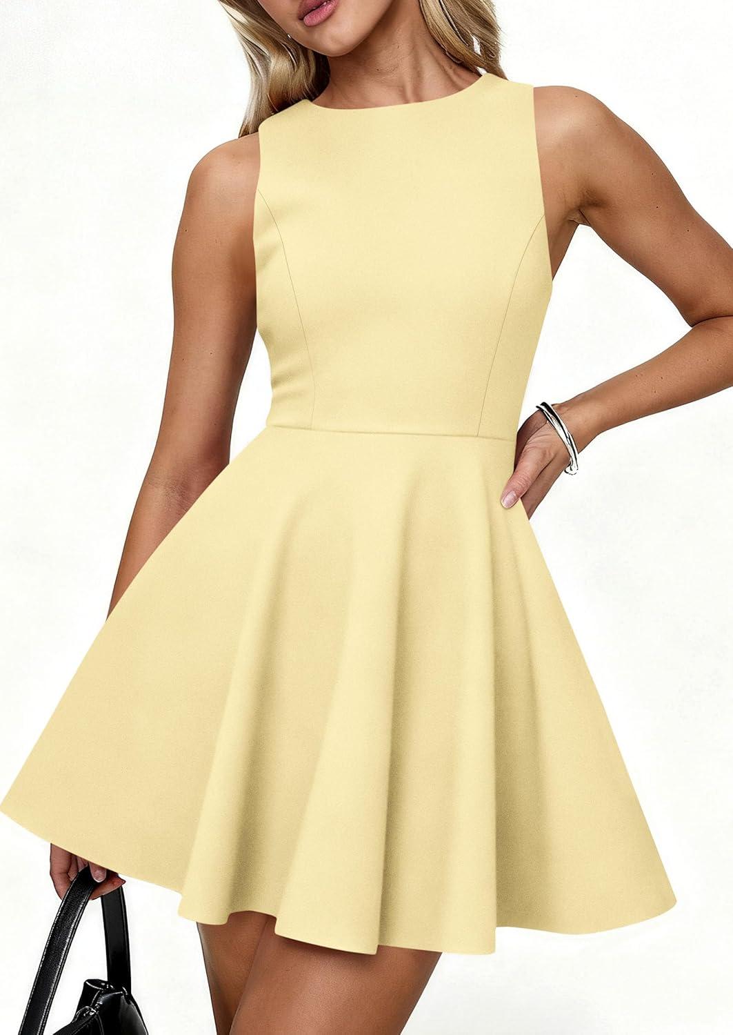 PRETTYGARDEN A Line Dresses for Women 2026 Elegant Classy Sleeveless Summer Short Tank Cocktail Party Spring Mini Dress(Yellow)