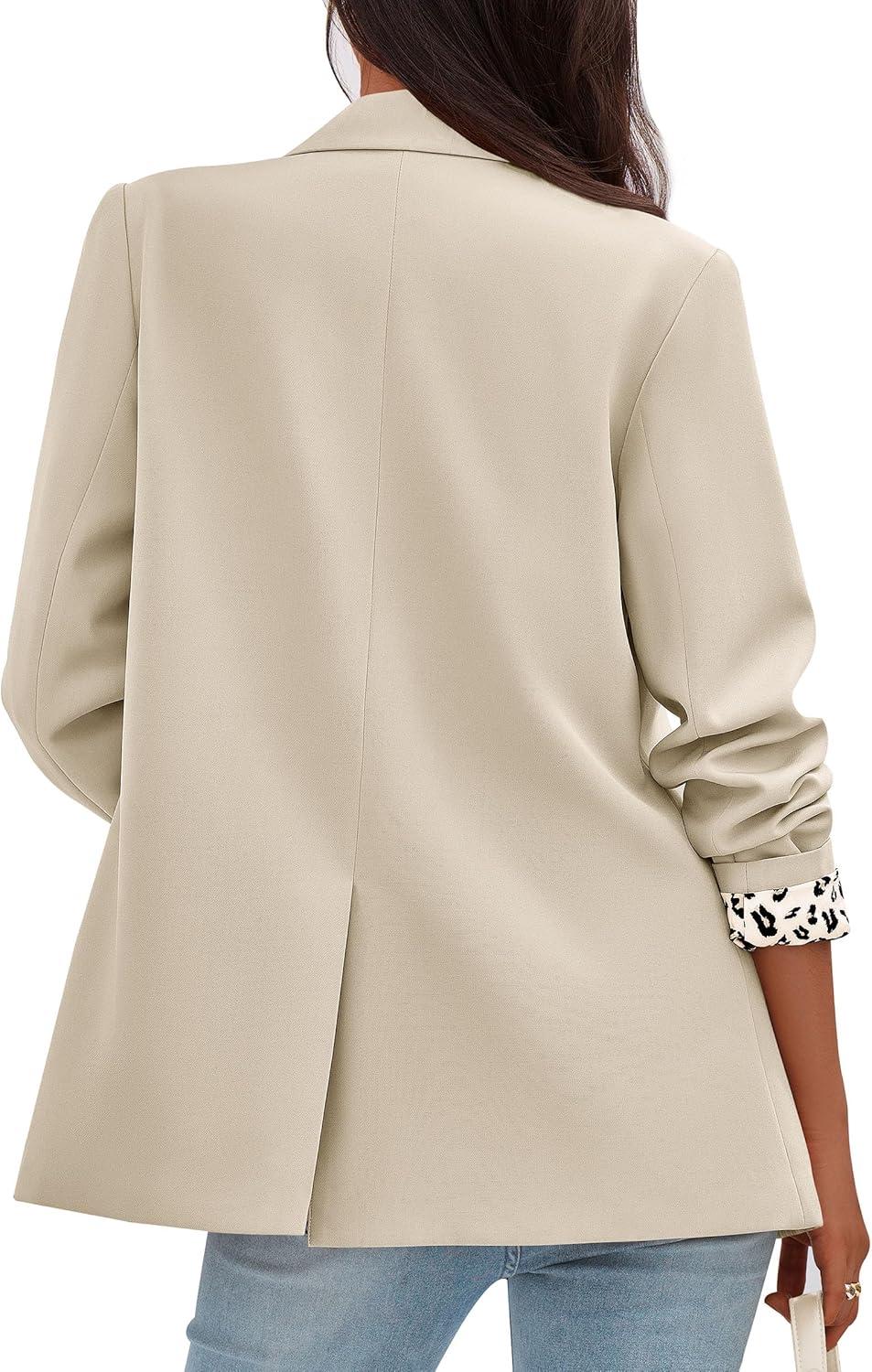 PRETTYGARDEN Blazers for Women 2025 Fall Work Office Suit Jackets Dressy Open Front Leopard Blazer Business Casual Outfits(Beige)