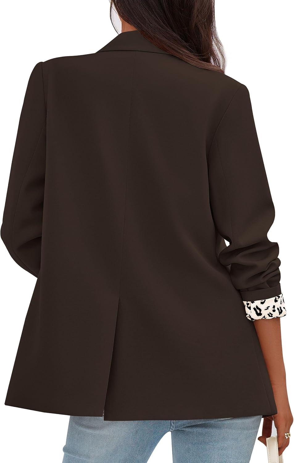 imagePRETTYGARDEN Blazers for Women 2025 Fall Work Office Suit Jackets Dressy Open Front Leopard Blazer Business Casual OutfitsCoffee