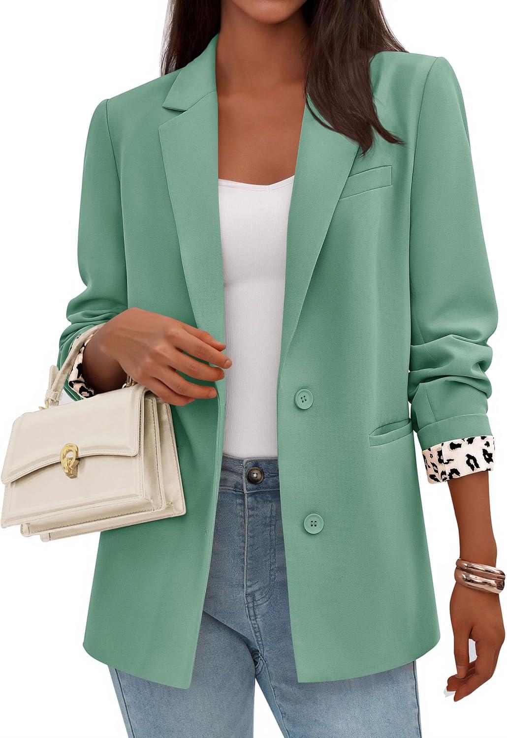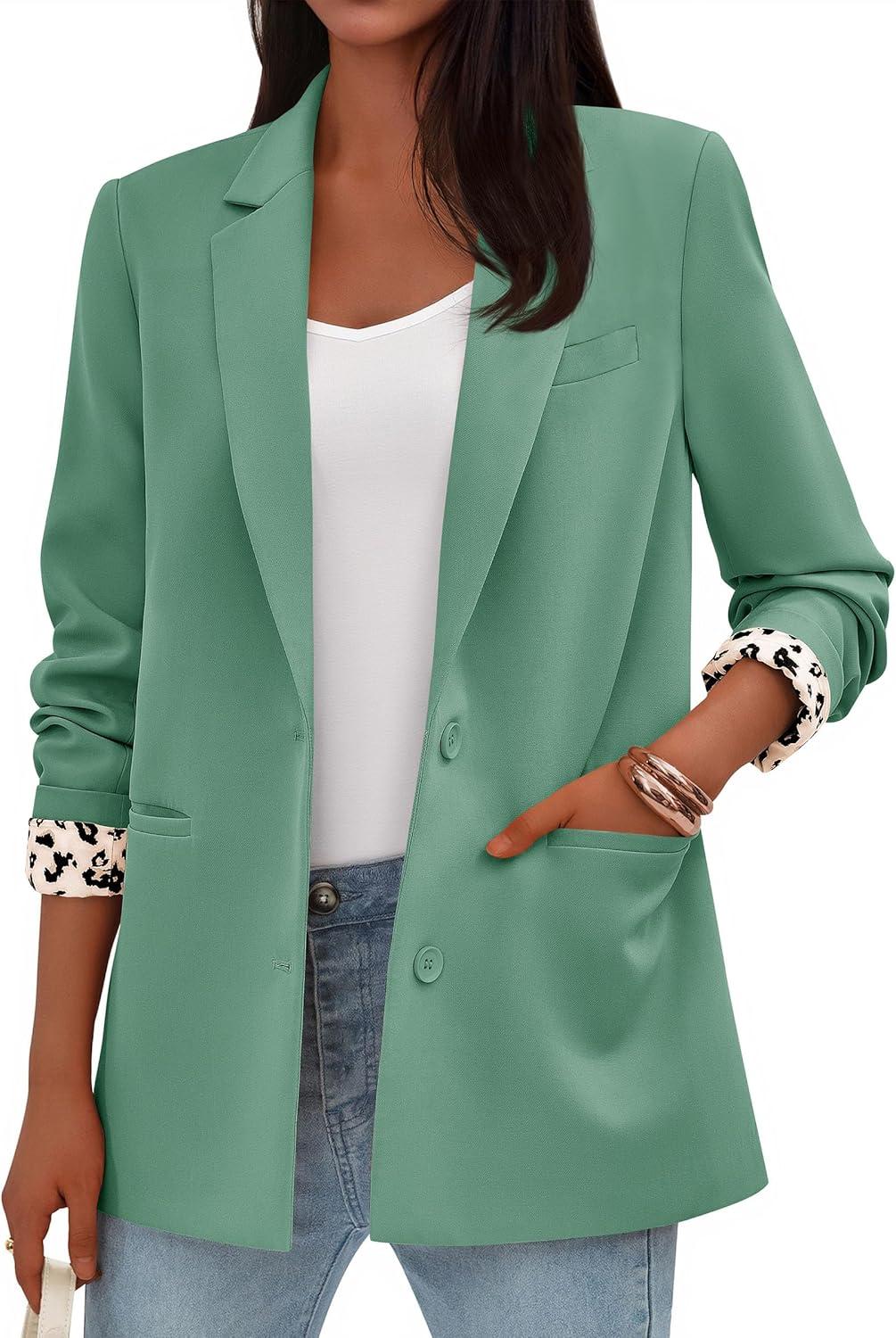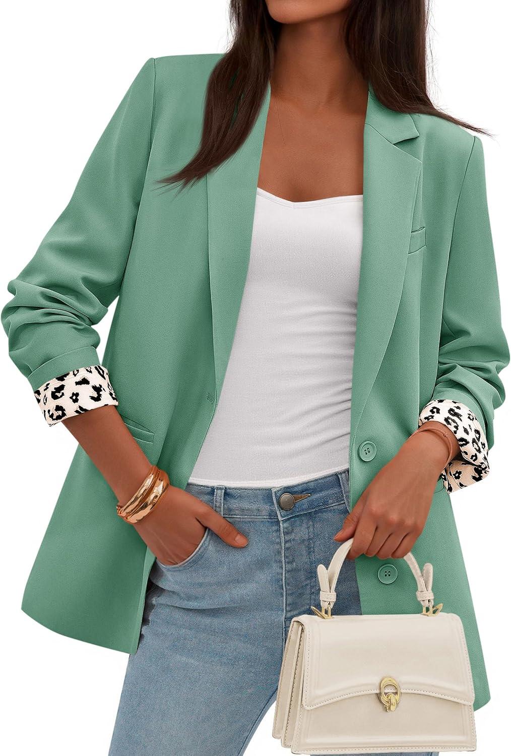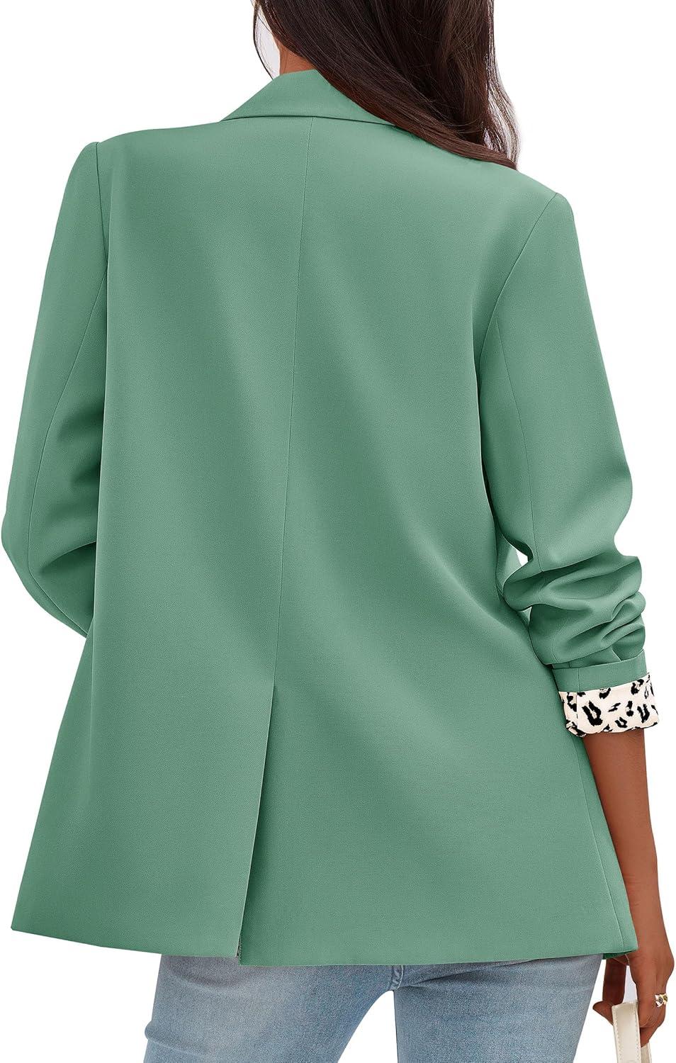 PRETTYGARDEN Blazers for Women 2025 Fall Work Office Suit Jackets Dressy Open Front Leopard Blazer Business Casual Outfits(Light Green)
