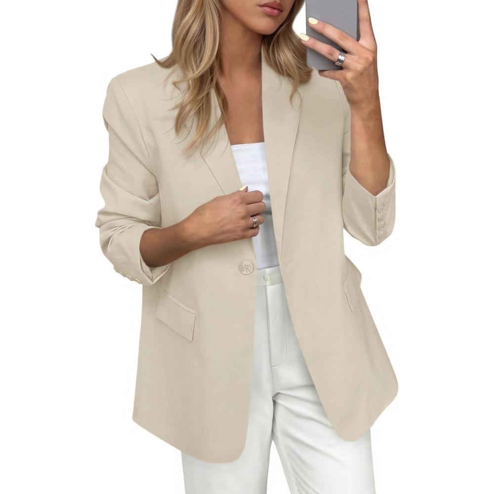 PRETTYGARDEN Blazers for Women Business Casual Outfits 2025 Fall Fashion Open Front Long Sleeve Suit Jackets Work Blazer(Beige)