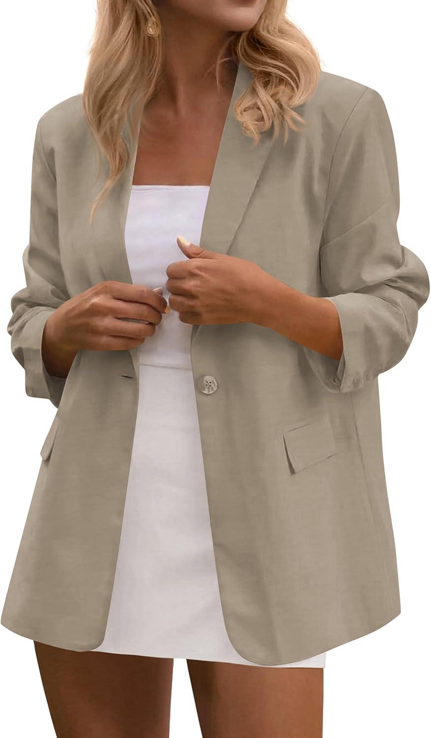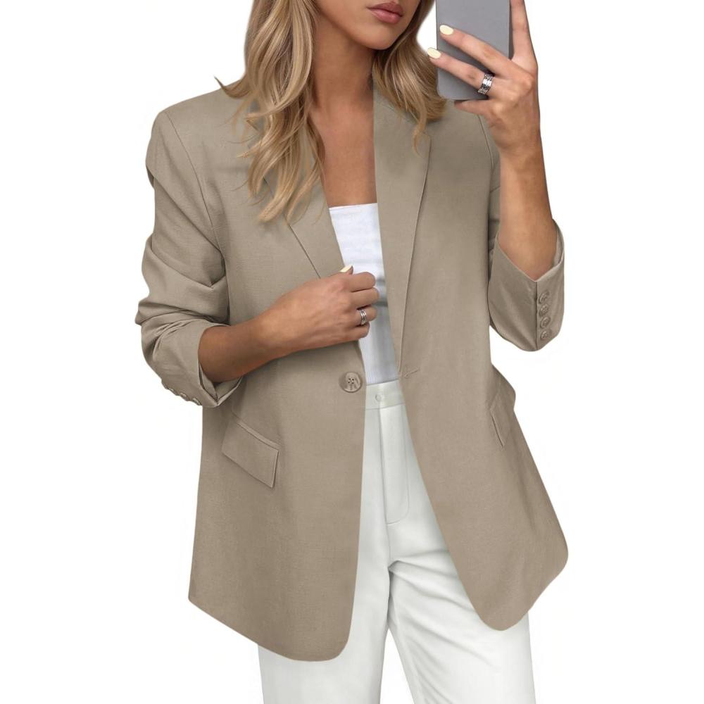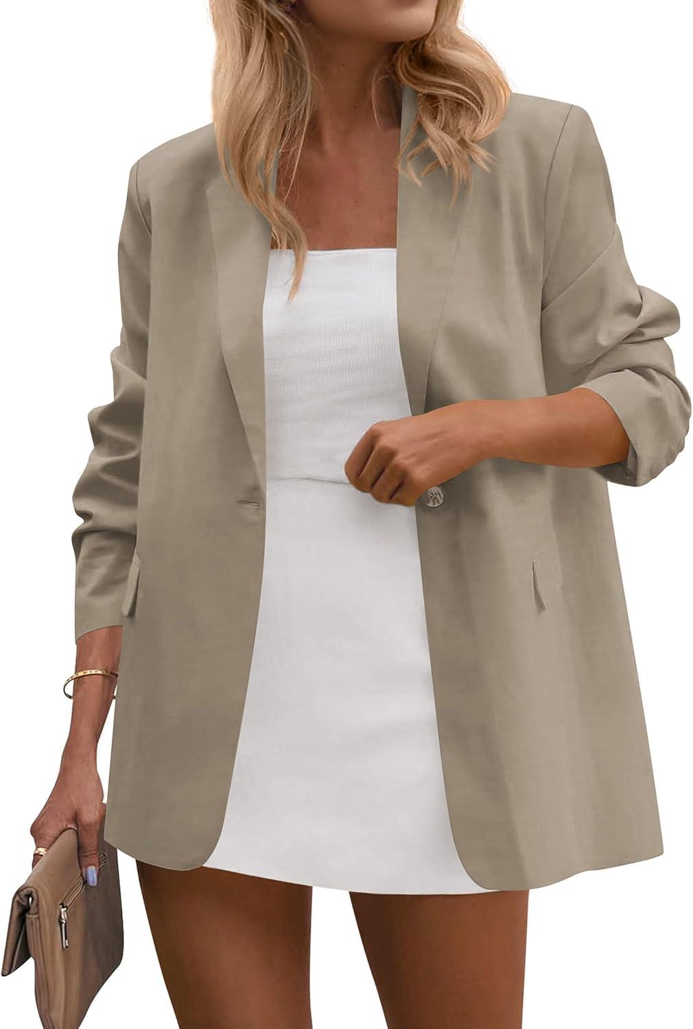 PRETTYGARDEN Blazers for Women Business Casual Outfits 2025 Fall Fashion Open Front Long Sleeve Suit Jackets Work Blazer(Khaki)