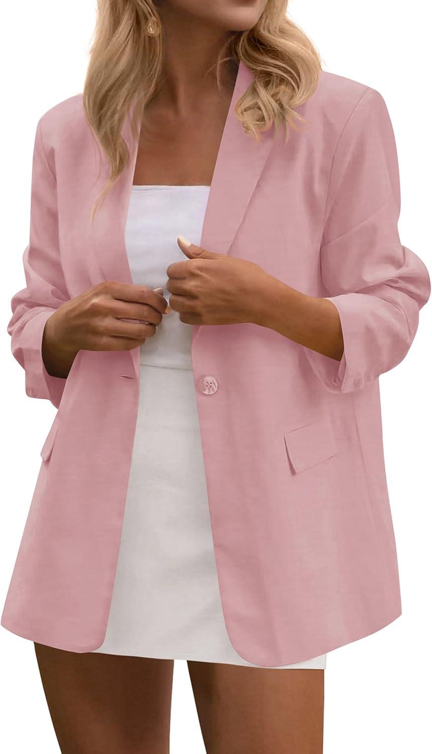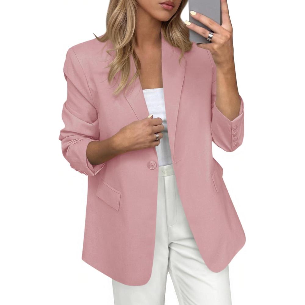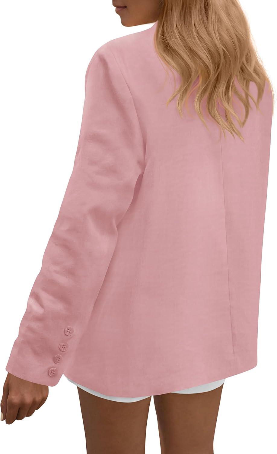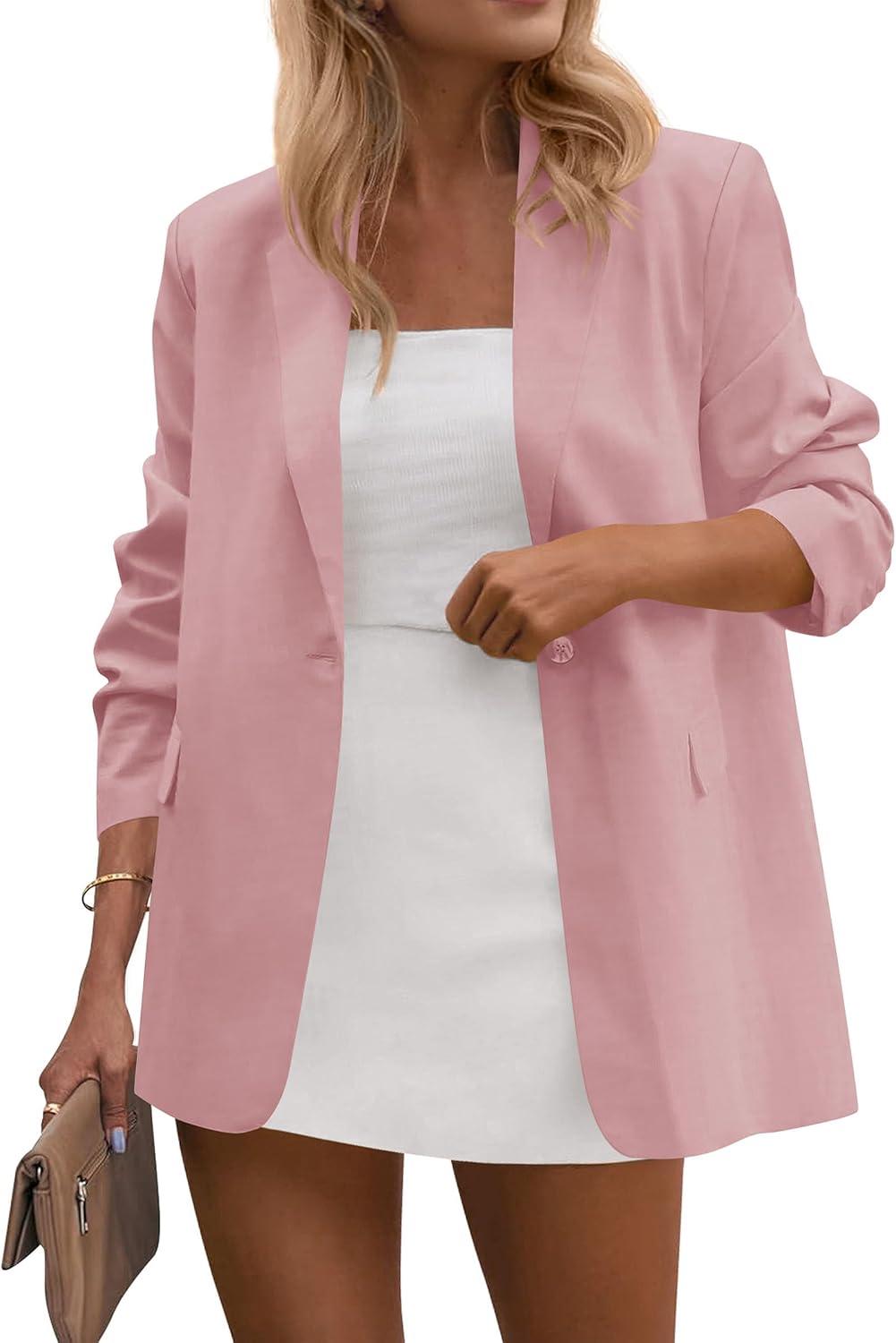 PRETTYGARDEN Blazers for Women Business Casual Outfits 2025 Fall Open Front Long Sleeve Suit Jackets Office Work Clothes(Pink)