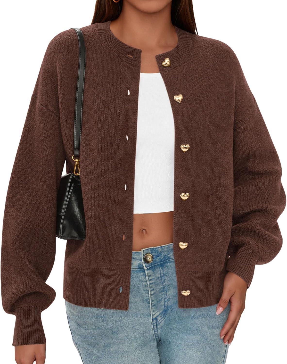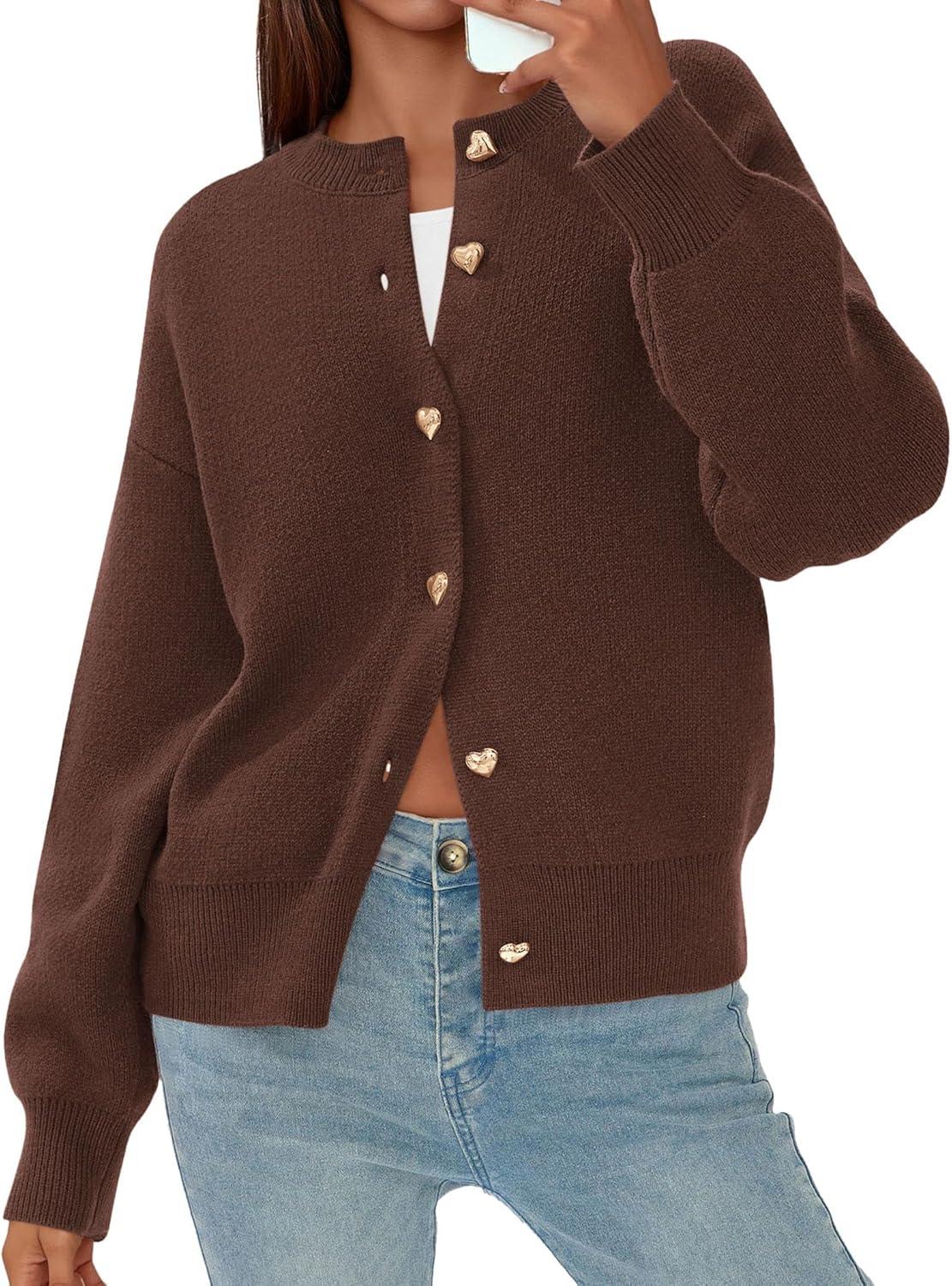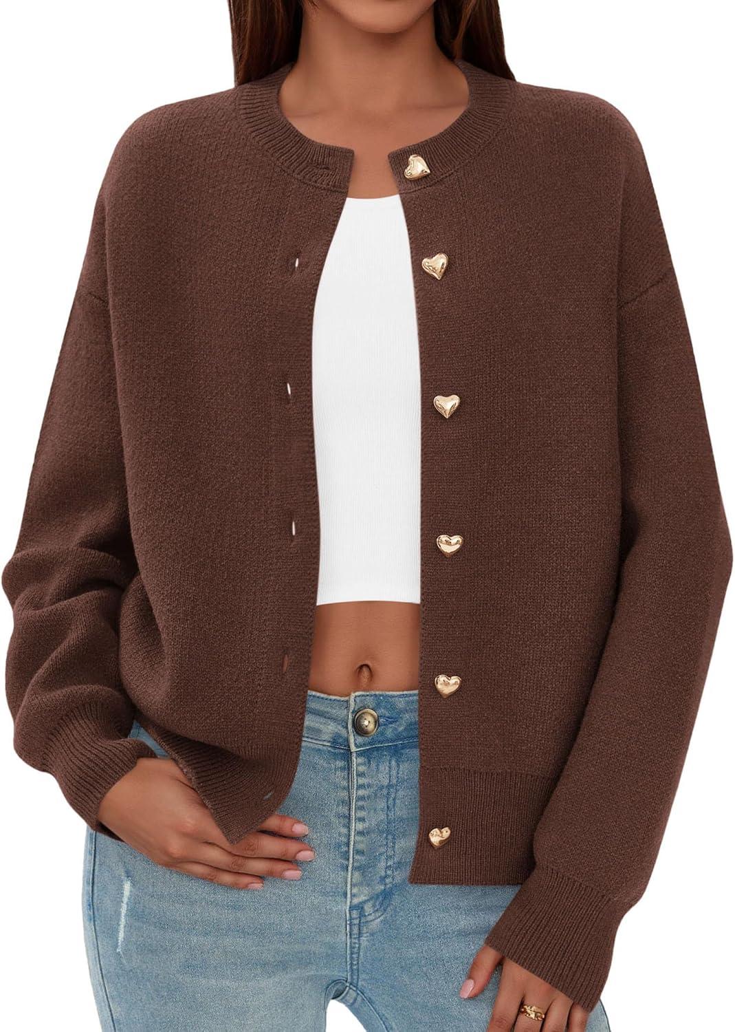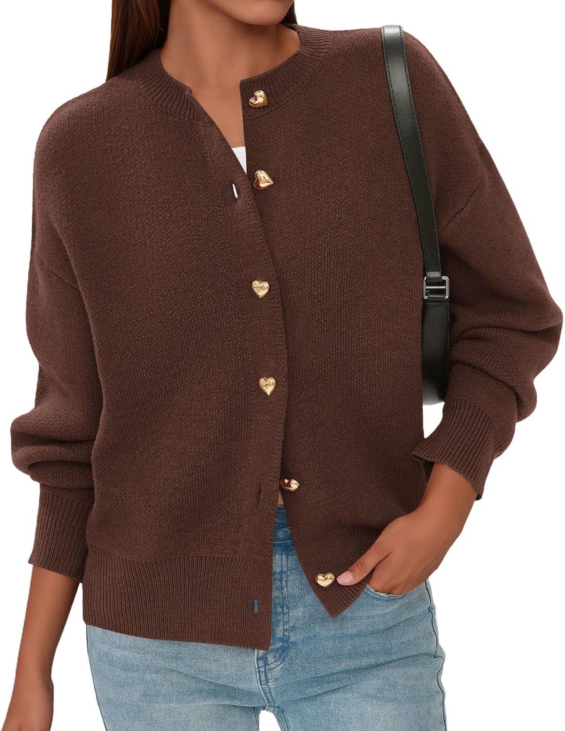 imagePRETTYGARDEN Cardigan for Women 2025 Fall Fashion Long Sleeve Trendy Button Down Work Office Sweaters Cute Winter JacketBrown
