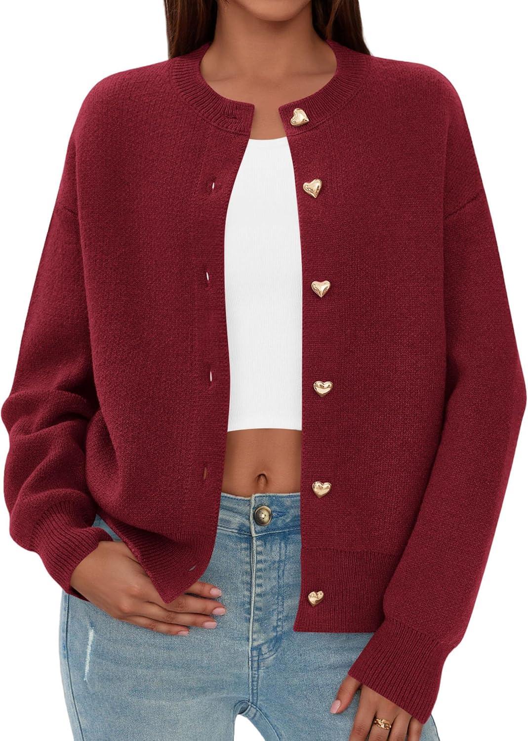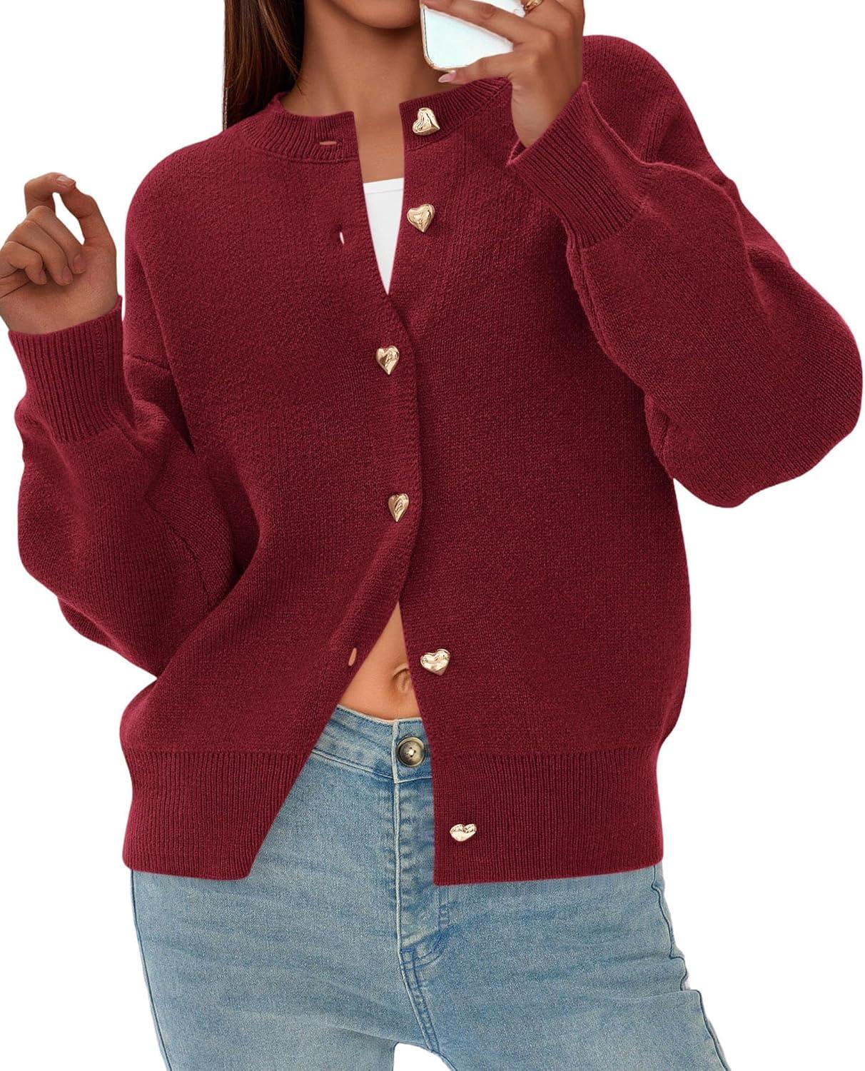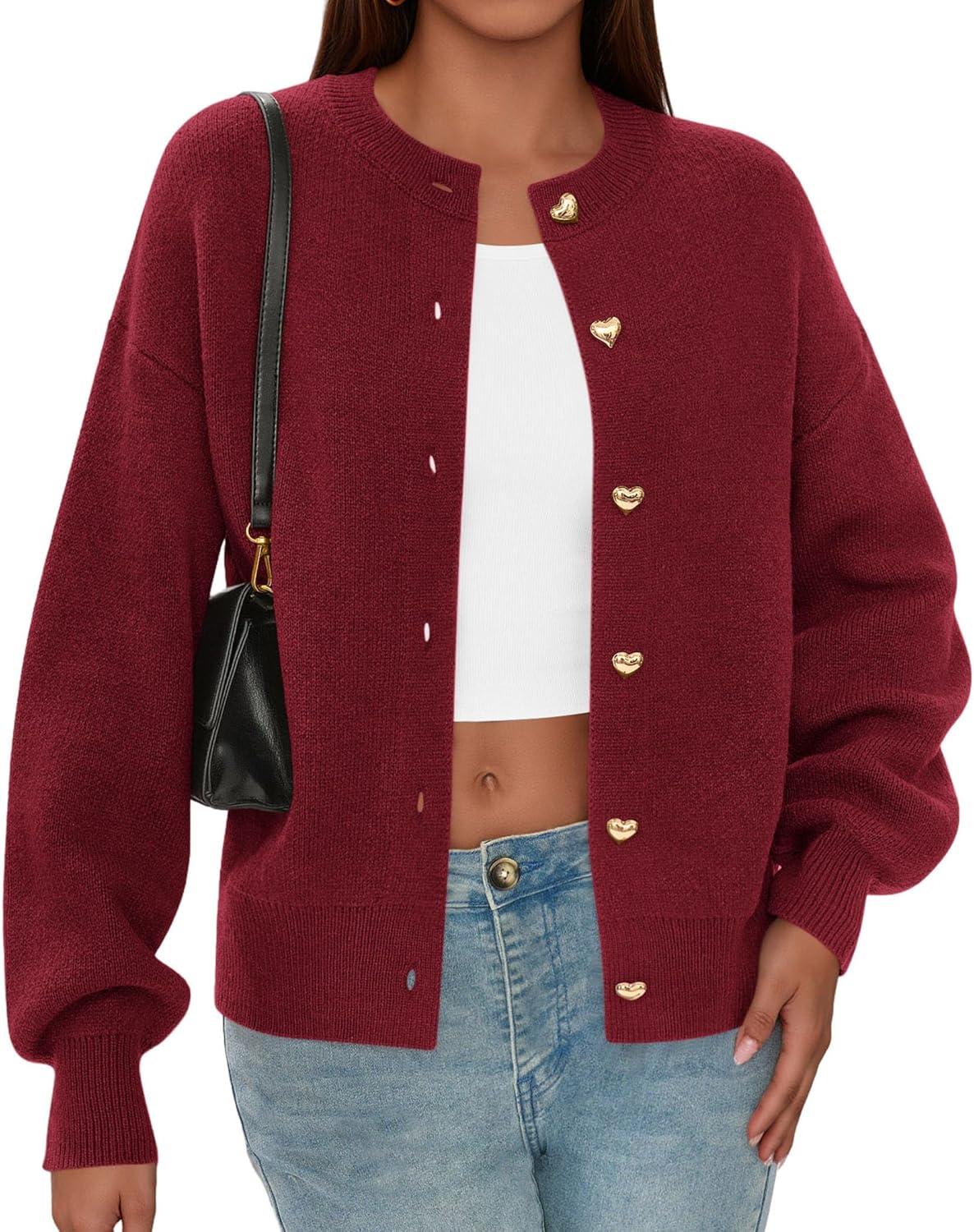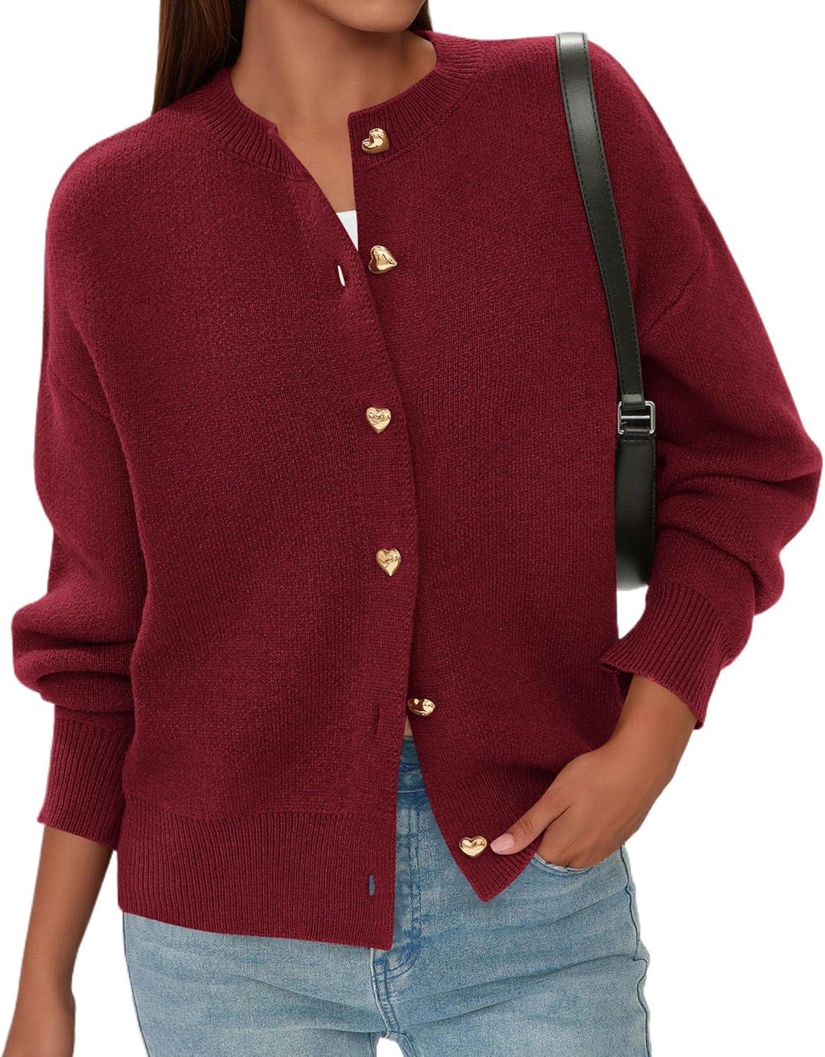 PRETTYGARDEN Cardigan for Women 2025 Fall Fashion Long Sleeve Trendy Button Down Work Office Sweaters Cute Winter Jacket(Burgundy)