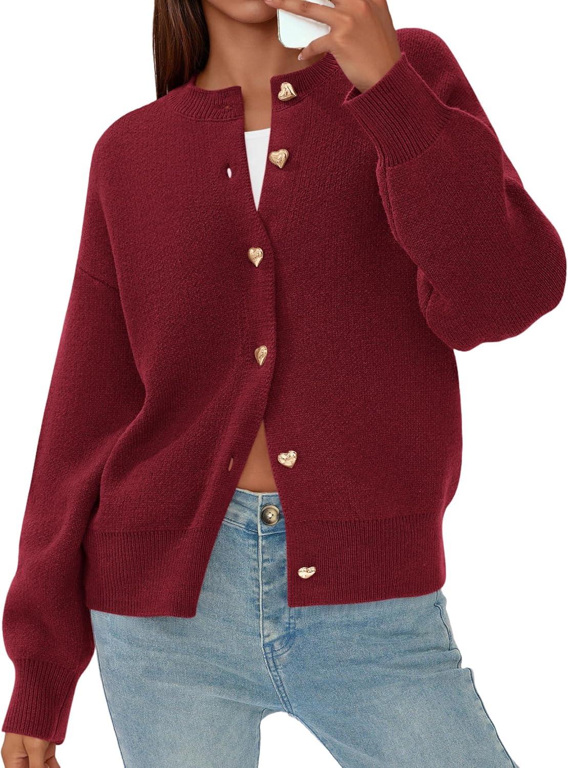 imagePRETTYGARDEN Cardigan for Women 2025 Fall Fashion Long Sleeve Trendy Button Down Work Office Sweaters Cute Winter JacketBurgundy
