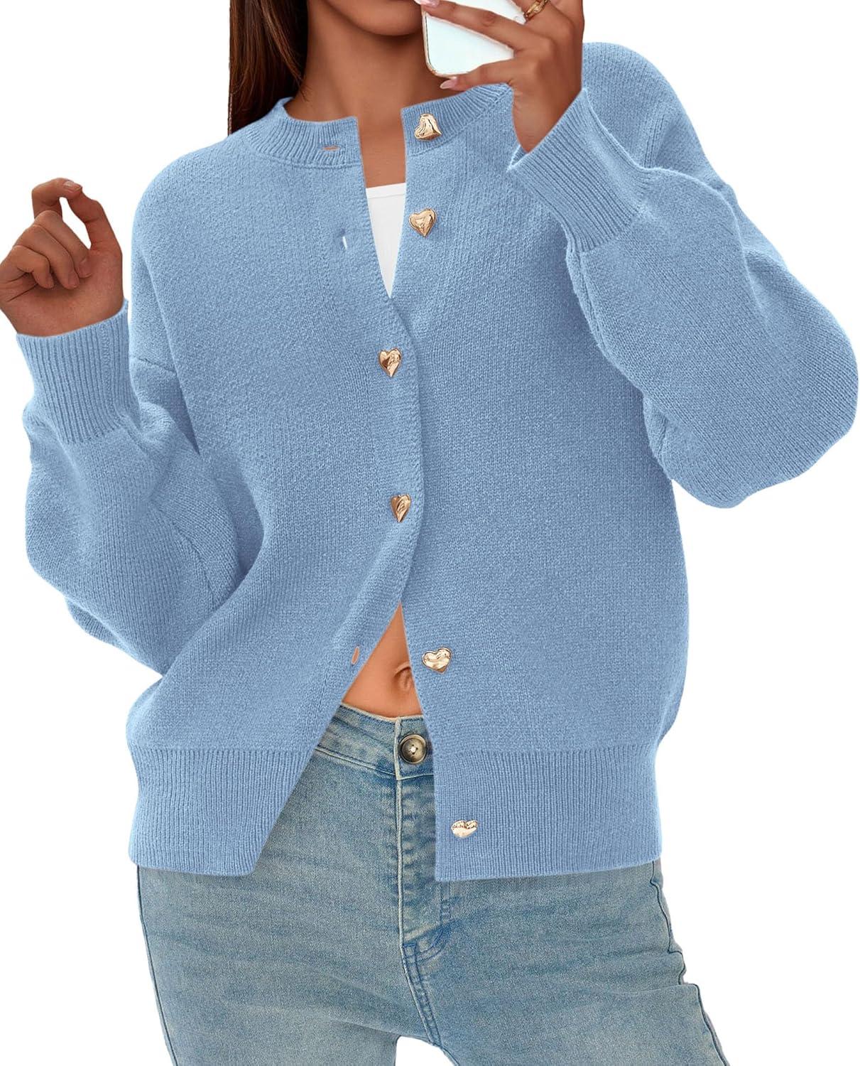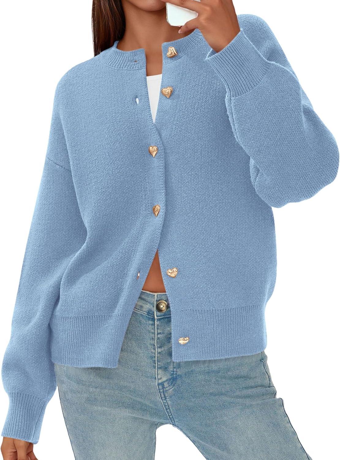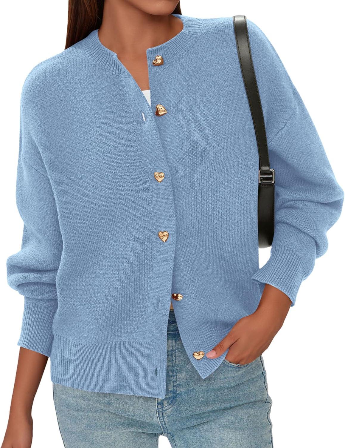 PRETTYGARDEN Cardigan for Women 2025 Fall Fashion Long Sleeve Trendy Button Down Work Office Sweaters Cute Winter Jacket(Light Blue)