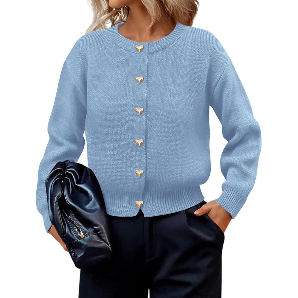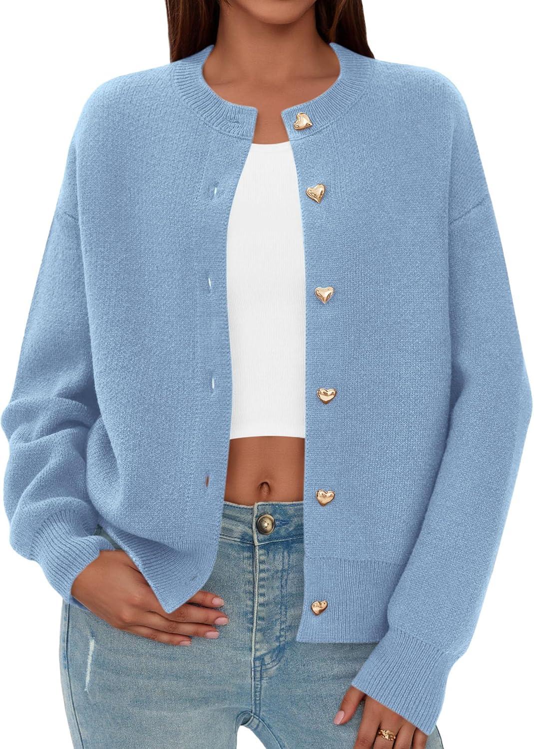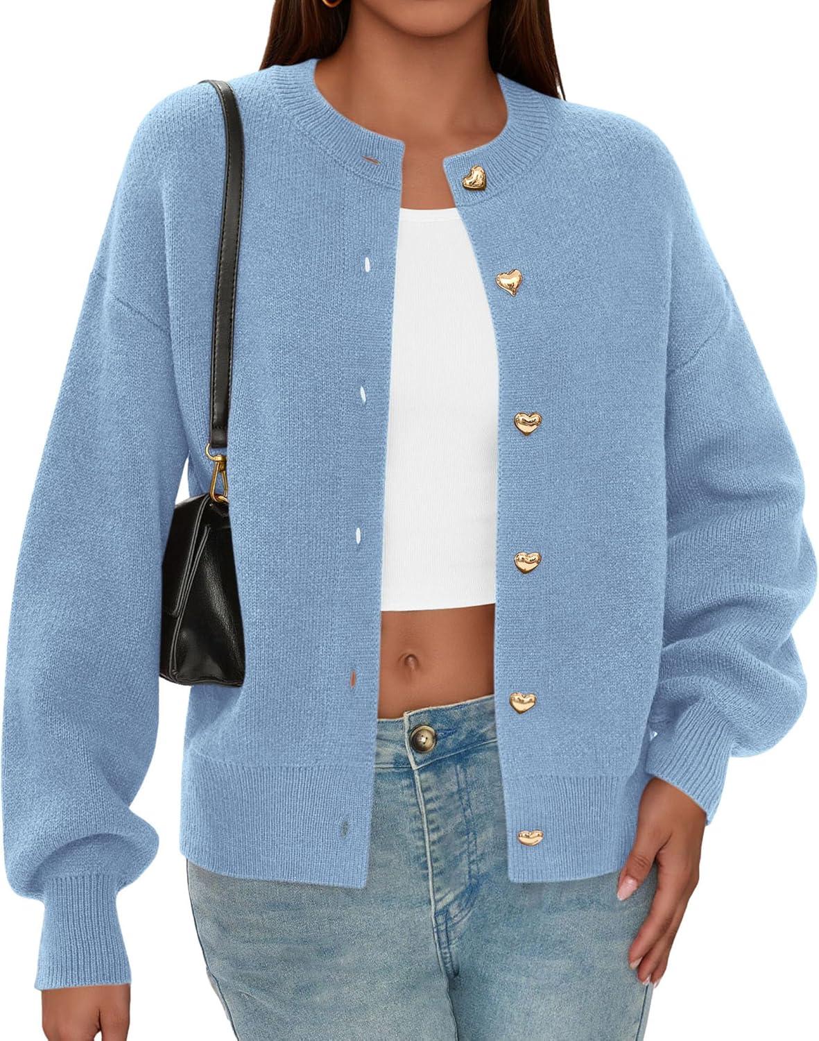 PRETTYGARDEN Cardigan for Women 2025 Fall Fashion Long Sleeve Trendy Button Down Work Office Sweaters Cute Winter Jacket(Light Blue)