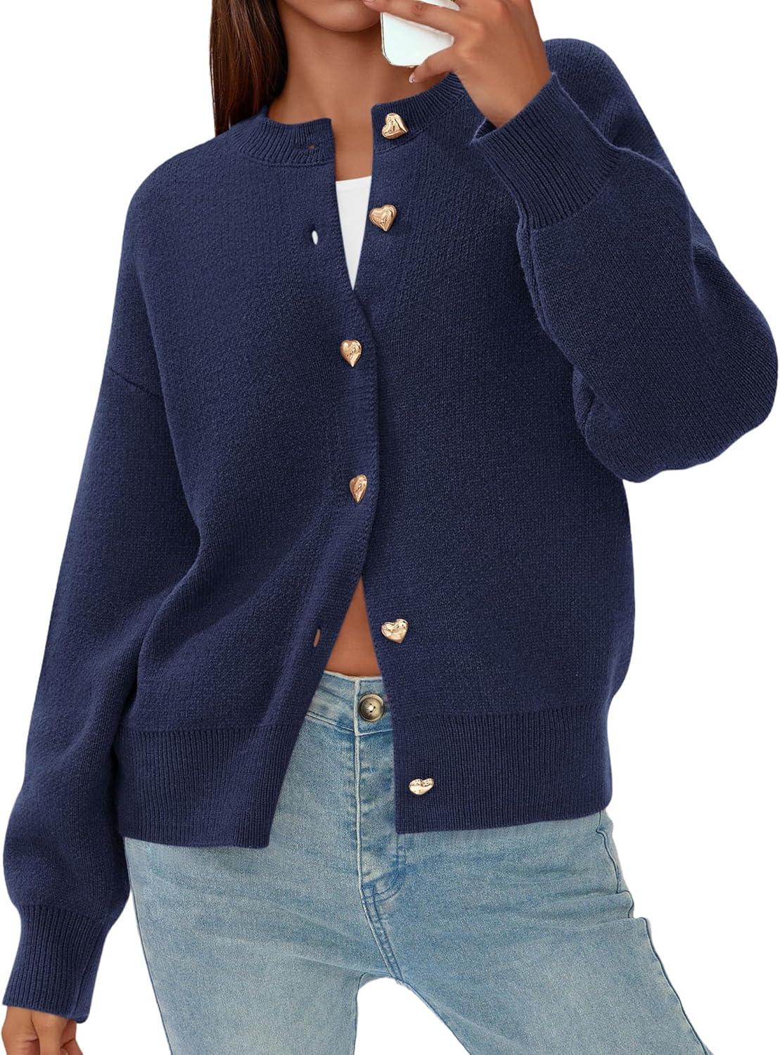imagePRETTYGARDEN Cardigan for Women 2025 Fall Fashion Long Sleeve Trendy Button Down Work Office Sweaters Cute Winter JacketNavy