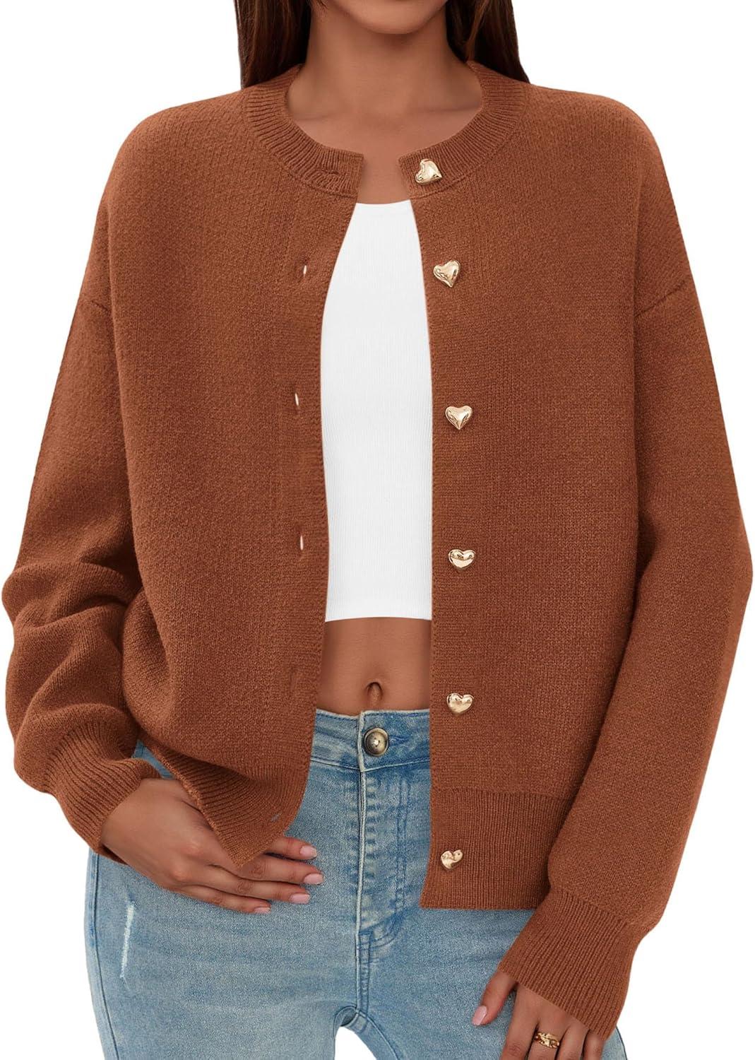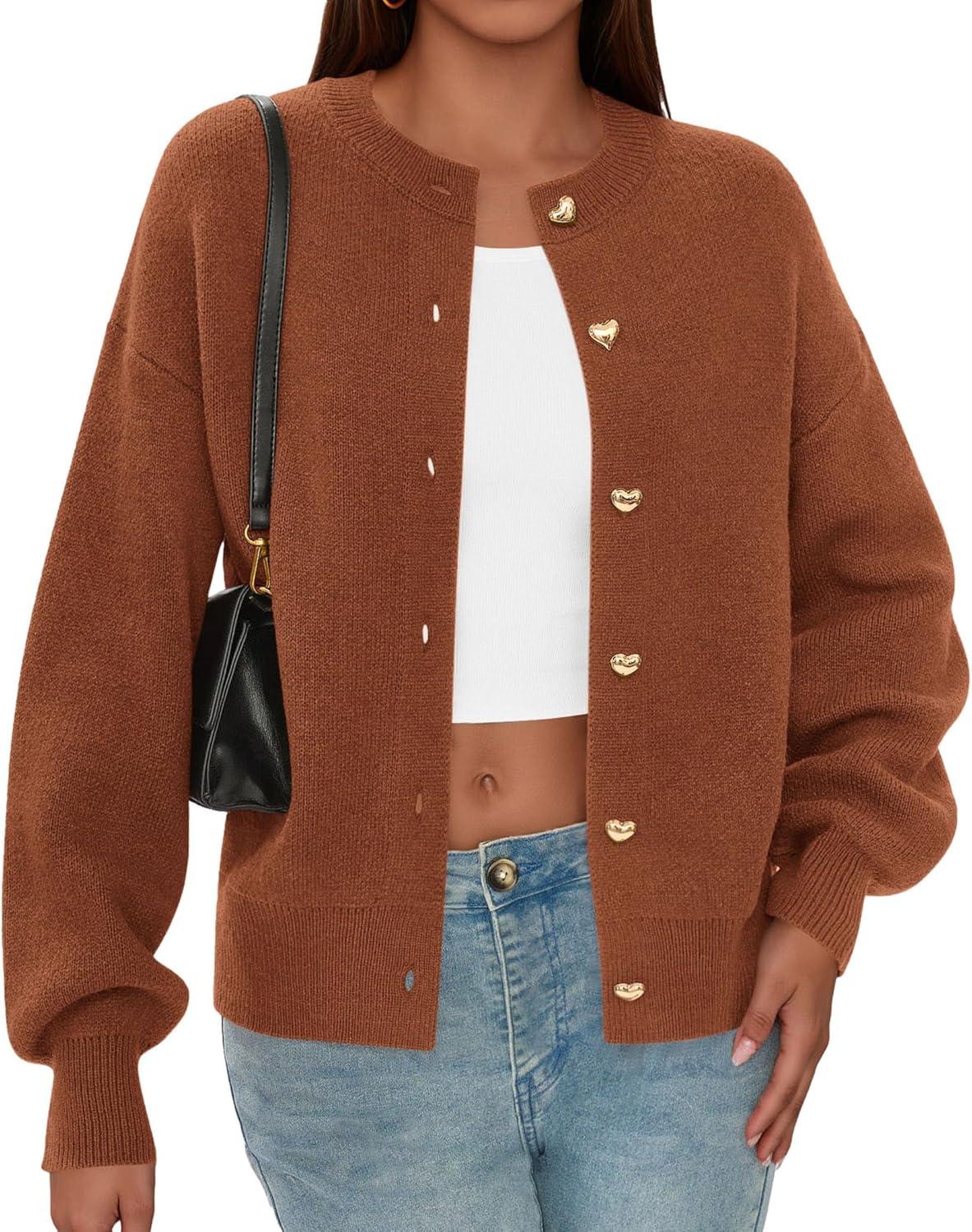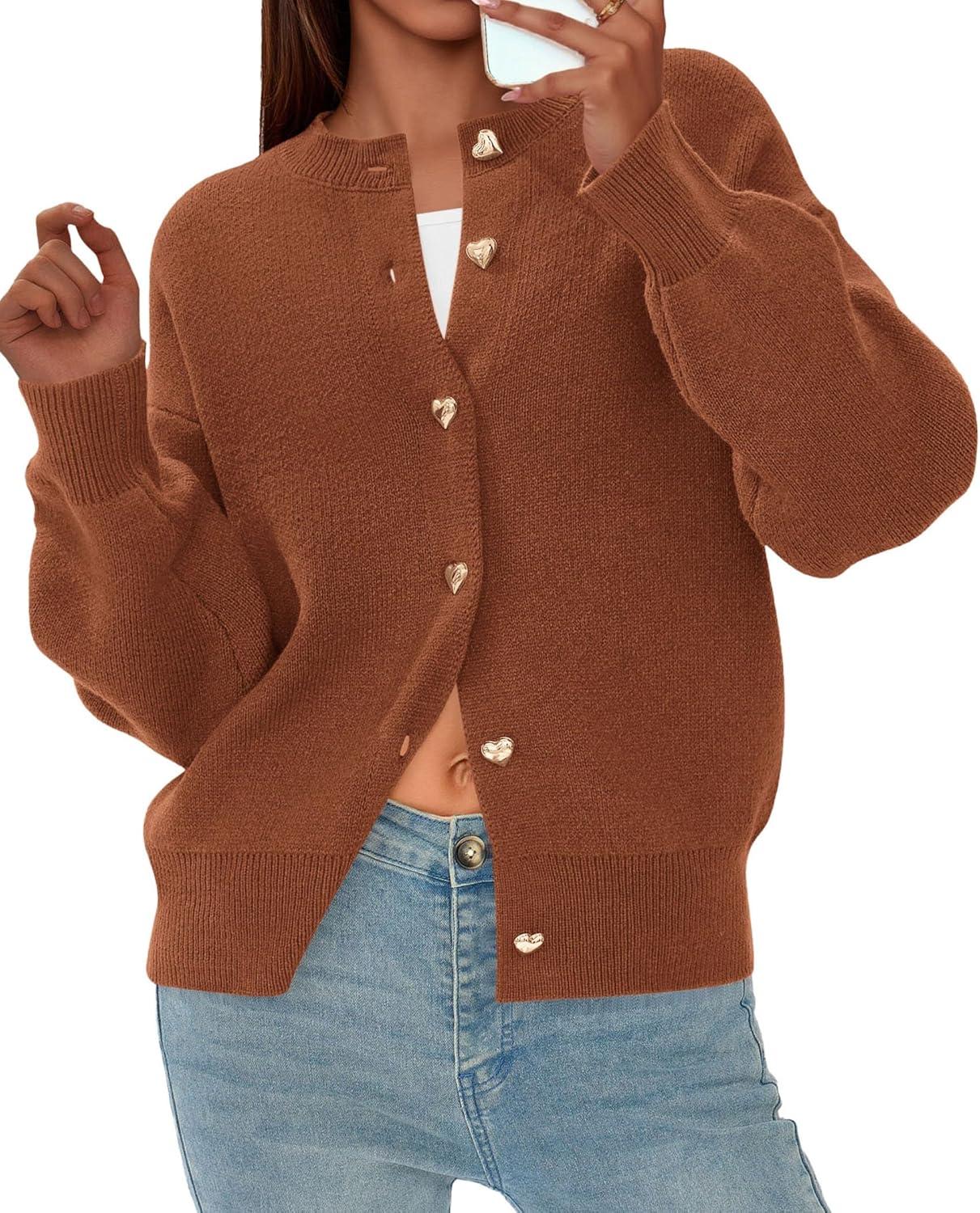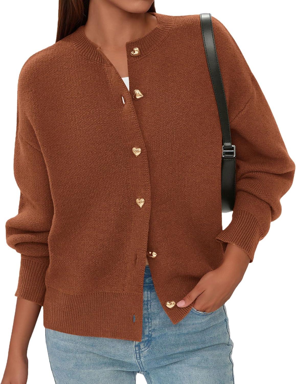 PRETTYGARDEN Cardigan for Women 2025 Fall Fashion Long Sleeve Trendy Button Down Work Office Sweaters Cute Winter Jacket(Red Brown)