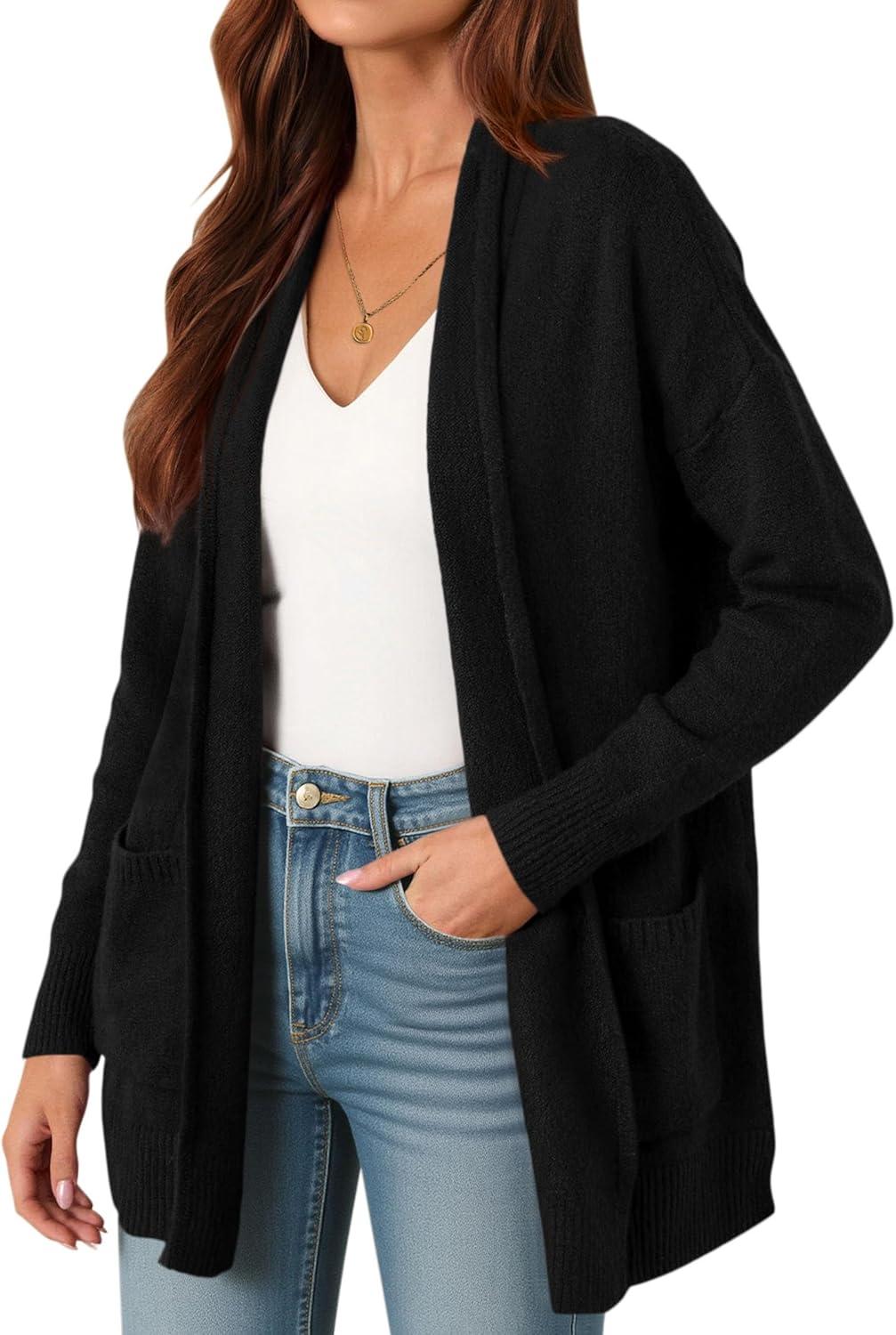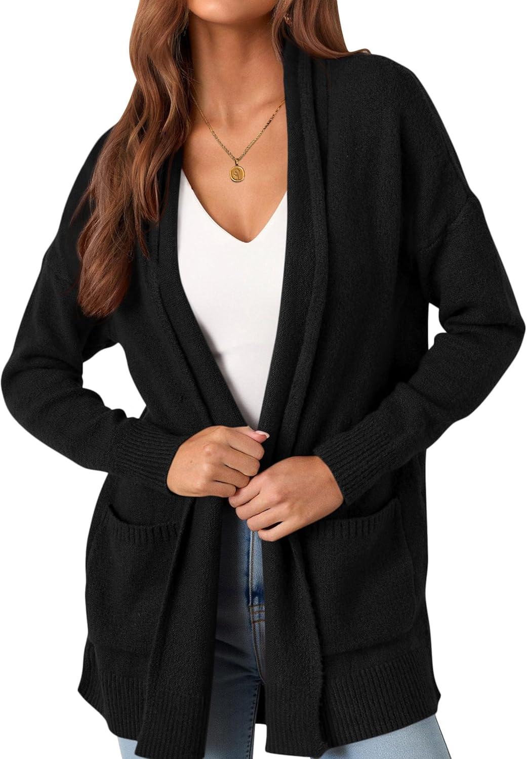 PRETTYGARDEN Cardigan Sweaters for Women Winter Fall Clothes 2025 Cozy Knit Coats Open Front Long Cardigans with Pockets(Black)