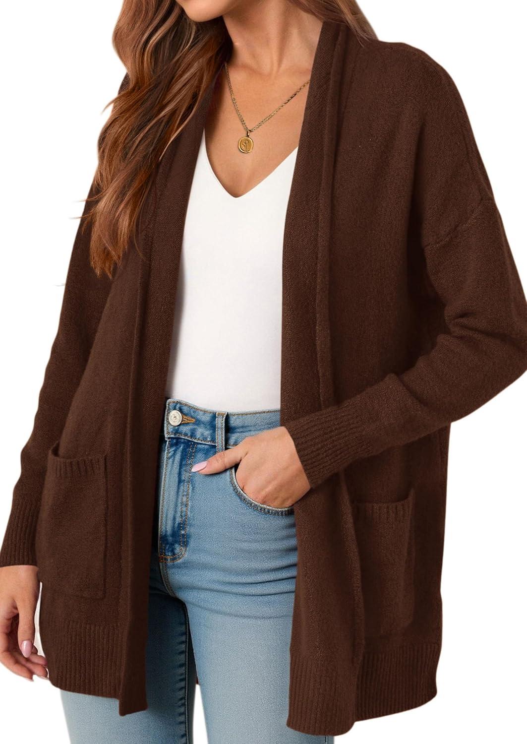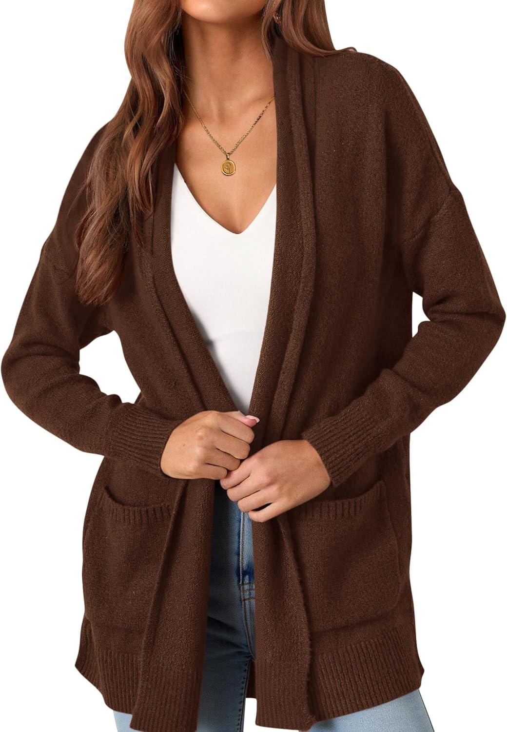PRETTYGARDEN Cardigan Sweaters for Women Winter Fall Clothes 2025 Cozy Knit Coats Open Front Long Cardigans with Pockets(Brown)