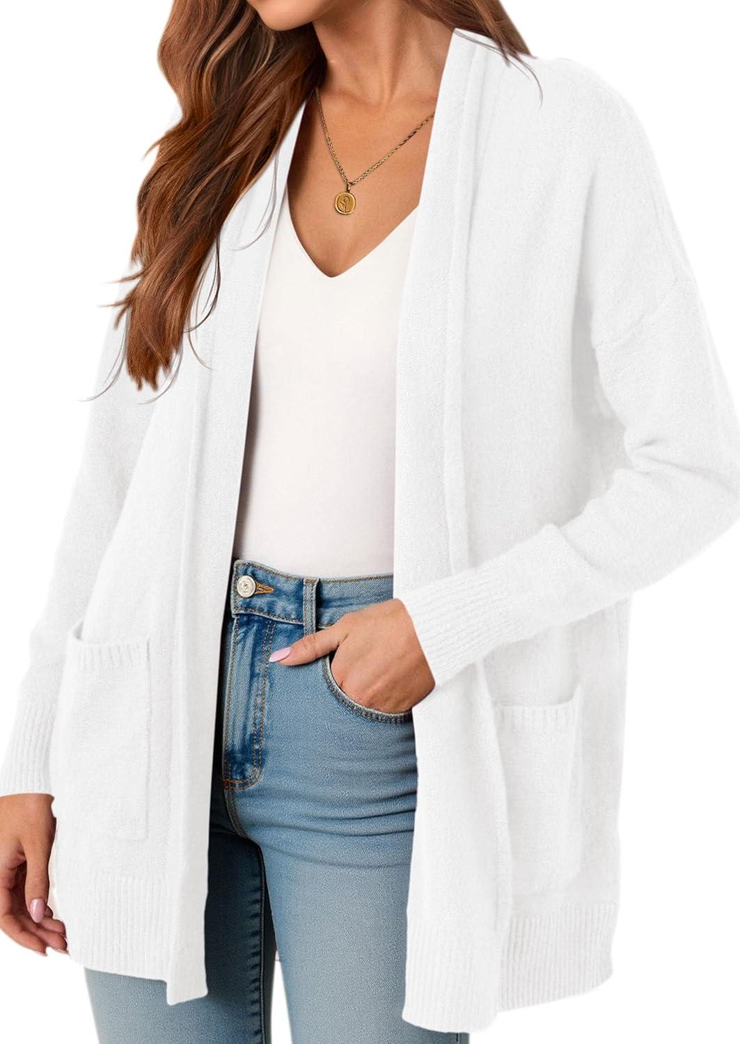 PRETTYGARDEN Cardigan Sweaters for Women Winter Fall Clothes 2025 Cozy Knit Coats Open Front Long Cardigans with Pockets(White)