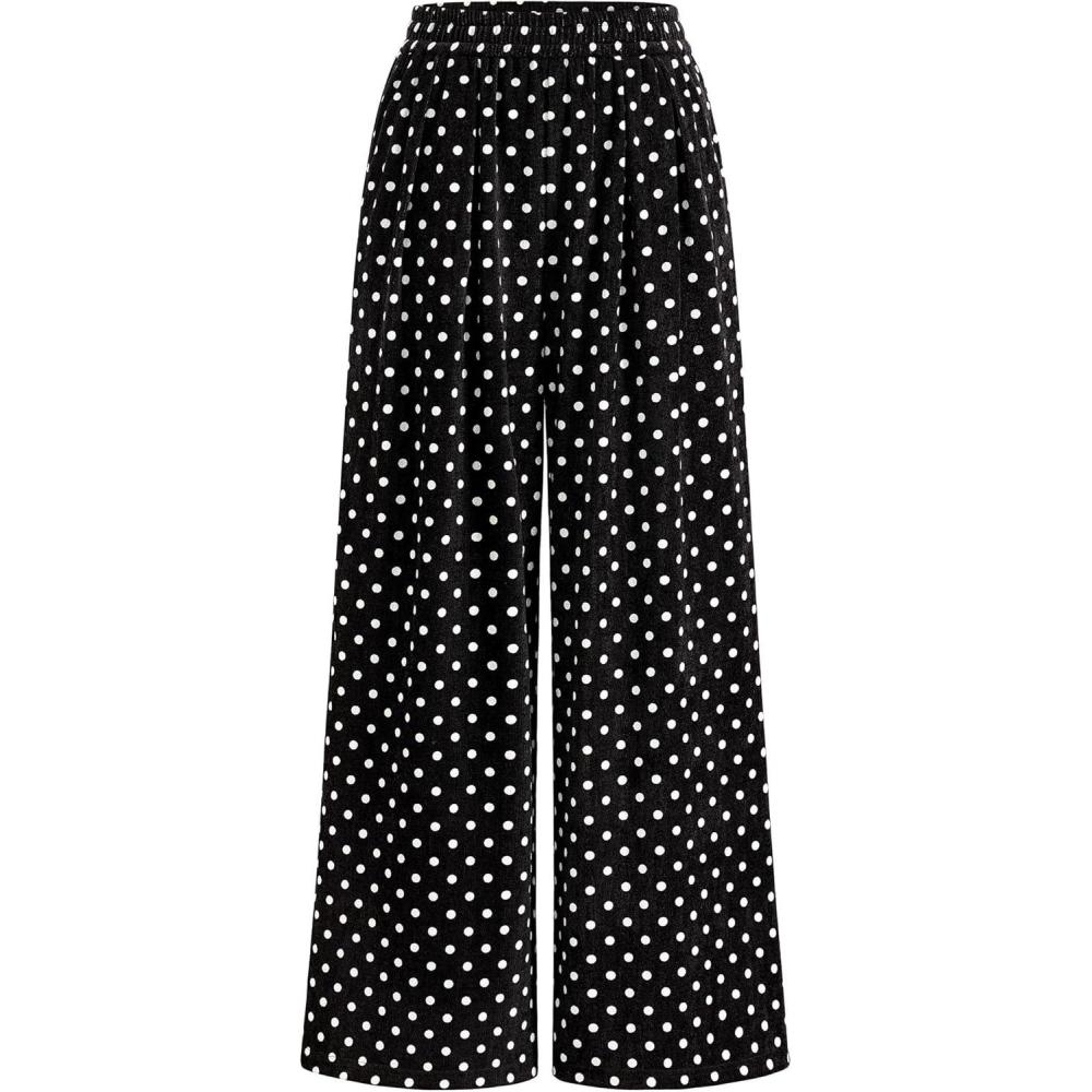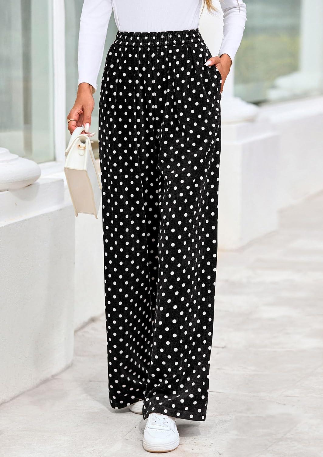 PRETTYGARDEN Casual Women’s Pants 2025 Elastic Waist Palazzo Long Pajama Wide Leg Trousers Knit Fall Outfits with Pockets(Dot Black White)