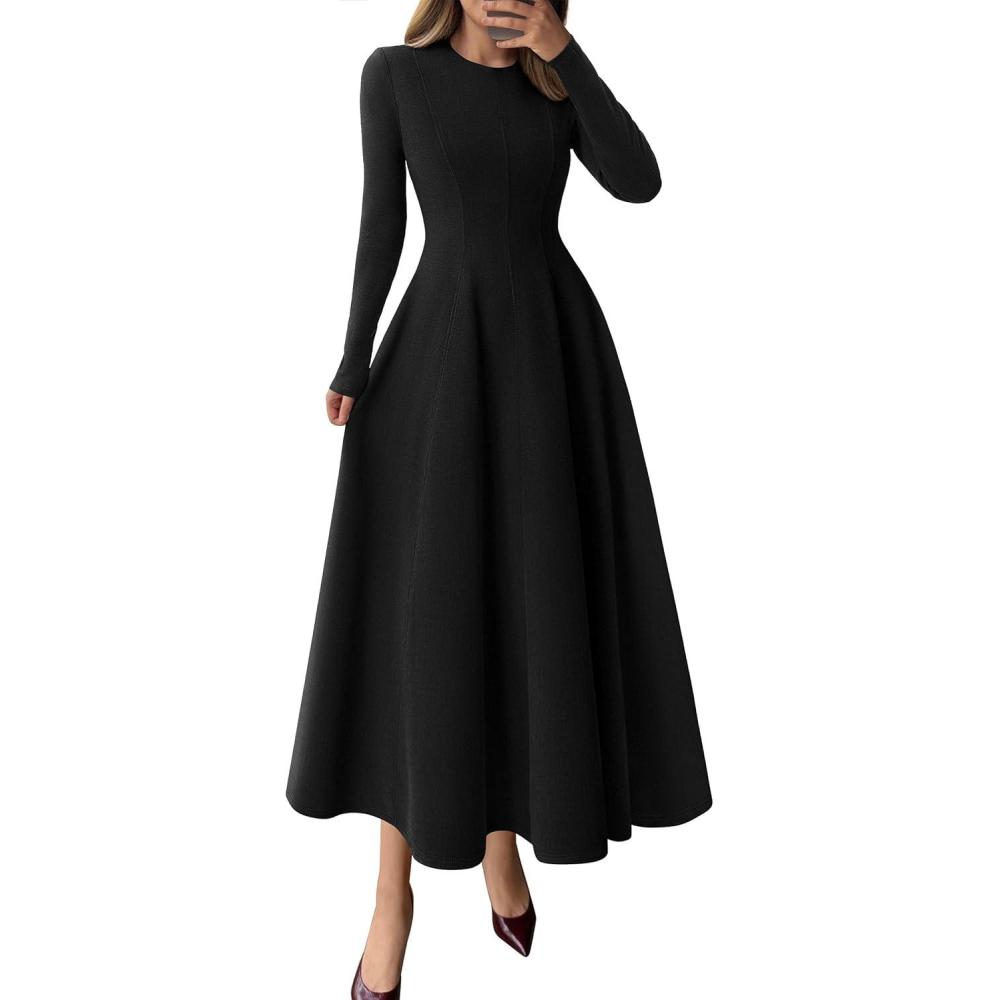 PRETTYGARDEN Cocktail Dresses for Women 2025 Elegant Classy Fall Long Sleeve Midi A Line Flowy Modest Winter Party Dress(Black)
