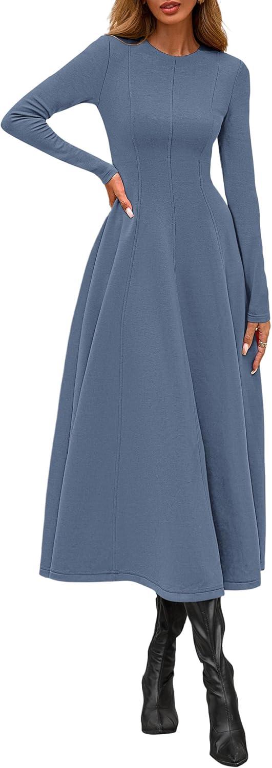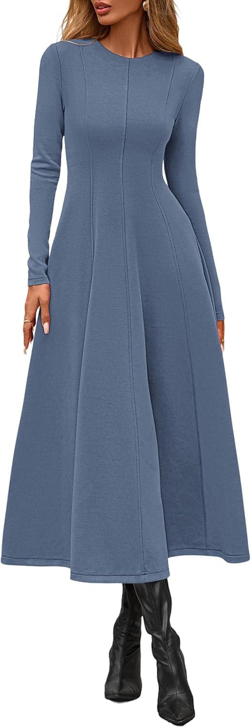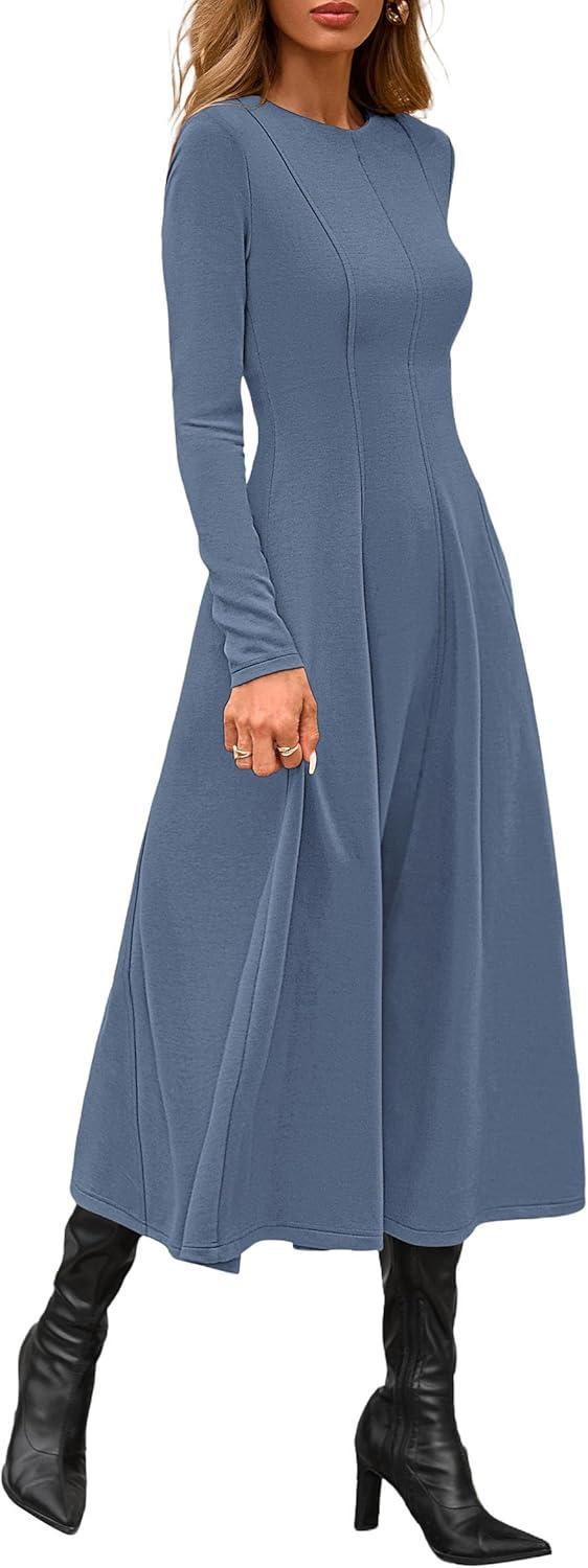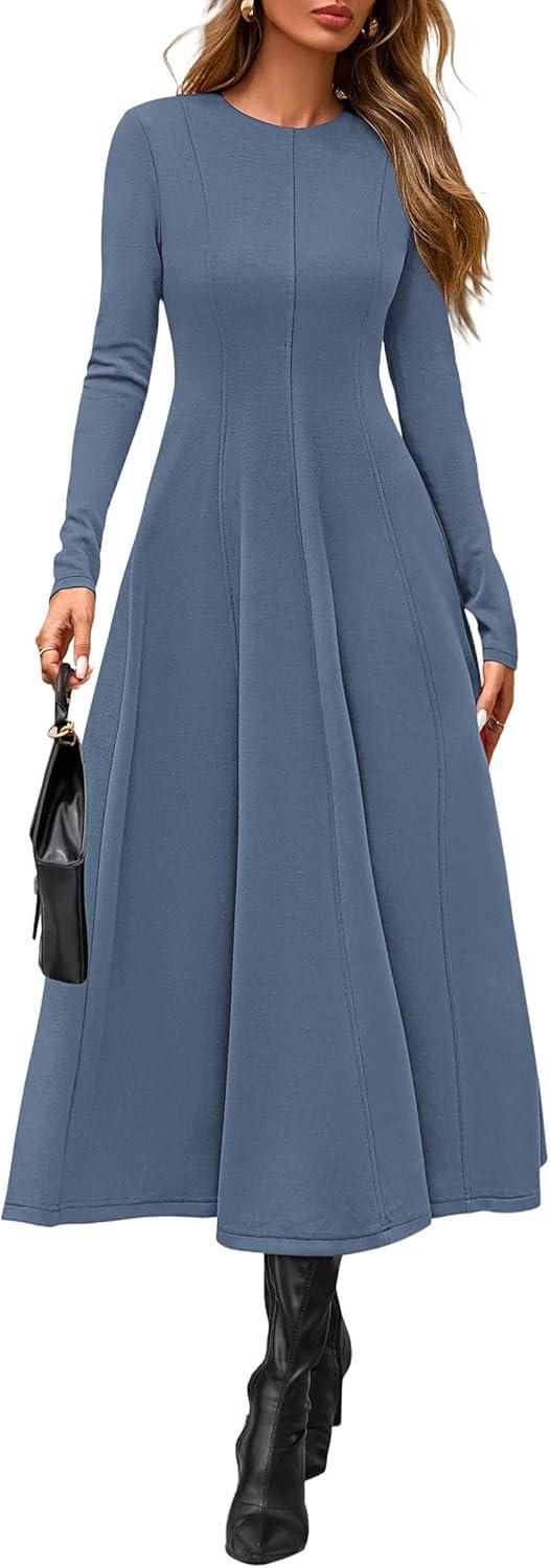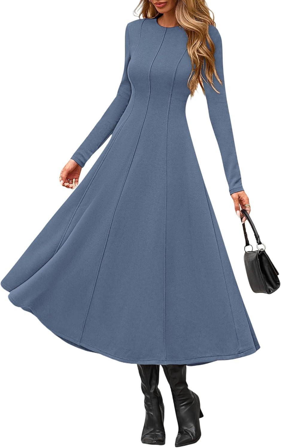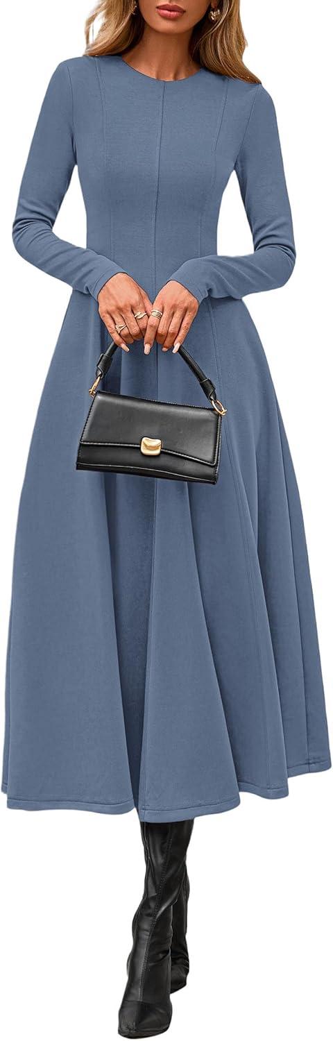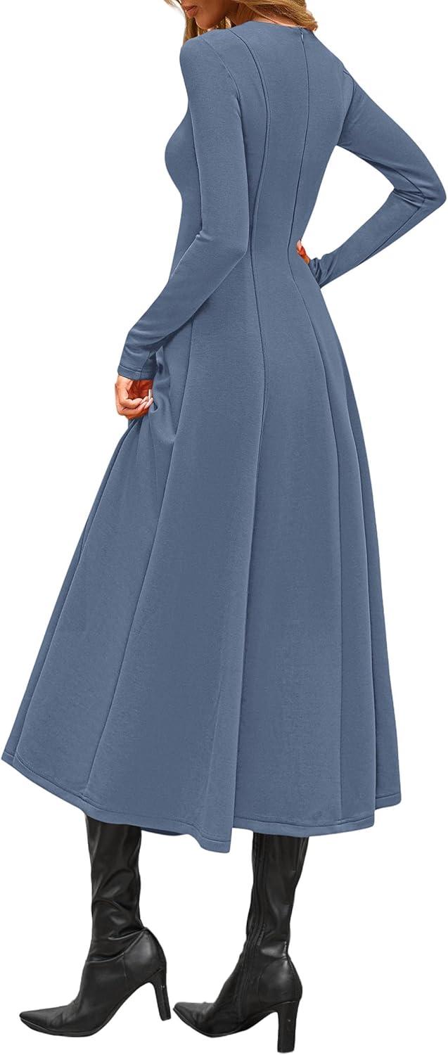 PRETTYGARDEN Cocktail Dresses for Women 2025 Elegant Classy Fall Long Sleeve Midi A Line Flowy Modest Winter Party Dress(Dusty Blue)