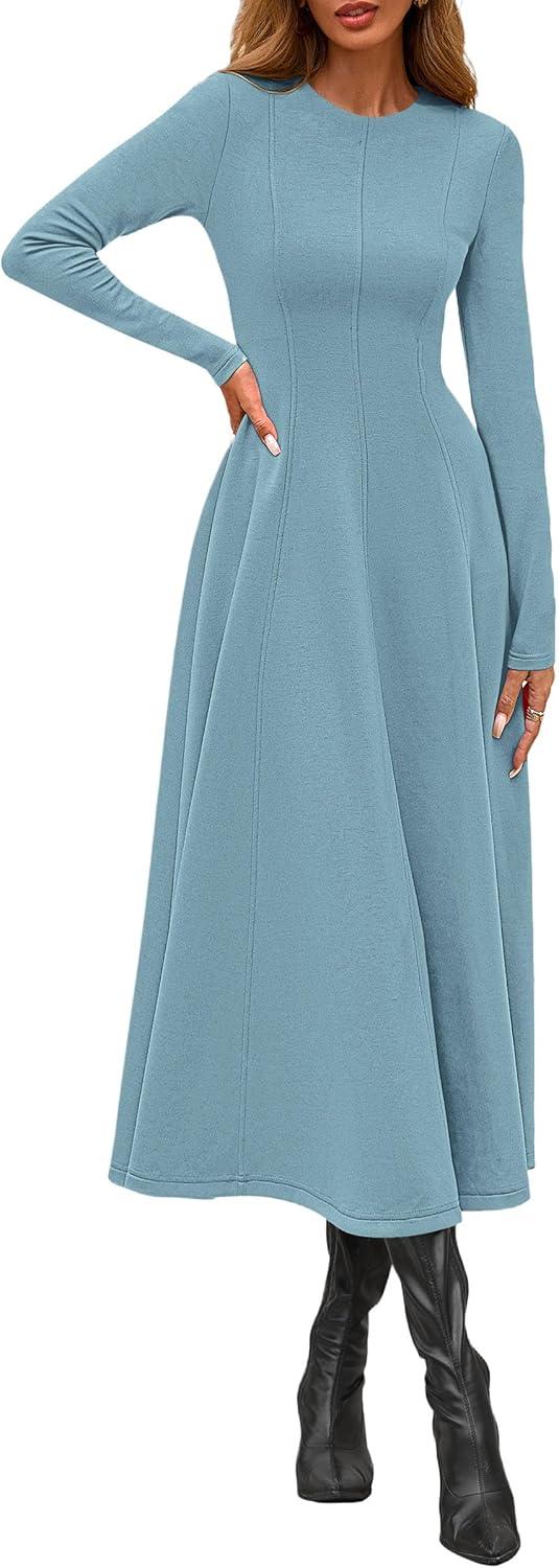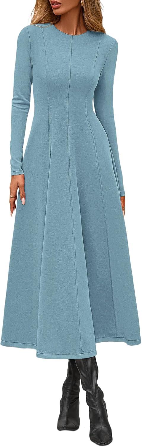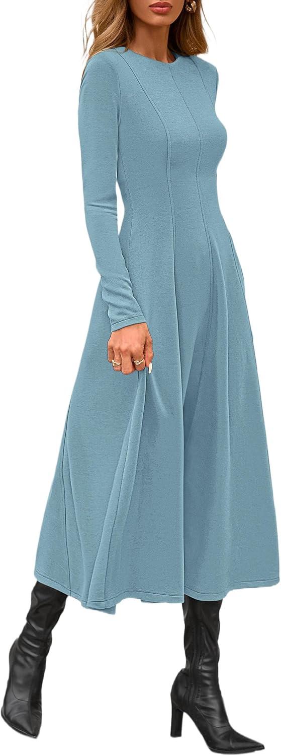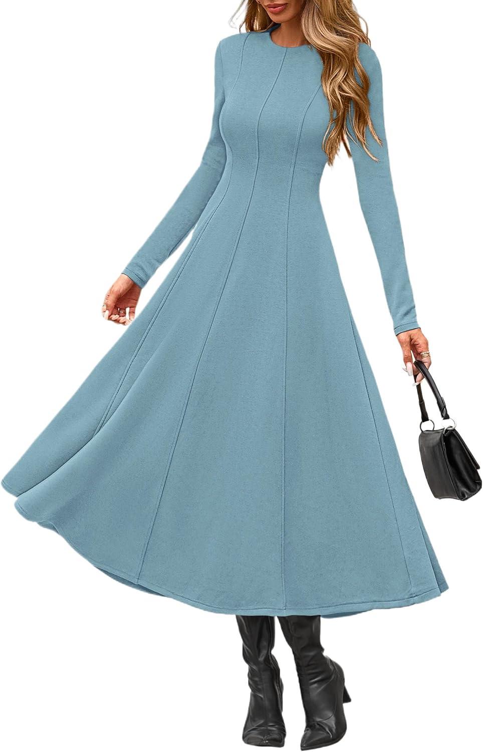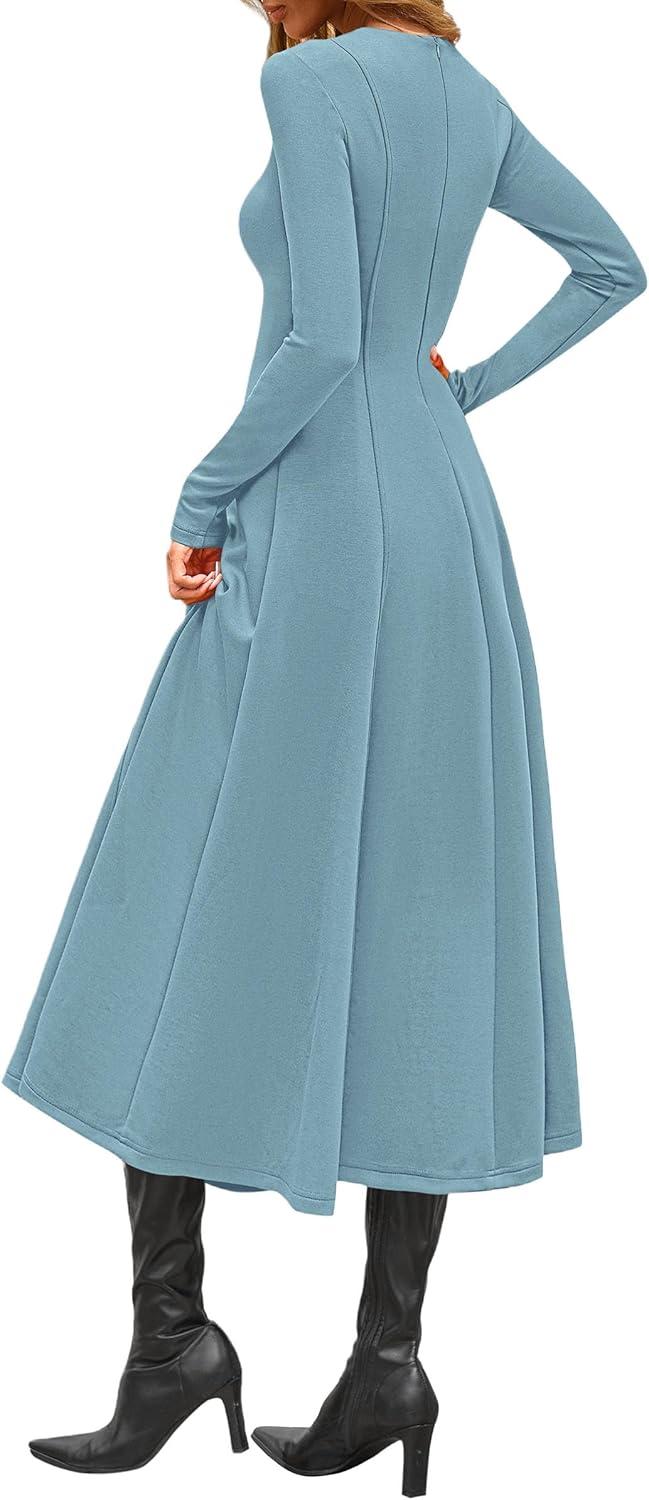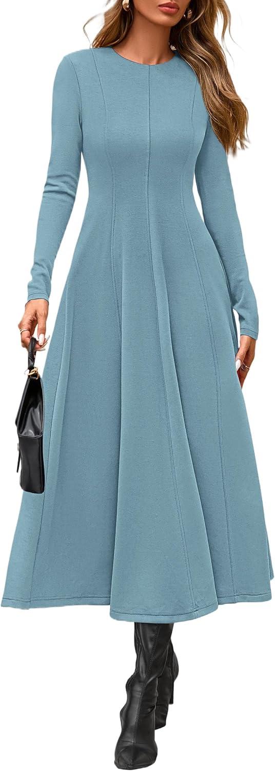 PRETTYGARDEN Cocktail Dresses for Women 2025 Elegant Classy Fall Long Sleeve Midi A Line Flowy Modest Winter Party Dress(Dusty Blue)
