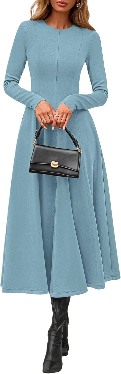 PRETTYGARDEN Cocktail Dresses for Women 2025 Elegant Classy Fall Long Sleeve Midi A Line Flowy Modest Winter Party Dress(Light Blue)