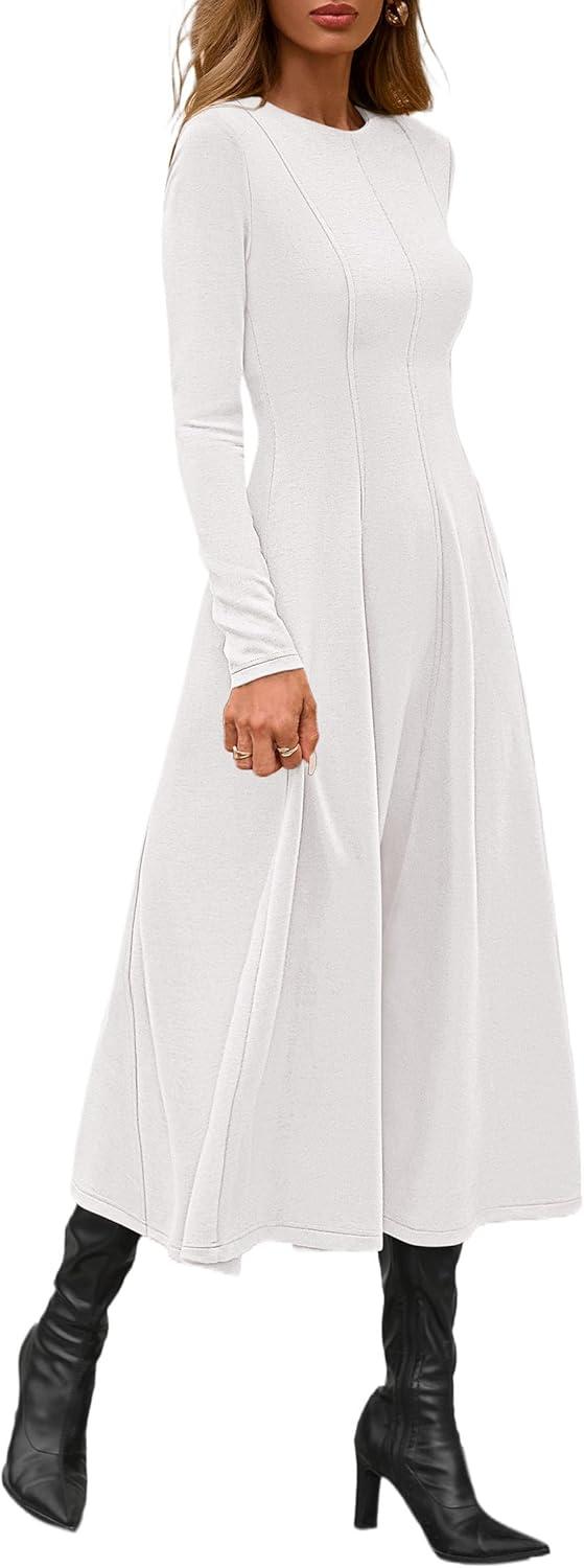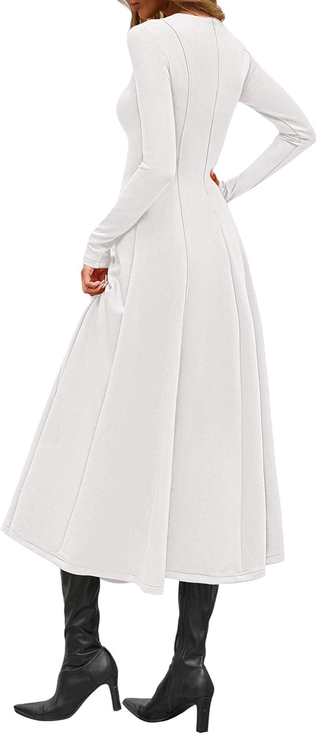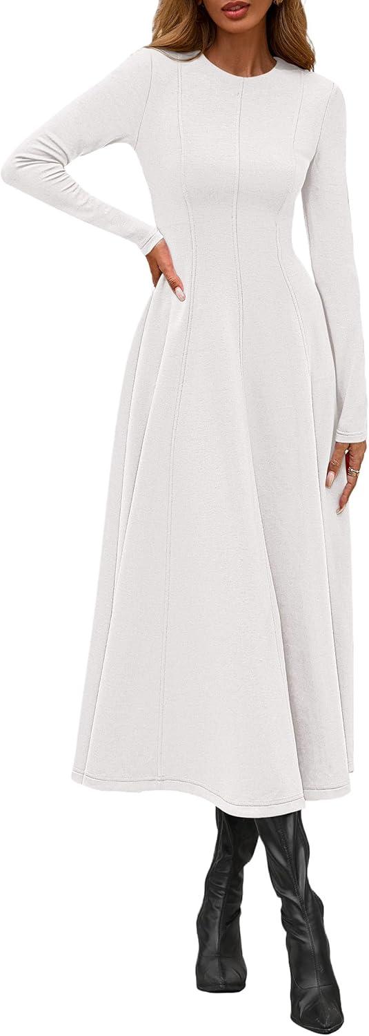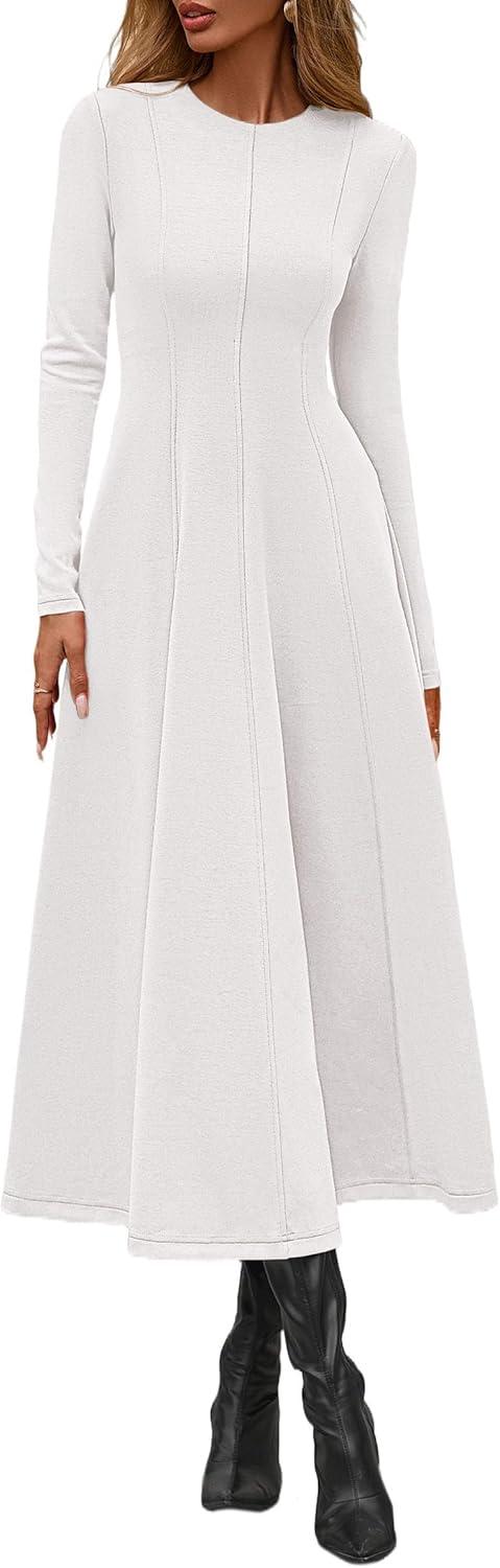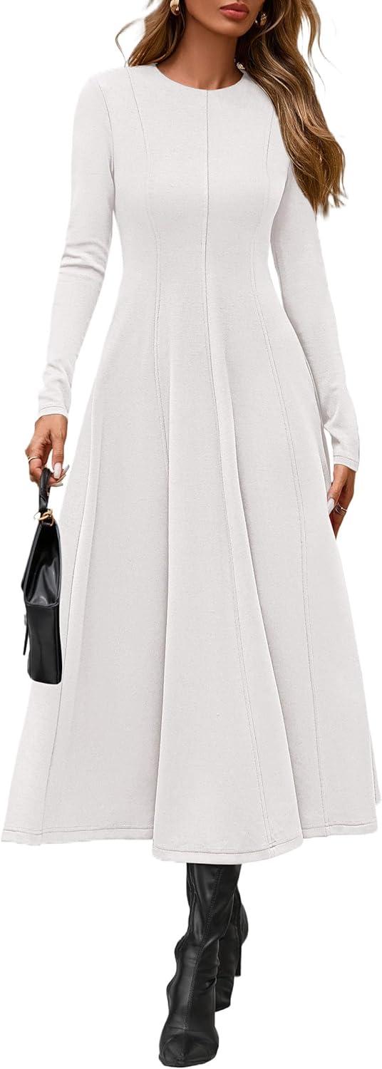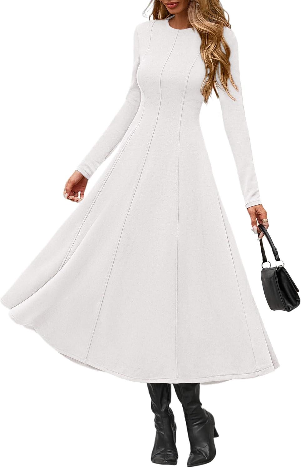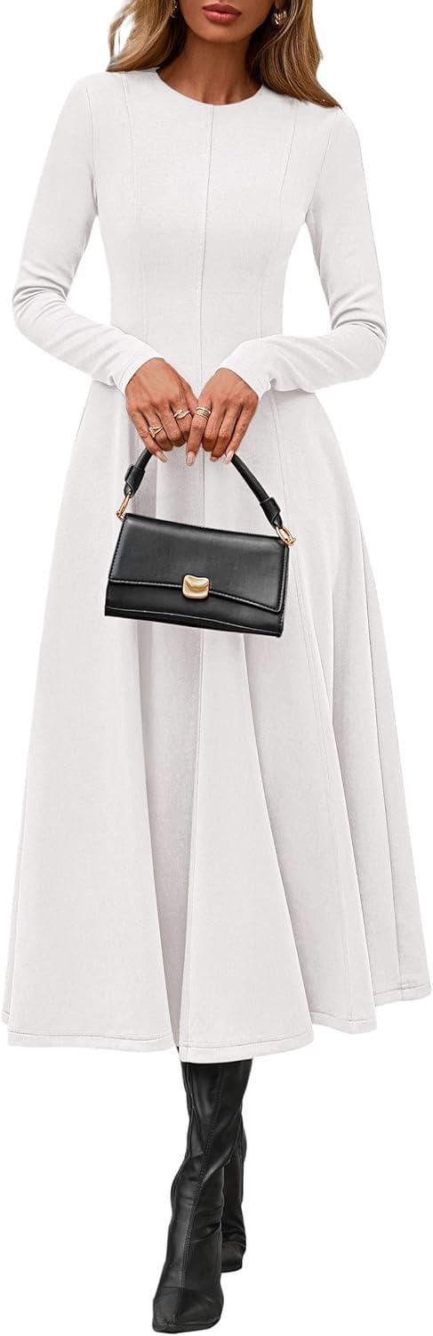 PRETTYGARDEN Cocktail Dresses for Women 2025 Elegant Classy Fall Long Sleeve Midi A Line Flowy Modest Winter Party Dress(White)