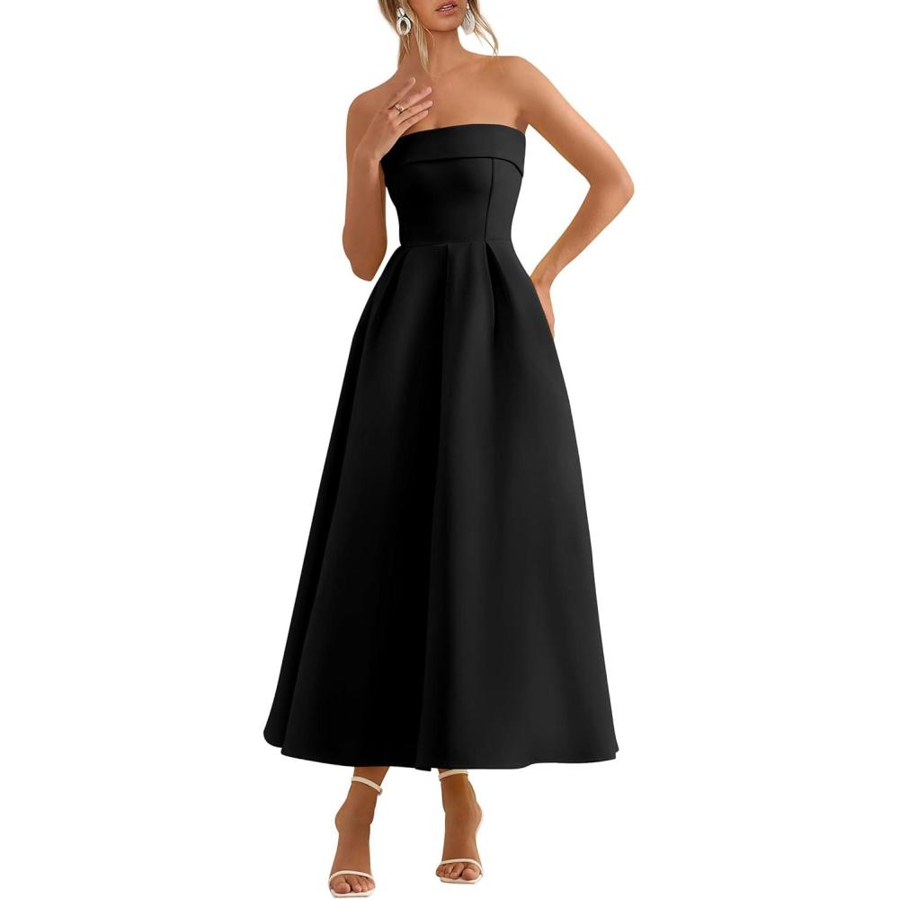 PRETTYGARDEN Cocktail Dresses for Women 2026 Summer Formal Elegant Tube Top Strapless Spring Wedding Guest Party Midi Dress(Black)