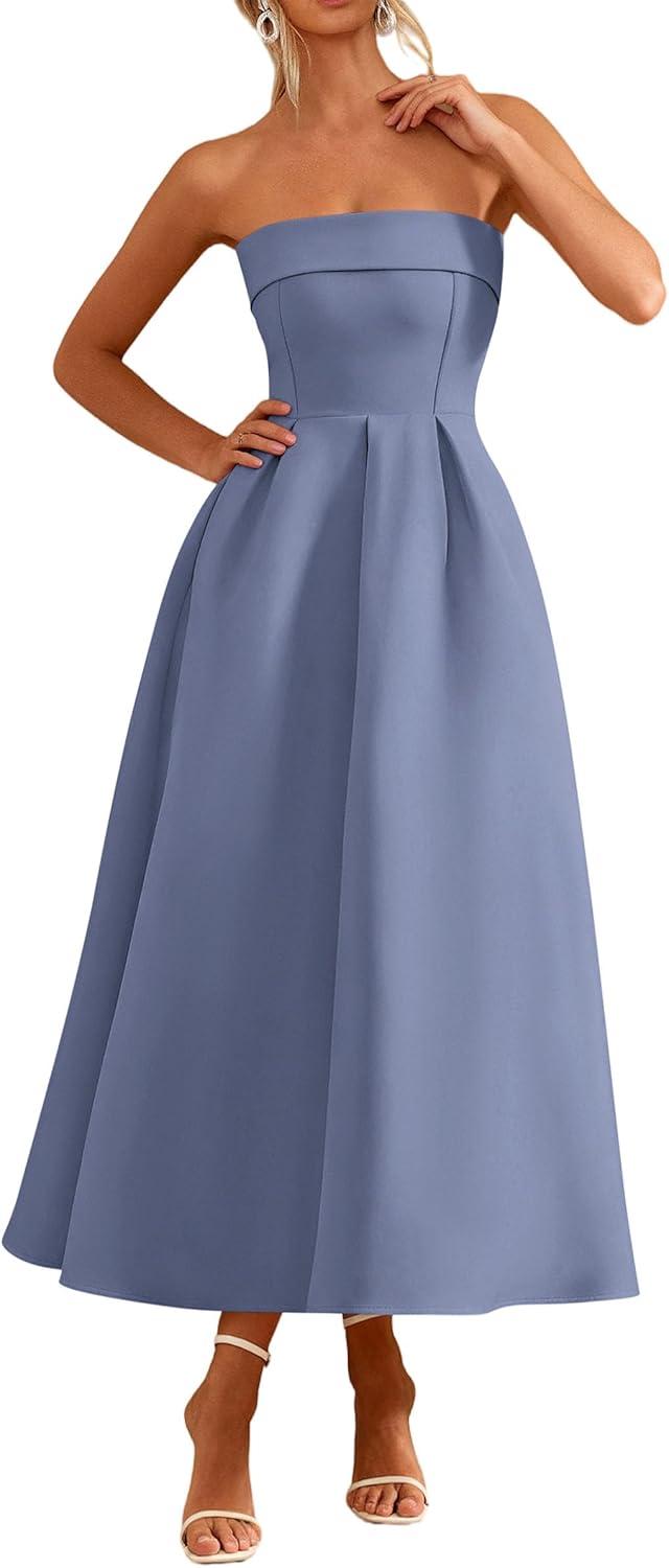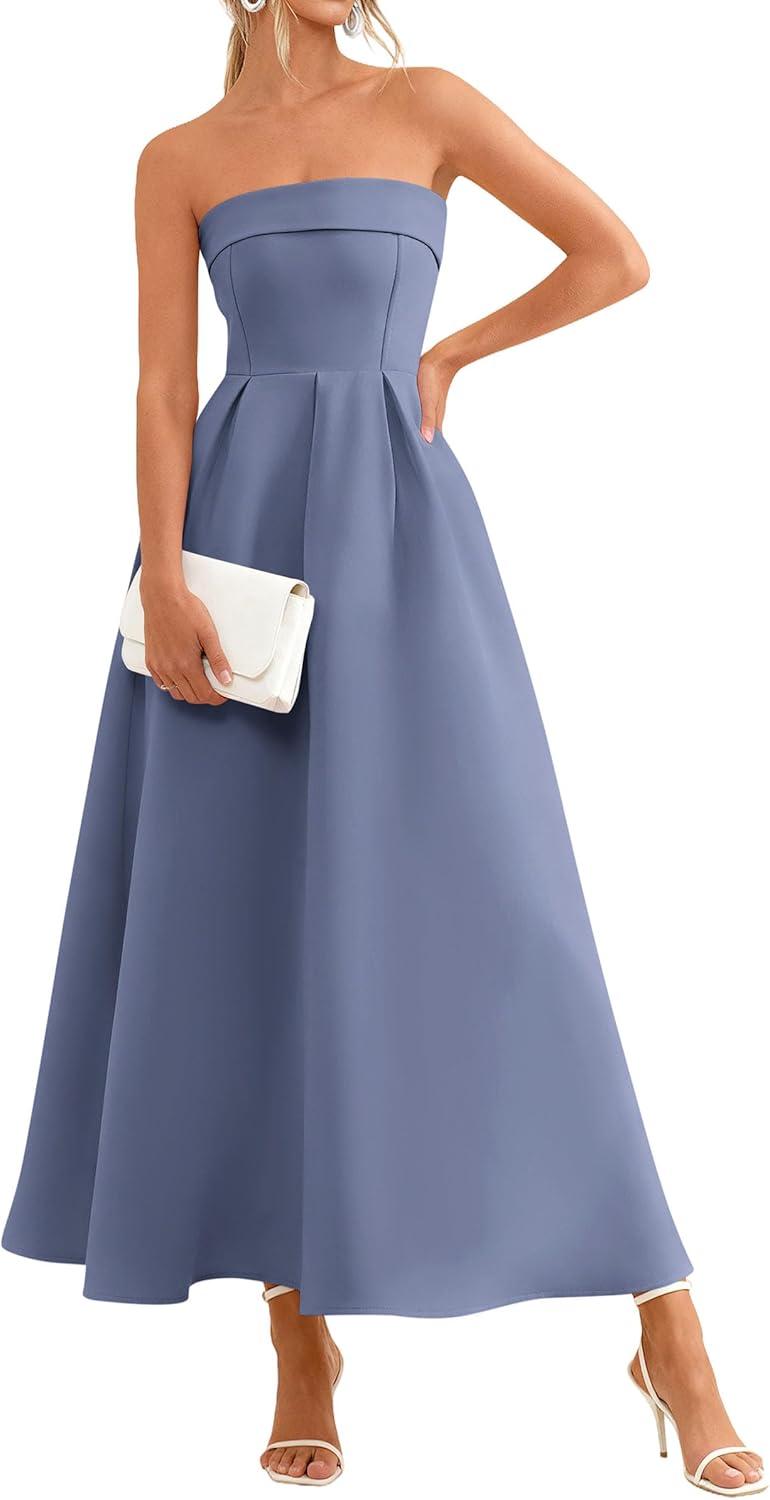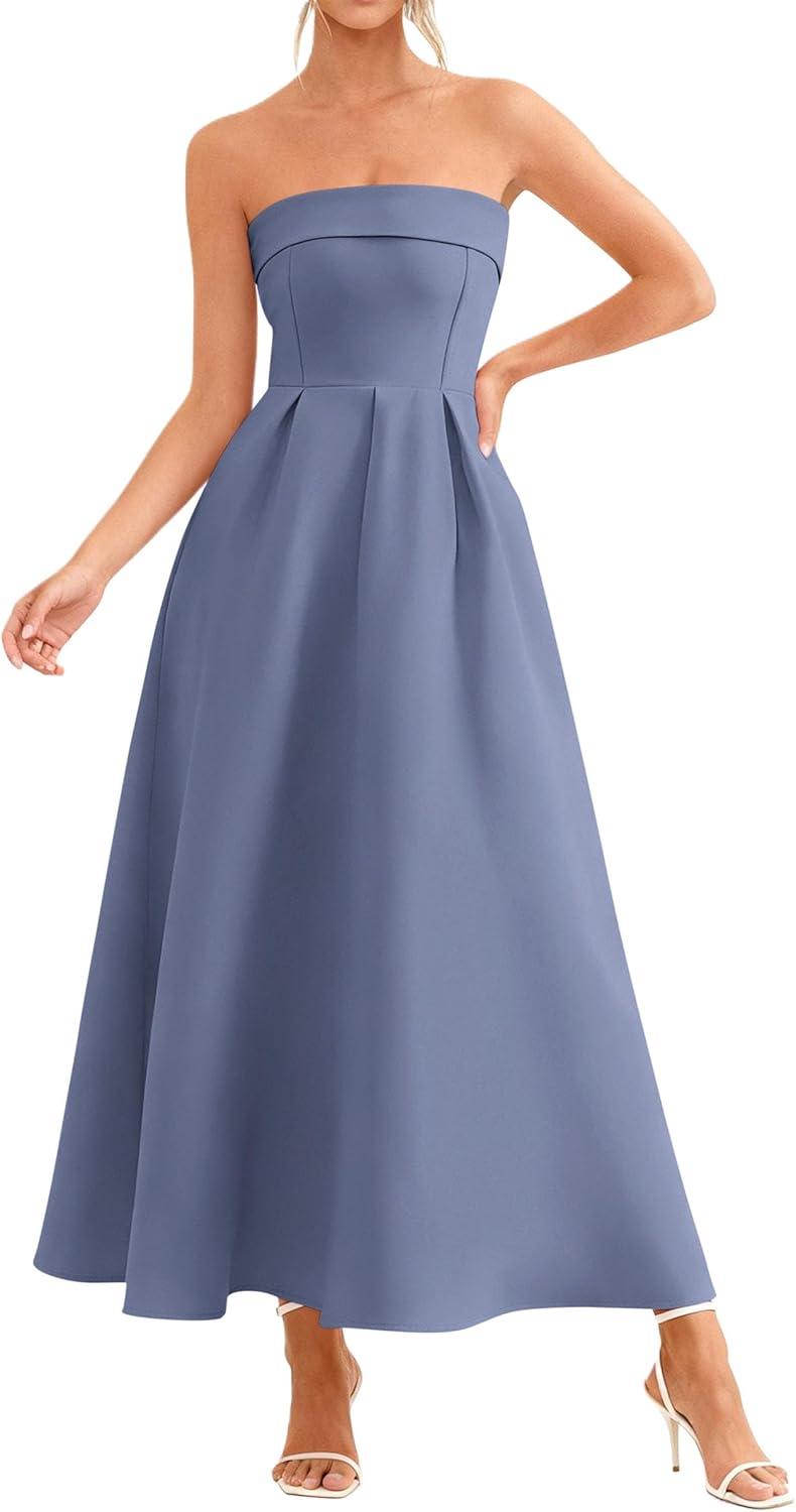 PRETTYGARDEN Cocktail Dresses for Women 2026 Summer Formal Elegant Tube Top Strapless Spring Wedding Guest Party Midi Dress(Grey Blue)