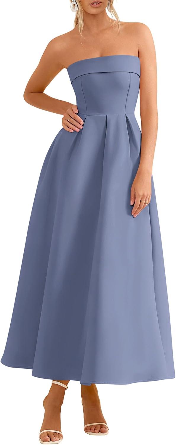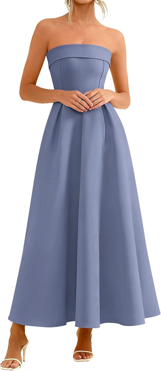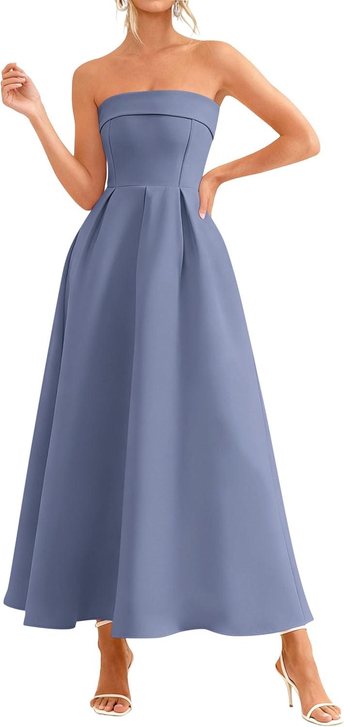 PRETTYGARDEN Cocktail Dresses for Women 2026 Summer Formal Elegant Tube Top Strapless Spring Wedding Guest Party Midi Dress(Grey Blue)