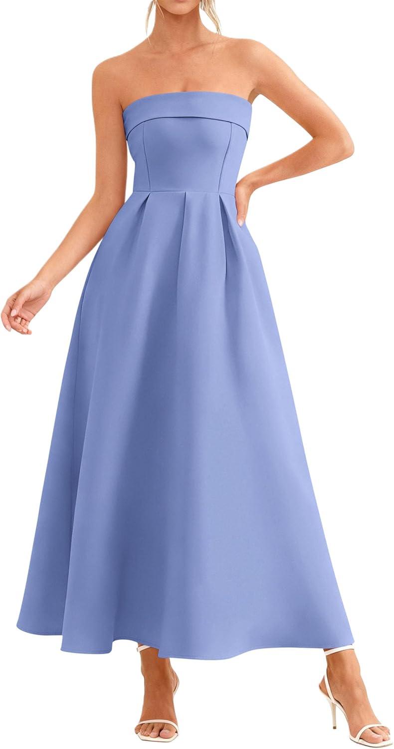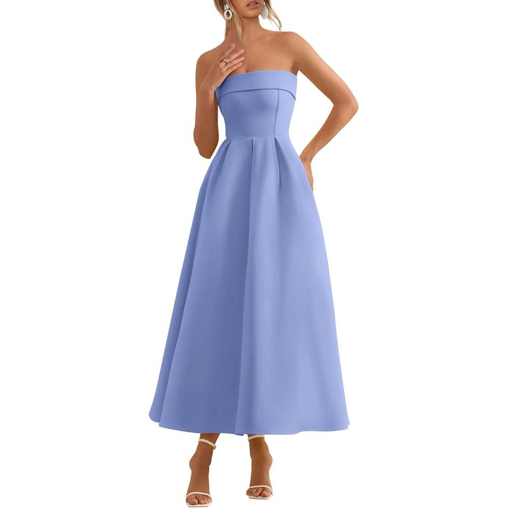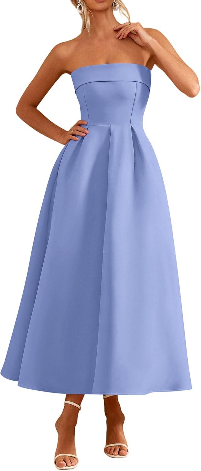 PRETTYGARDEN Cocktail Dresses for Women 2026 Summer Formal Elegant Tube Top Strapless Spring Wedding Guest Party Midi Dress(Grey Blue)