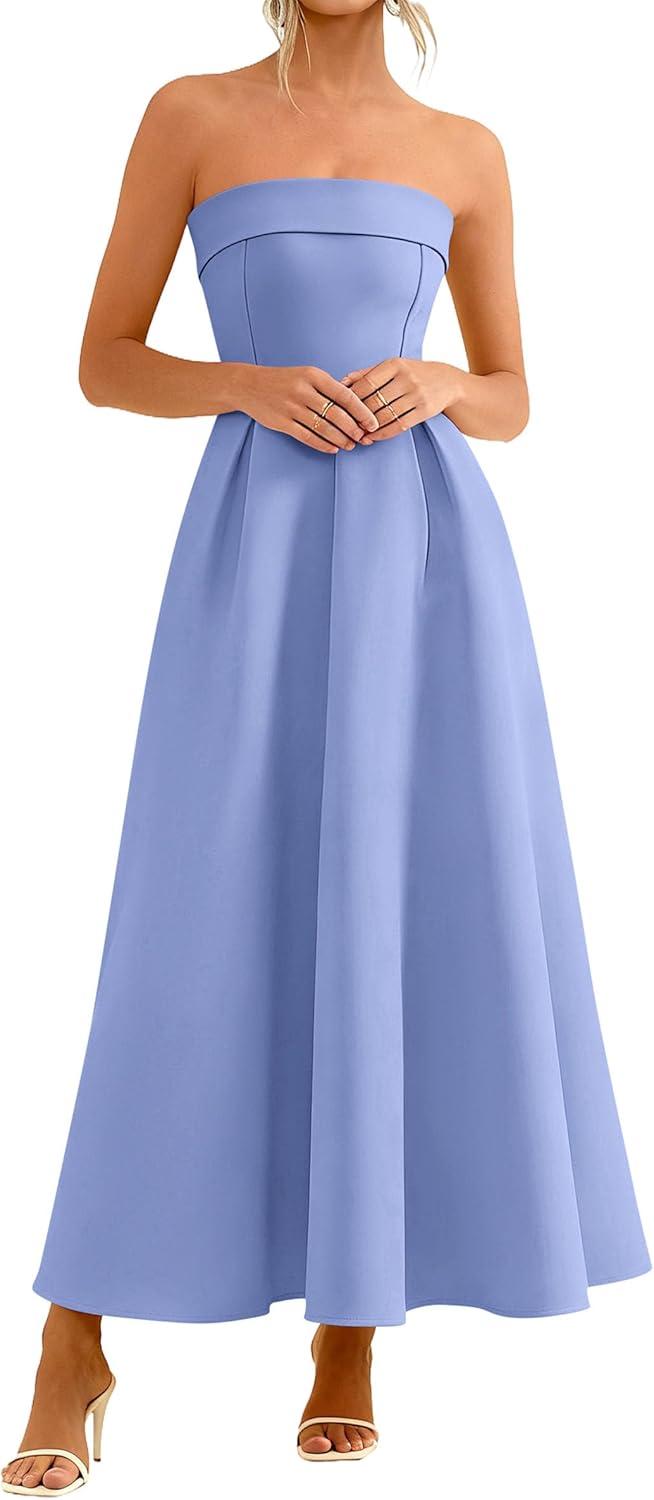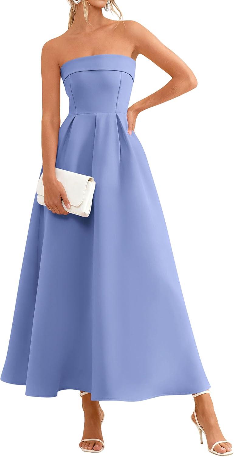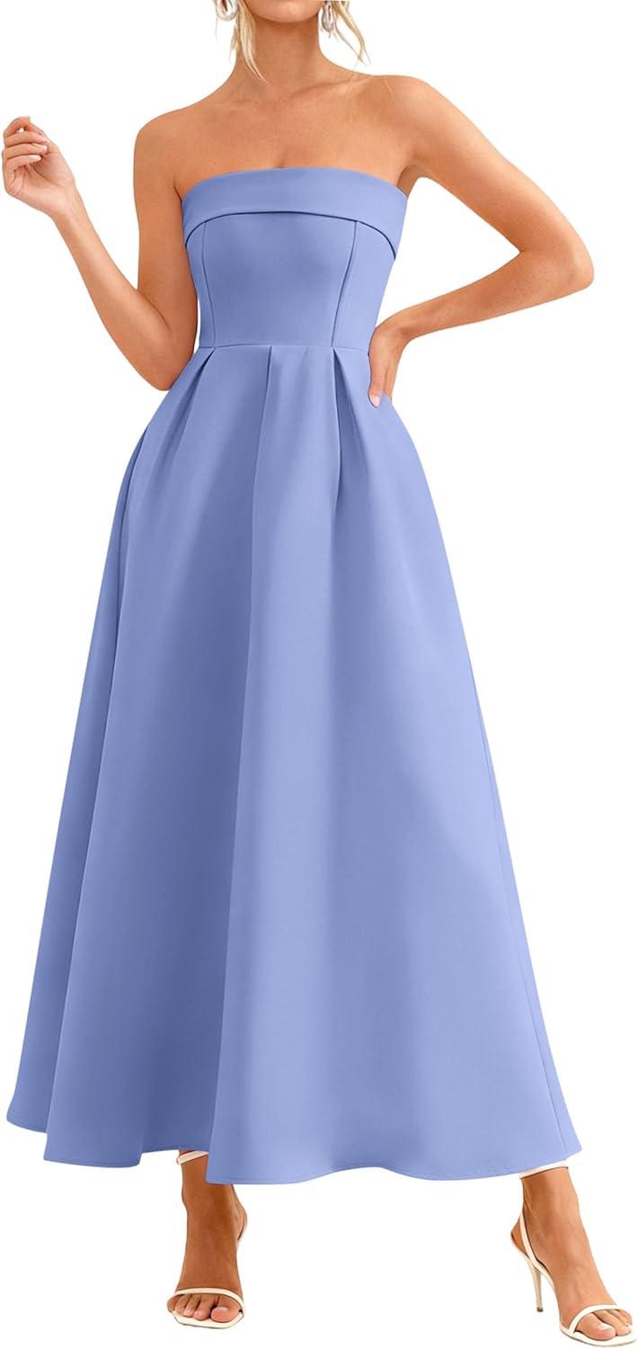 PRETTYGARDEN Cocktail Dresses for Women 2026 Summer Formal Elegant Tube Top Strapless Spring Wedding Guest Party Midi Dress(Grey Blue)