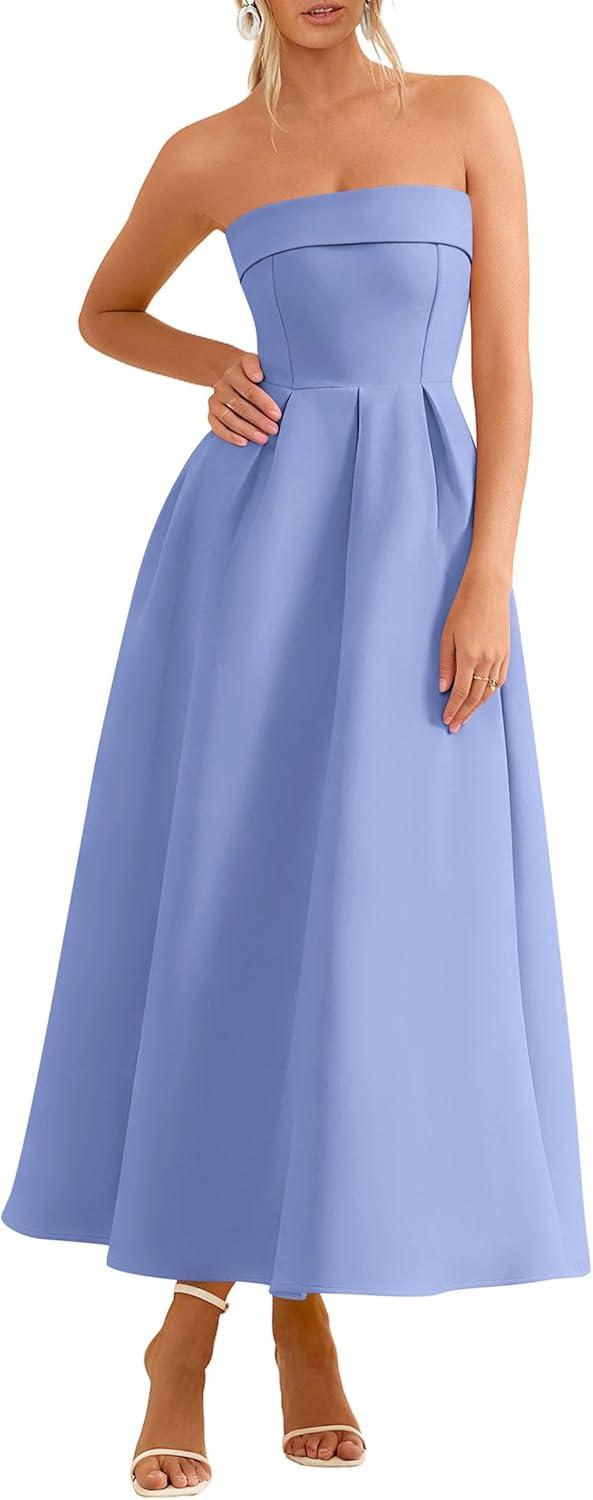 PRETTYGARDEN Cocktail Dresses for Women 2026 Summer Formal Elegant Tube Top Strapless Spring Wedding Guest Party Midi Dress(Light Blue)