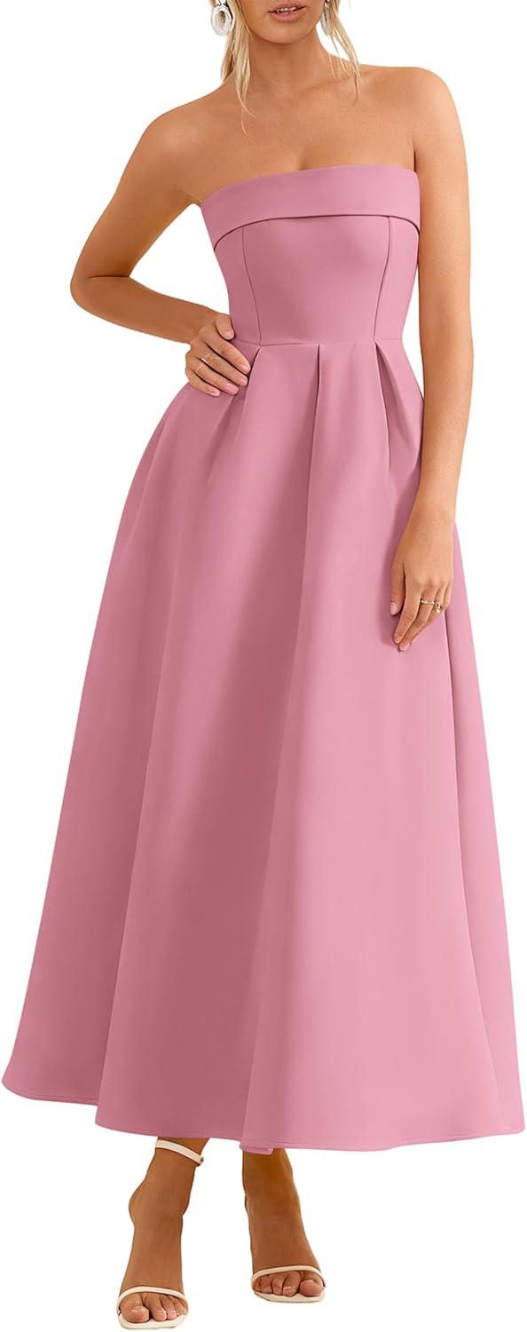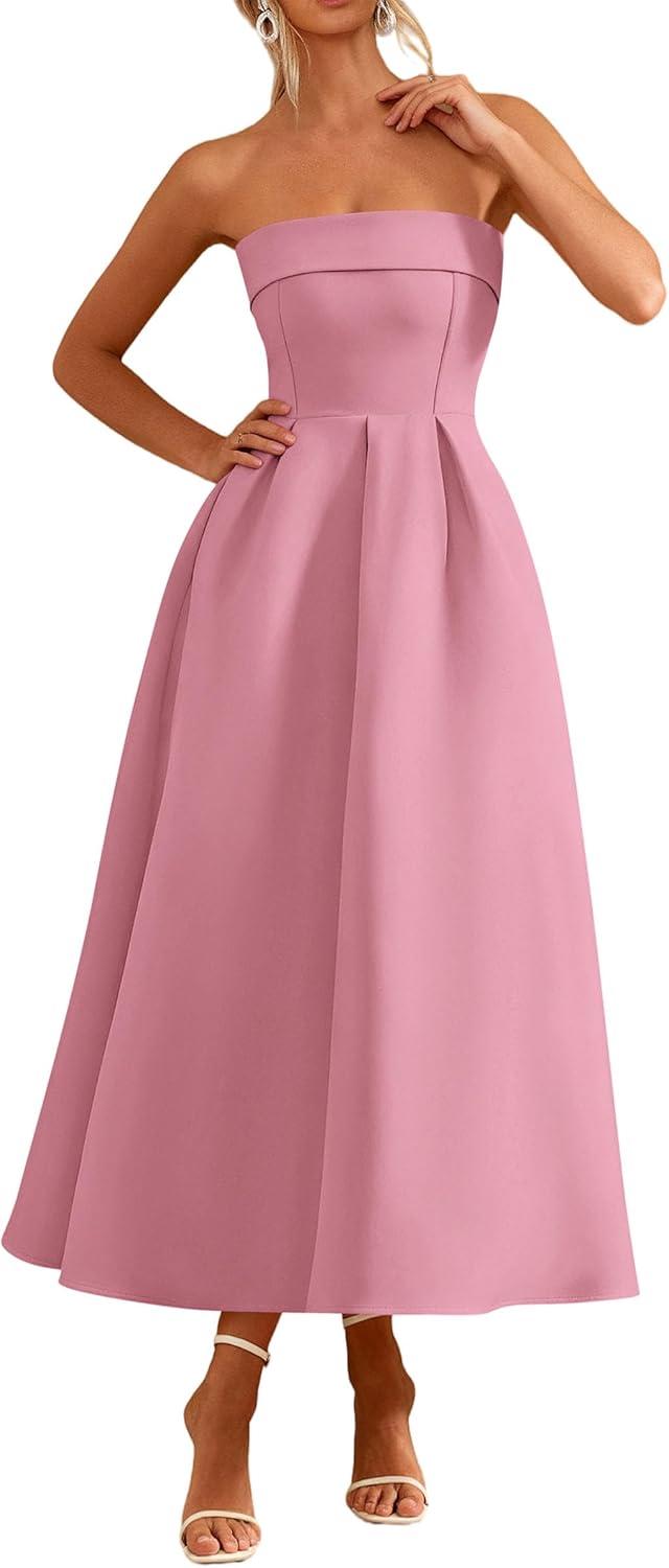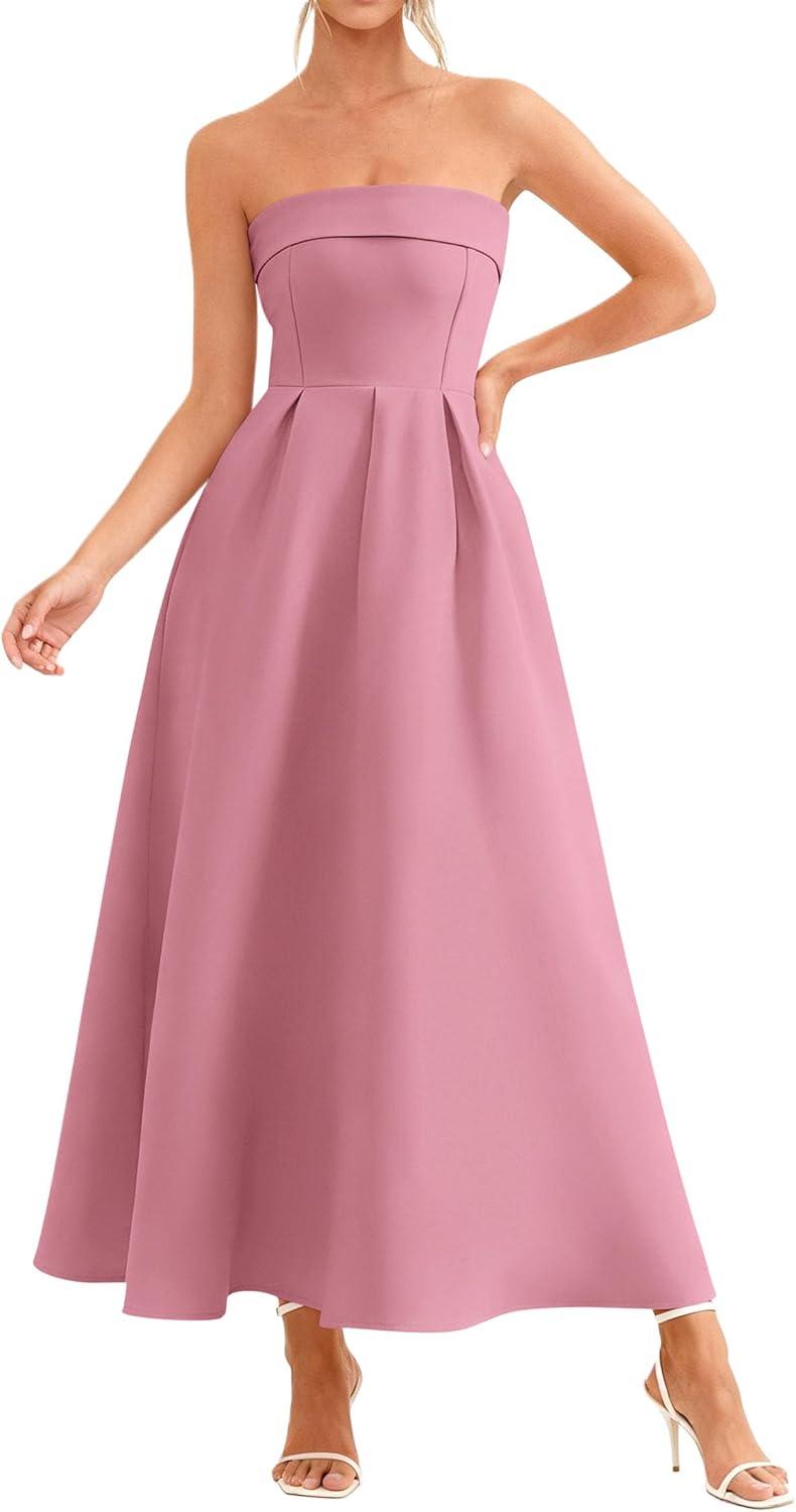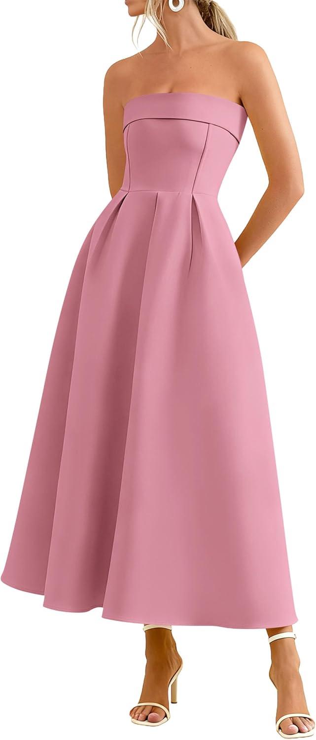PRETTYGARDEN Cocktail Dresses for Women 2026 Summer Formal Elegant Tube Top Strapless Spring Wedding Guest Party Midi Dress(Pink)