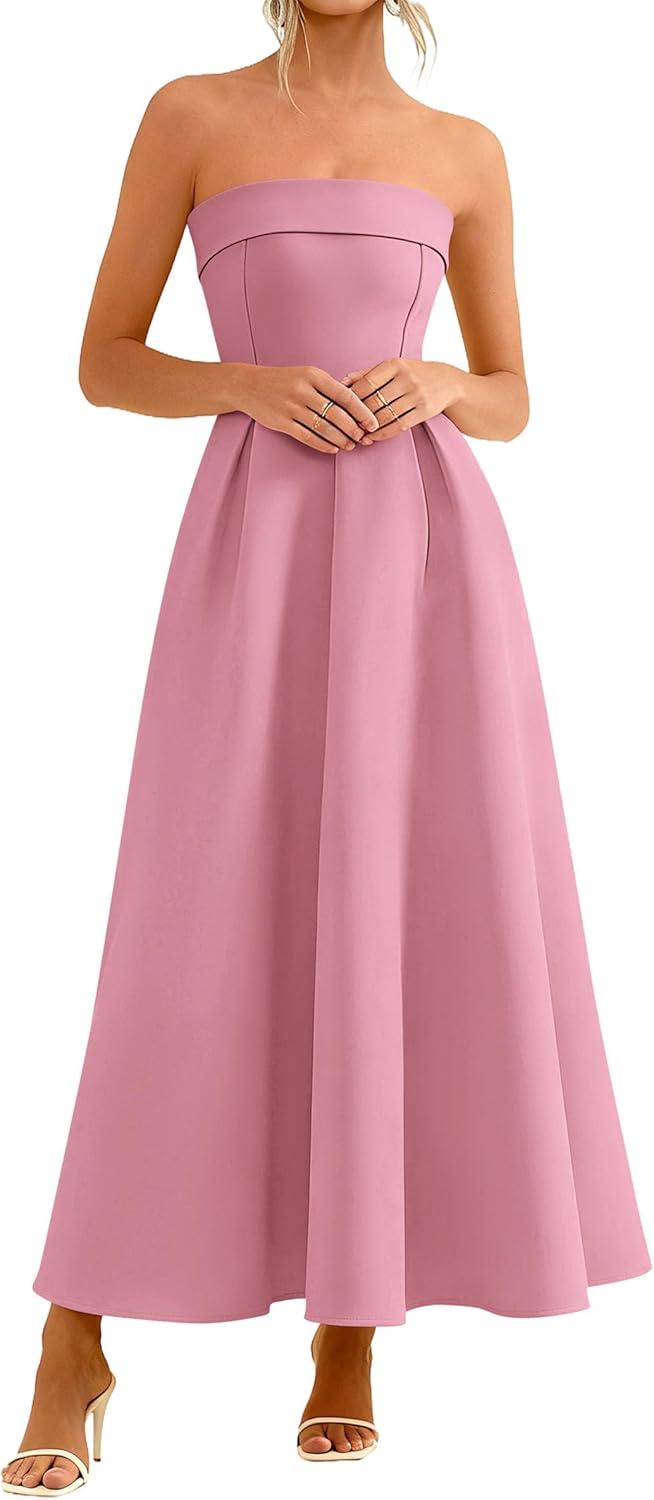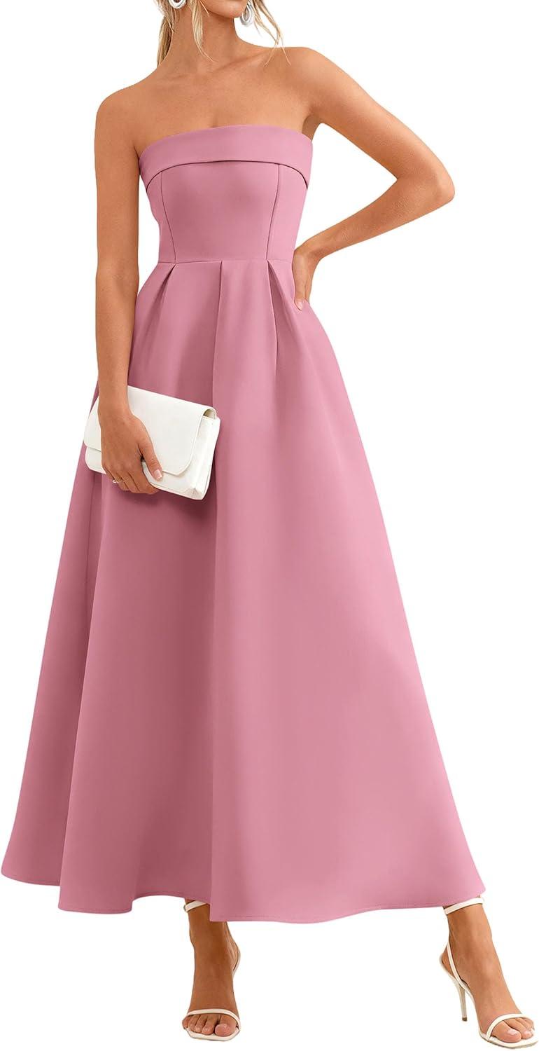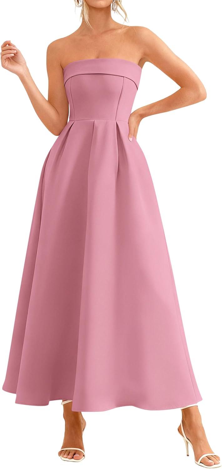 PRETTYGARDEN Cocktail Dresses for Women 2026 Summer Formal Elegant Tube Top Strapless Spring Wedding Guest Party Midi Dress(Pink)