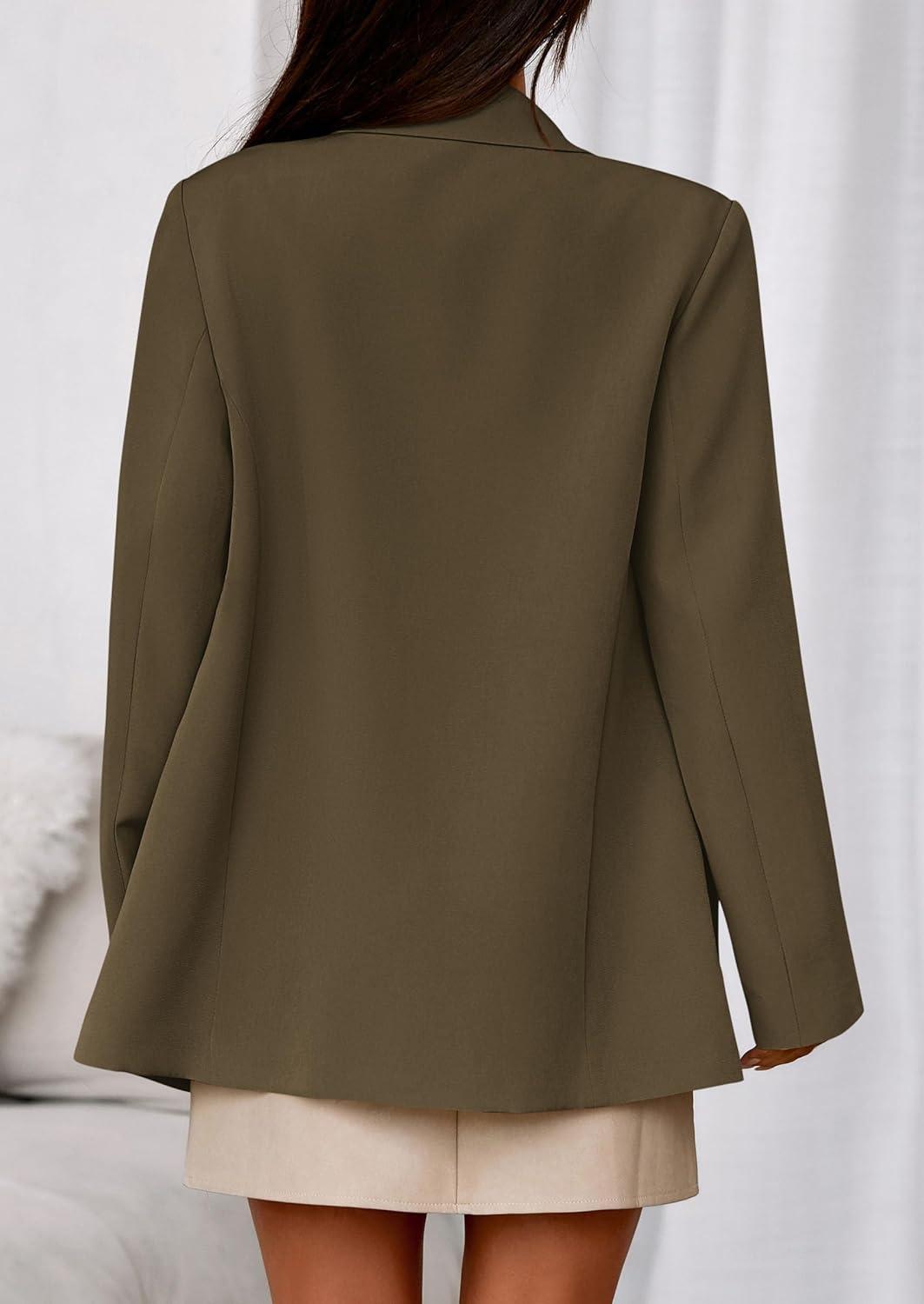 PRETTYGARDEN Fall 2025 Blazers for Women Business Casual Long Sleeve Lapel Pockets Dressy Suit Jackets Work Office Clothes(Army Green)