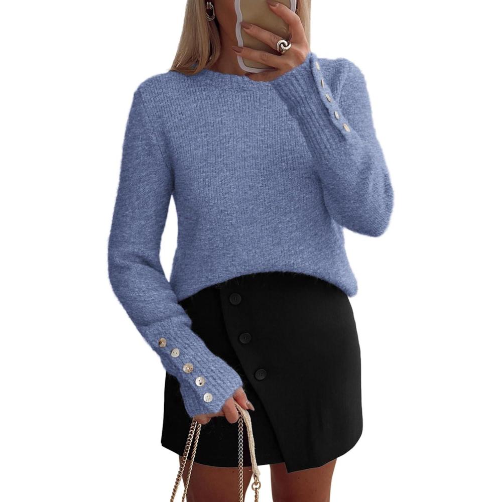 imagePRETTYGARDEN Fall Sweaters for Women 2025 Cozy Casual Crewneck Pullover Button Long Sleeve Knit Tops Winter Fashion ClothingBlue