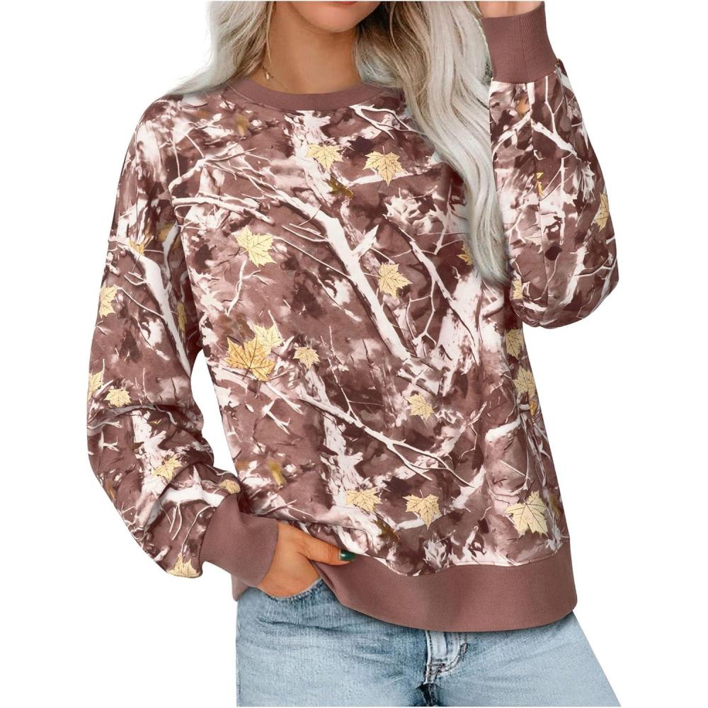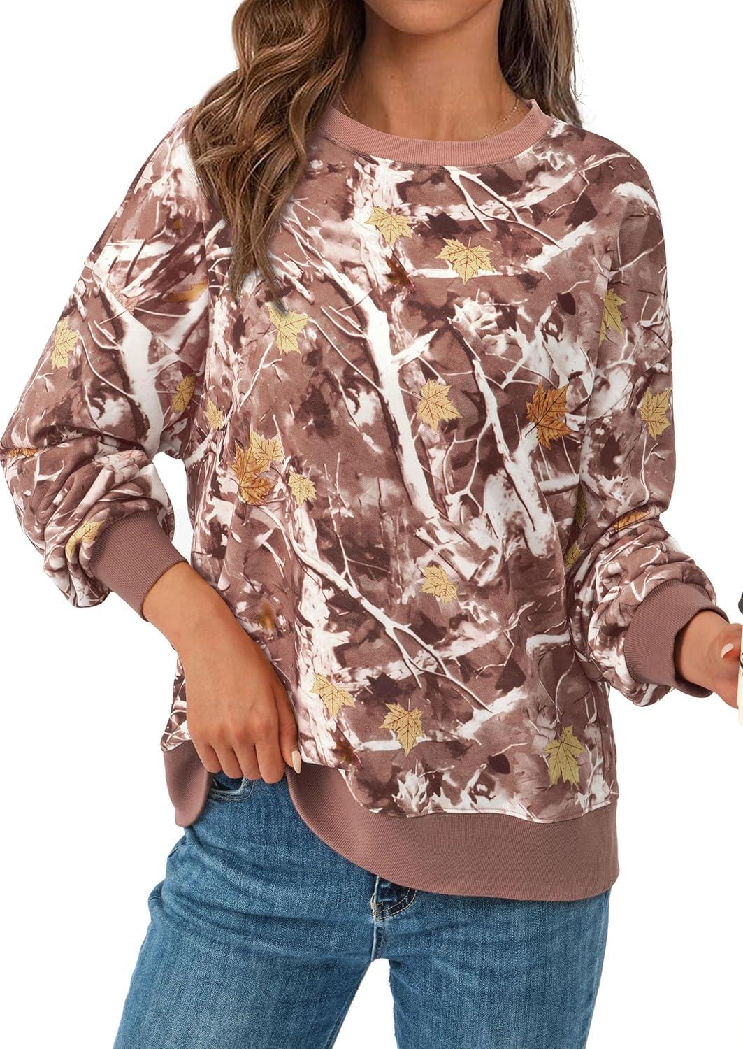 PRETTYGARDEN Graphic Sweatshirts for Women Crewneck Floral Print Long Sleeve Pullover Y2K Tops 2025 Fall Casual Cute Clothes(Brown Floral)