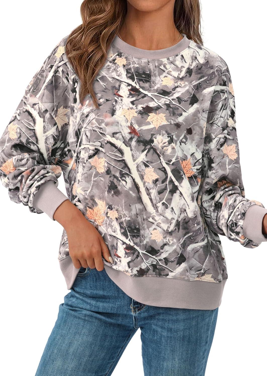 PRETTYGARDEN Graphic Sweatshirts for Women Crewneck Floral Print Long Sleeve Pullover Y2K Tops 2025 Fall Casual Cute Clothes(Gray Floral)