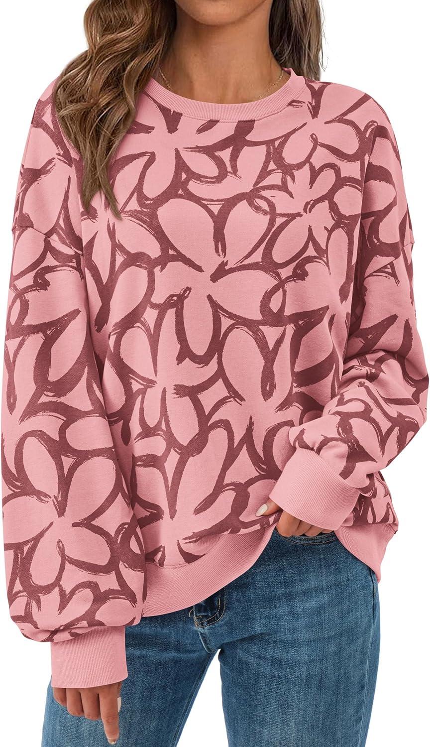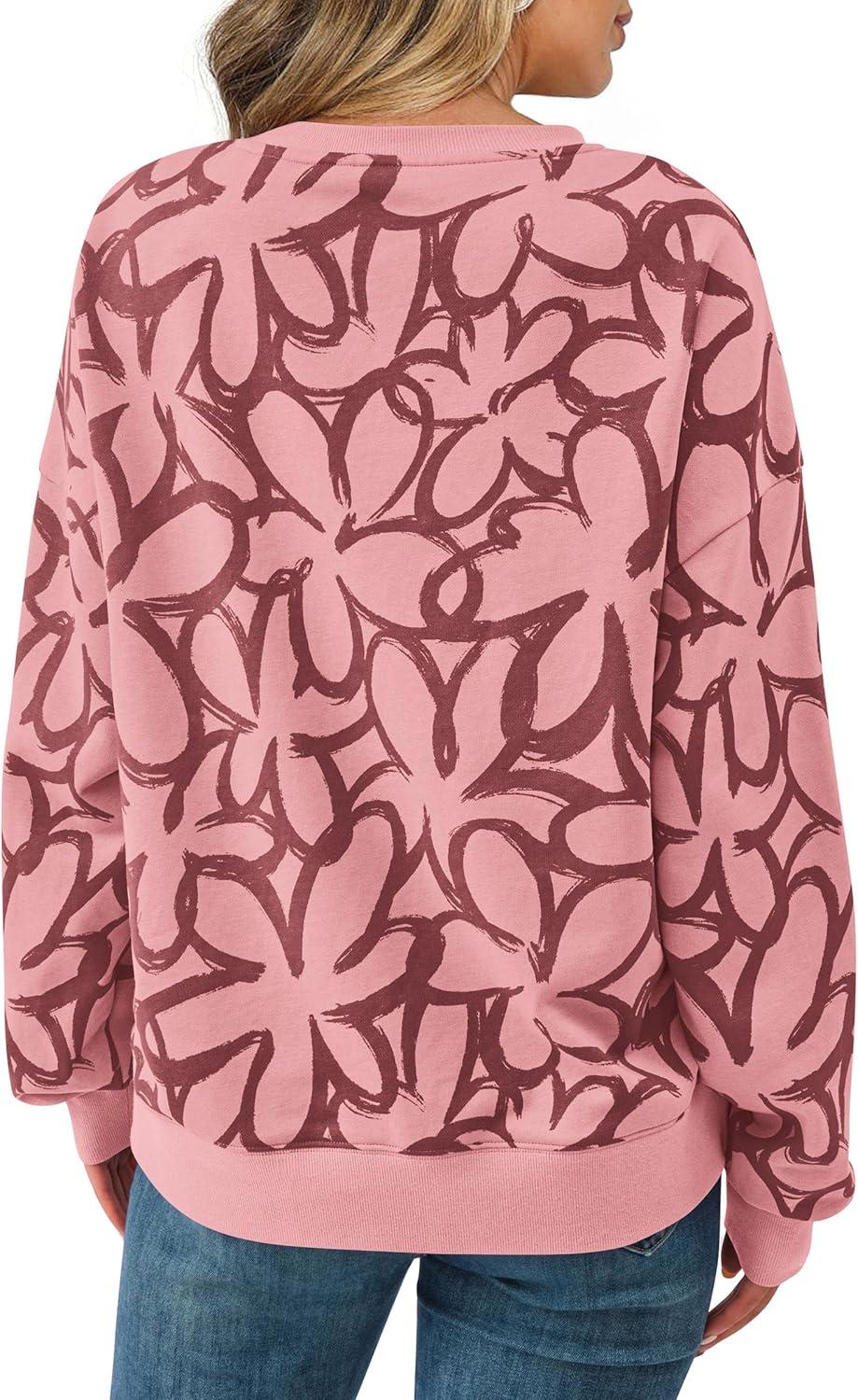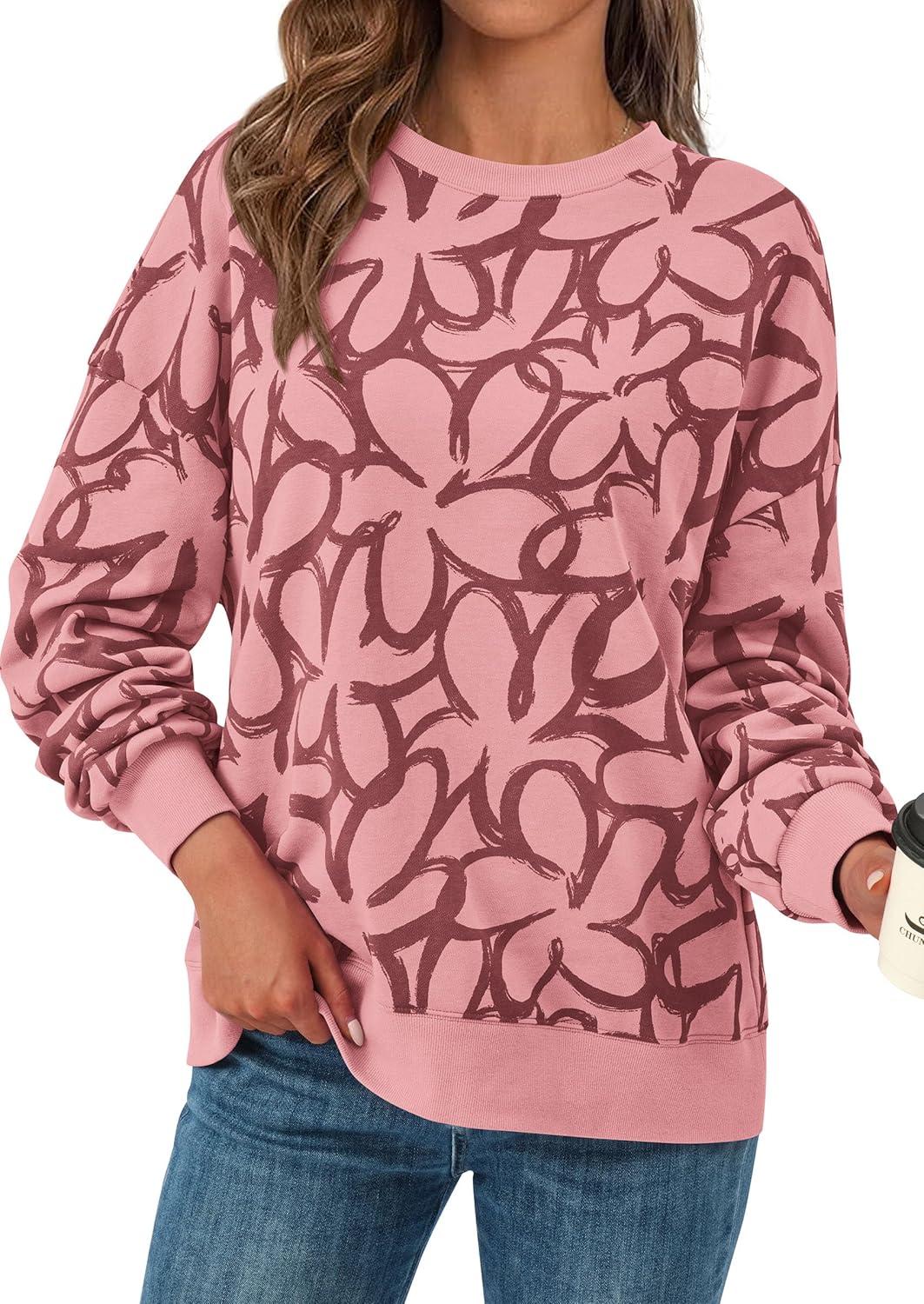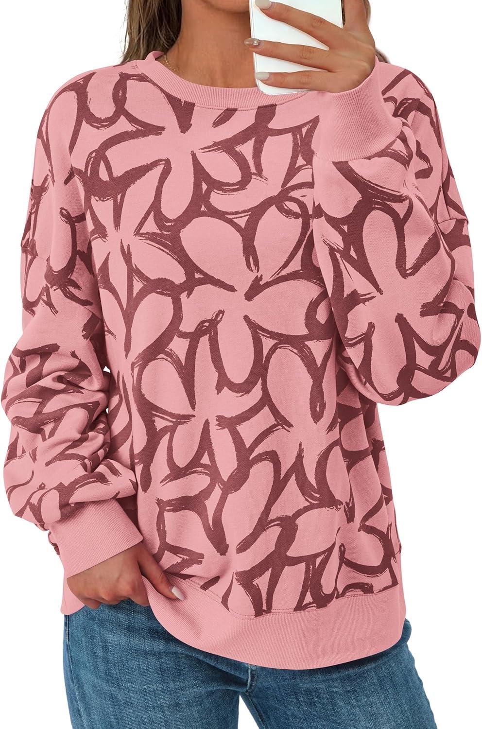 PRETTYGARDEN Graphic Sweatshirts for Women Crewneck Floral Print Long Sleeve Pullover Y2K Tops 2025 Fall Casual Cute Clothes(Pink Floral)