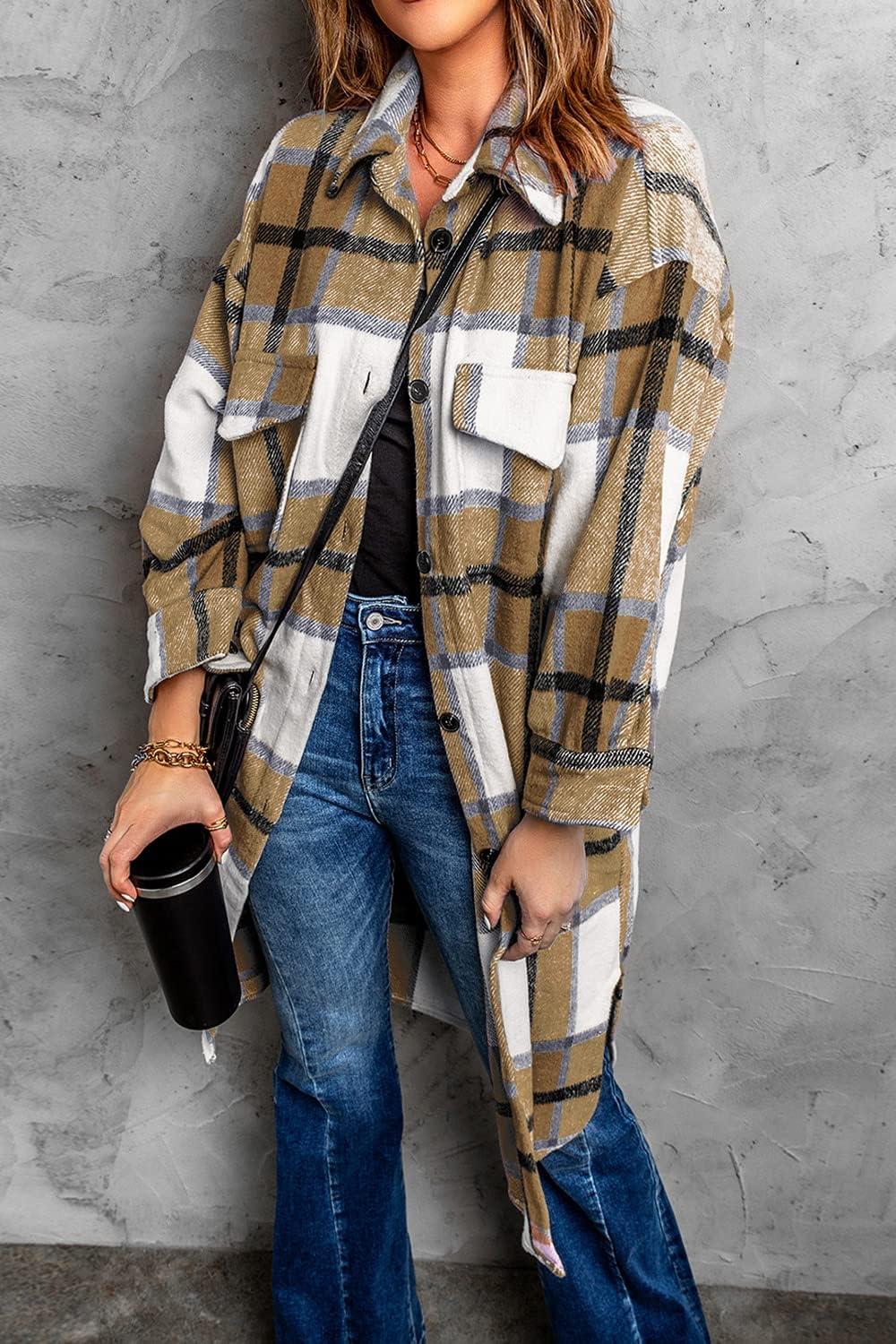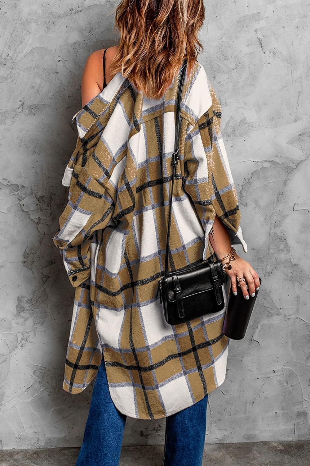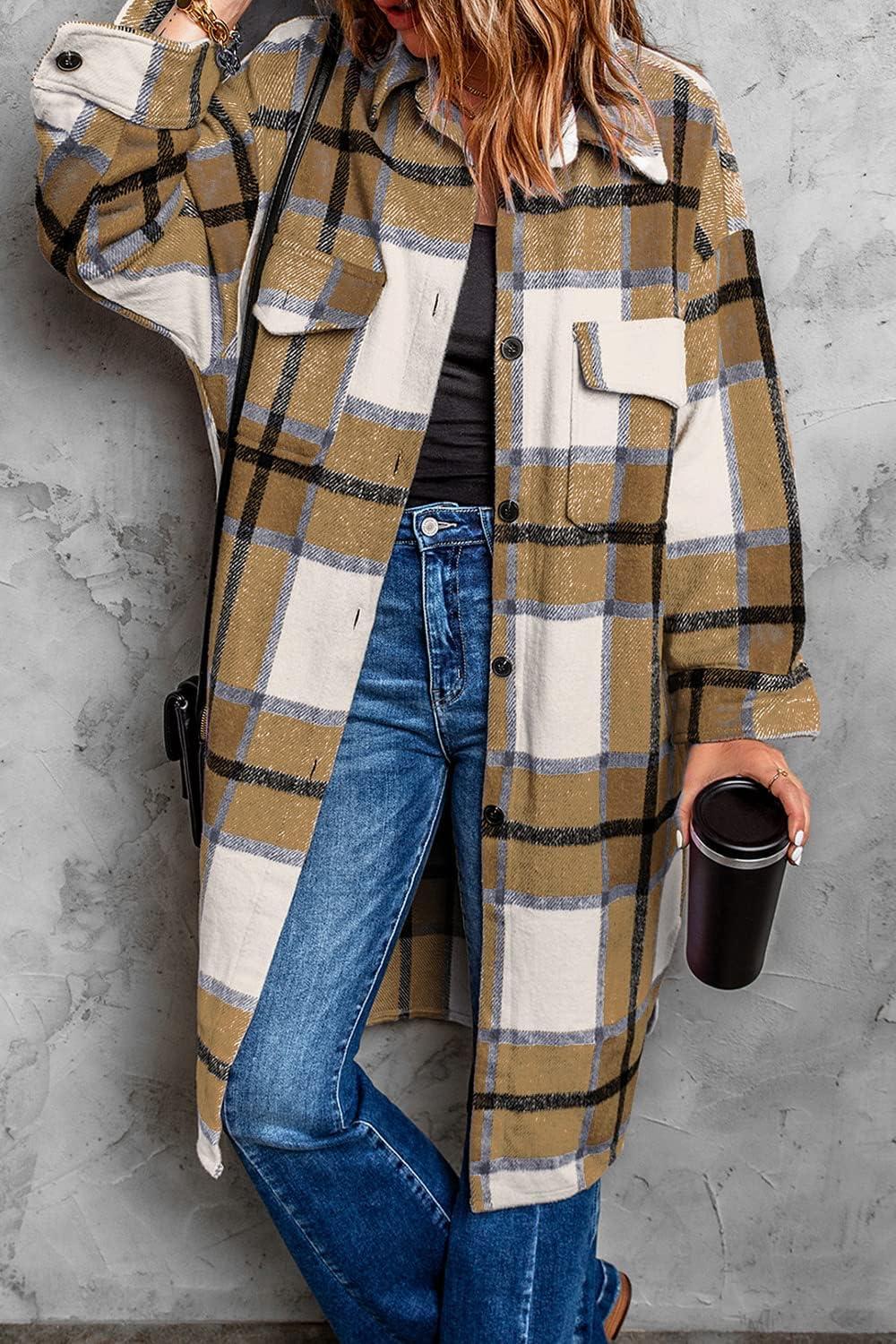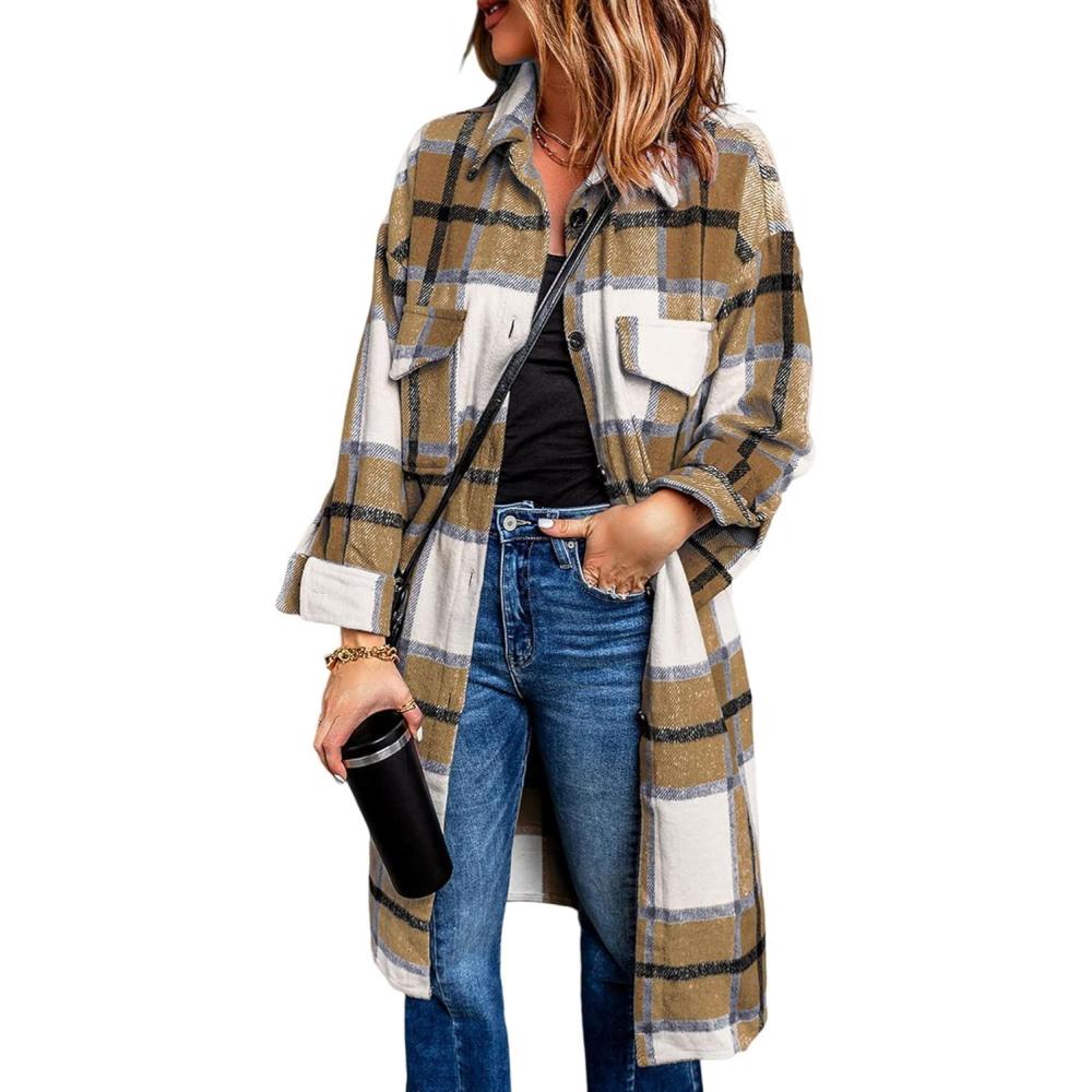 PRETTYGARDEN Jackets for Women 2025 Fall Plaid Shacket Long Sleeve Button Down Flannel Shirts Winter Coats Fashion Clothing(Khaki)