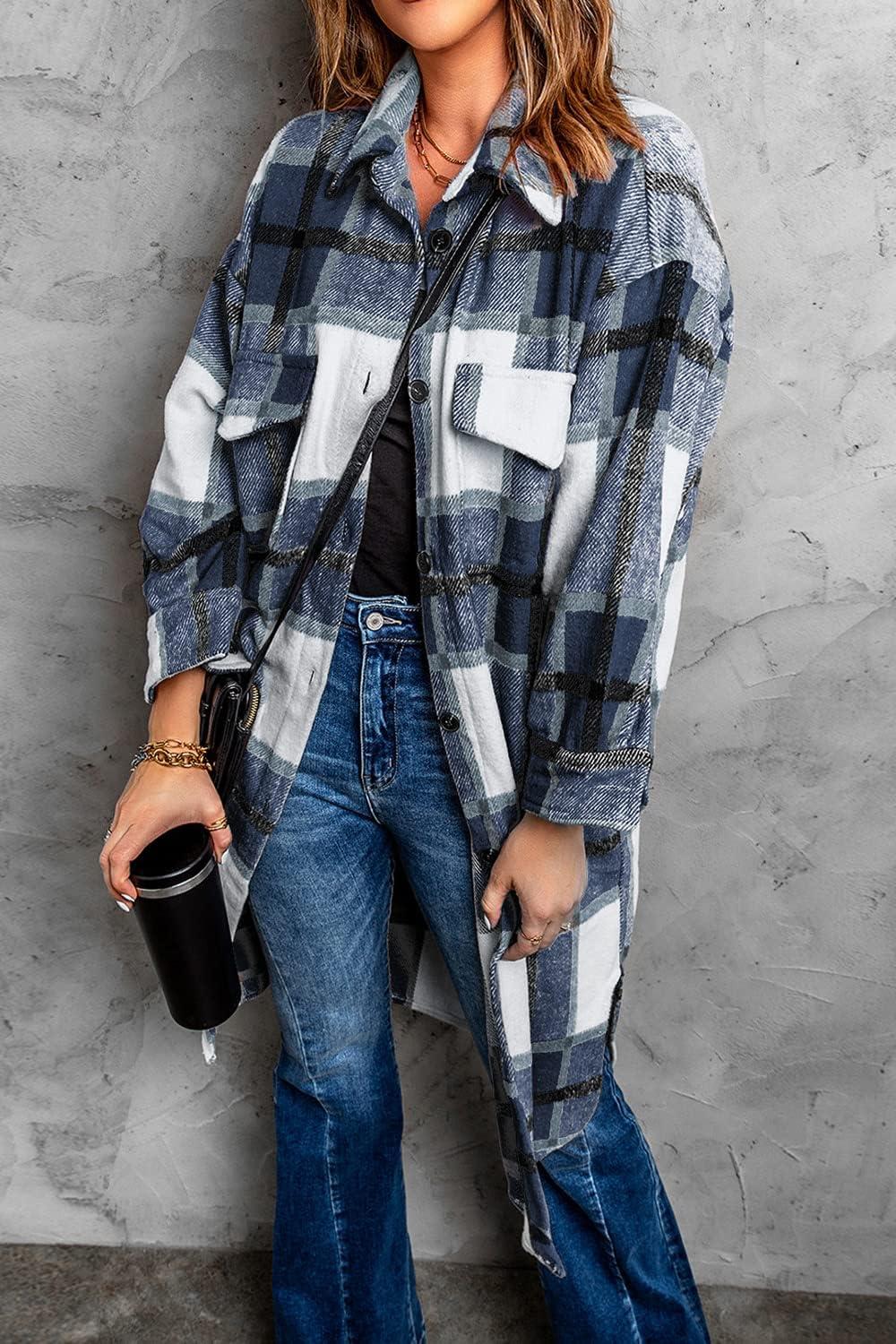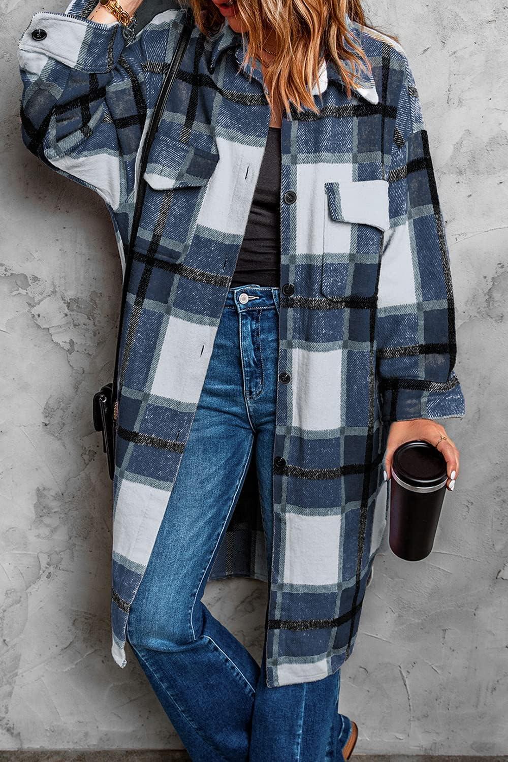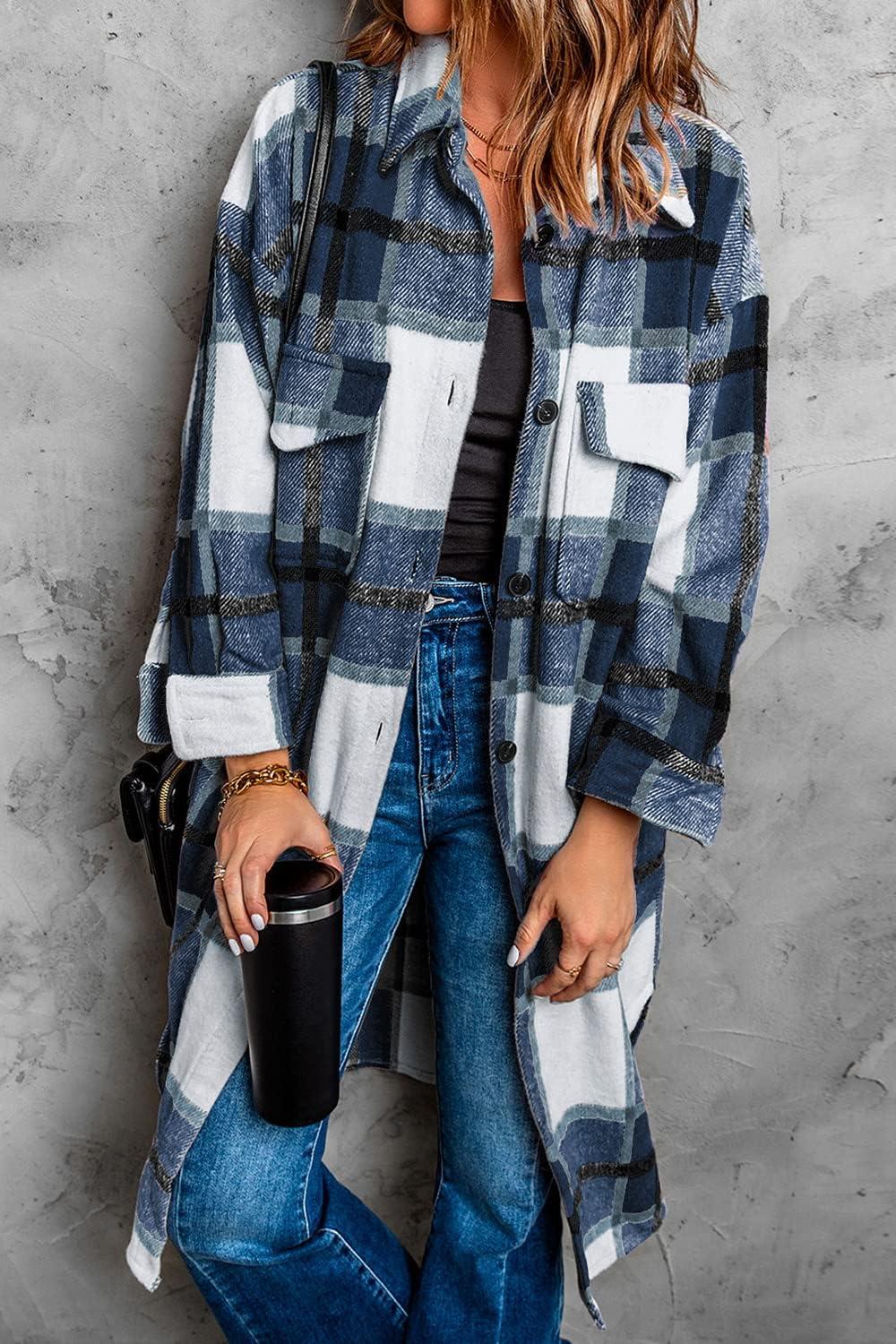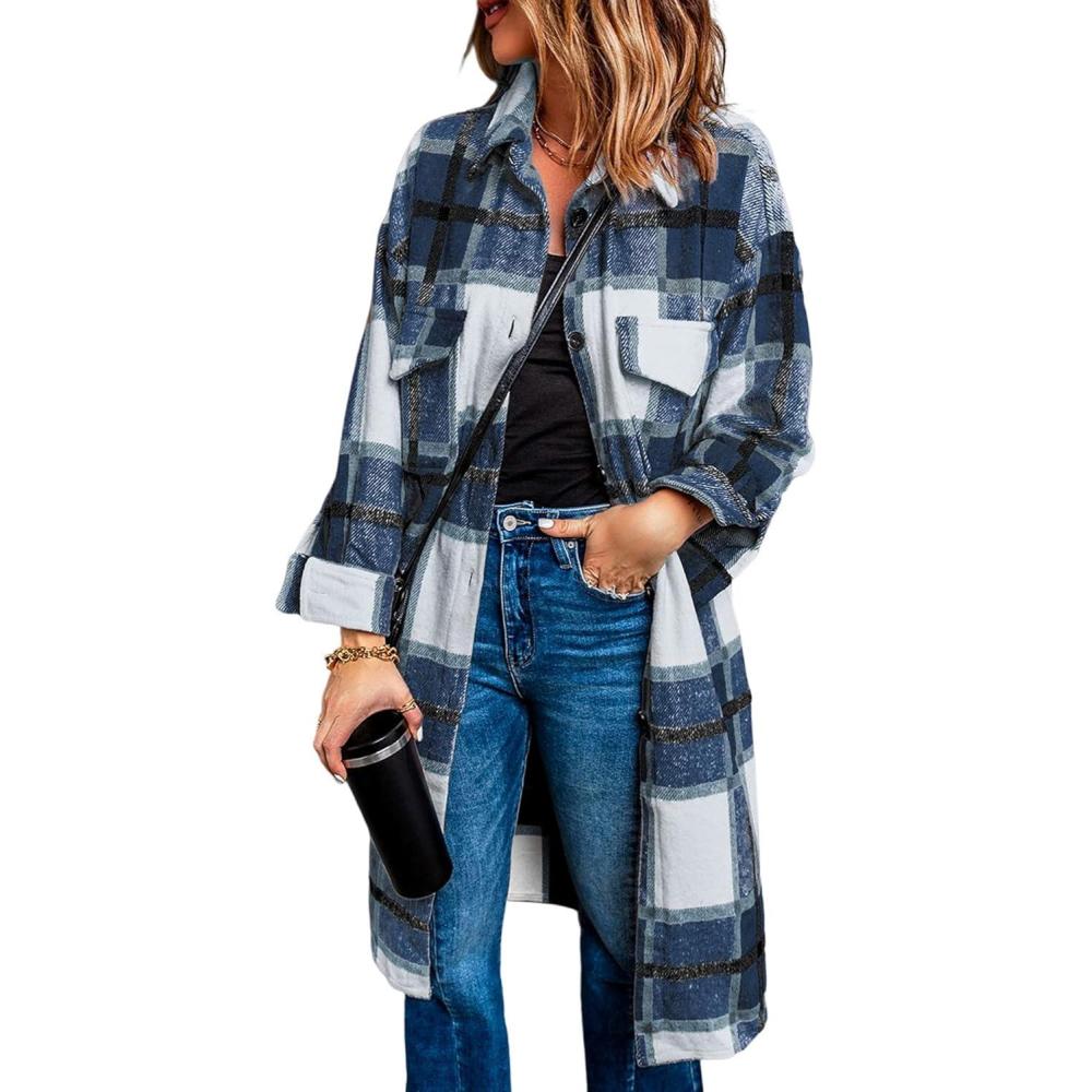 Get the PRETTYGARDEN Jackets for Women 2025 Fall Plaid Shacket Long Sleeve Button Down Flannel Shirts Winter Coats Fashion Clothing(Navy) you want at a discounted price during our markdown sale event.