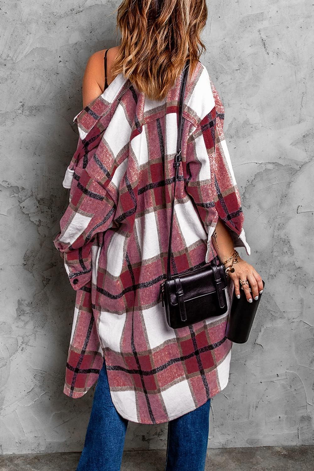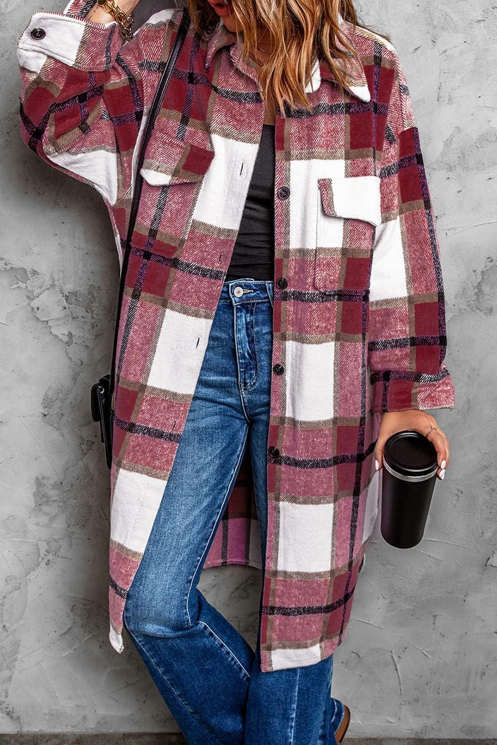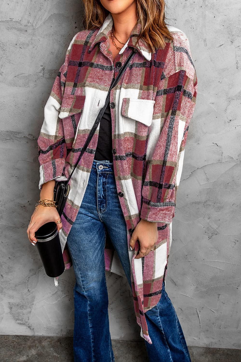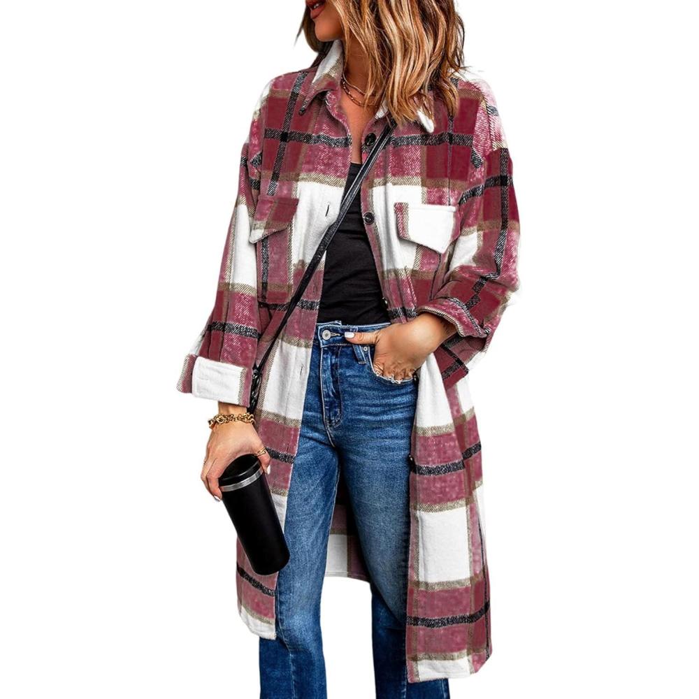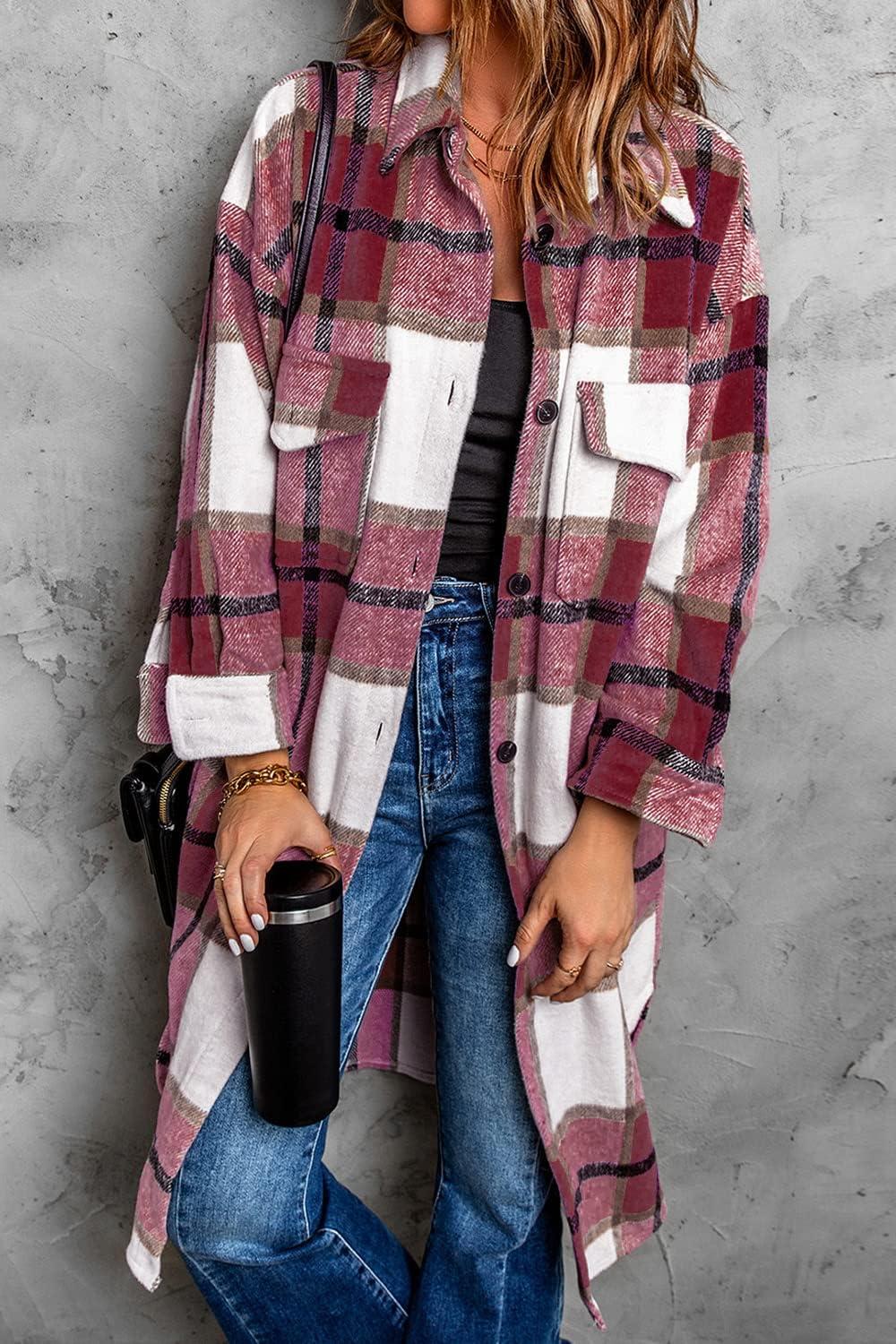 PRETTYGARDEN Jackets for Women 2025 Fall Plaid Shacket Long Sleeve Button Down Flannel Shirts Winter Coats Fashion Clothing(Red)