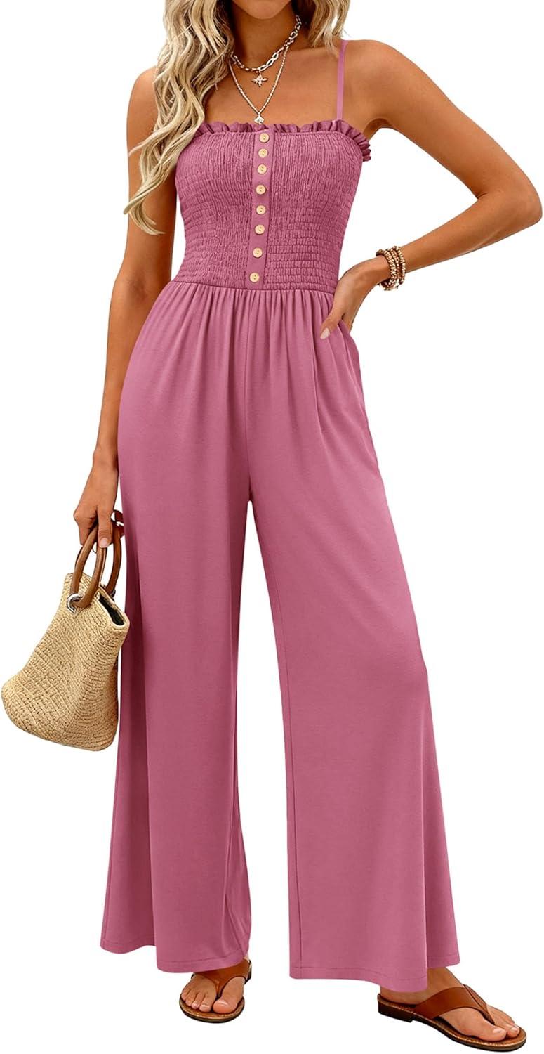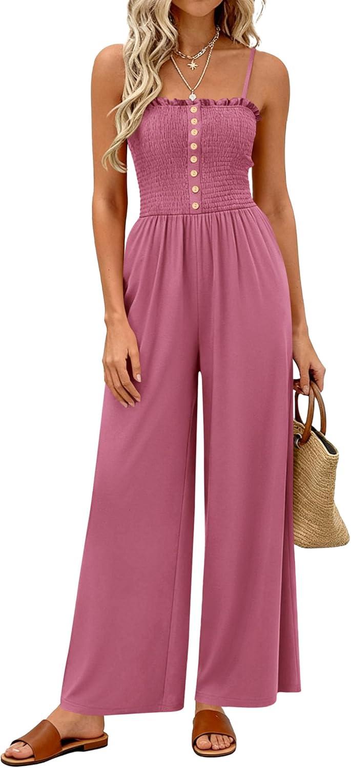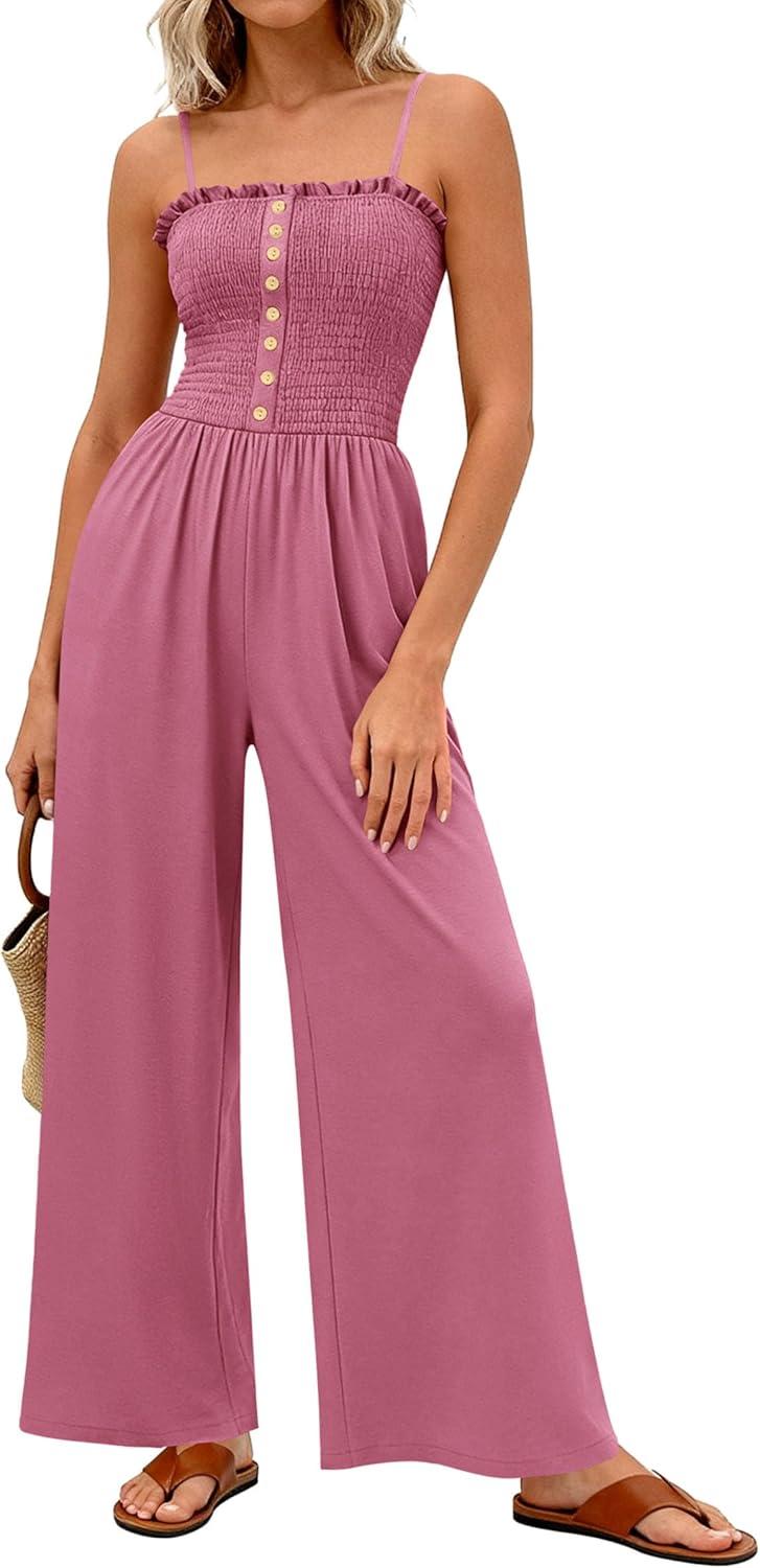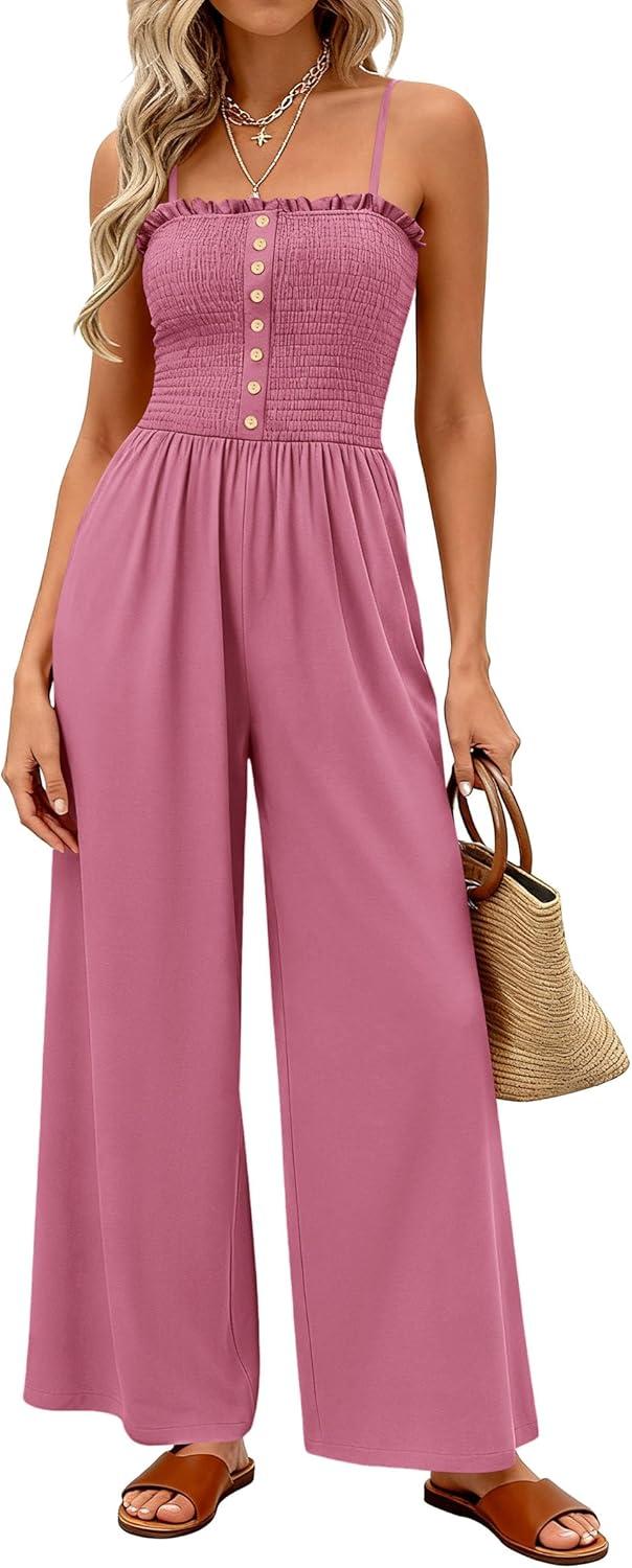 Be the first to review “PRETTYGARDEN Jumpsuits for Women 2026 Summer Sleeveless Smocked Button Wide Leg Rompers Spring Travel One Piece Outfits(Pink)” Cancel reply