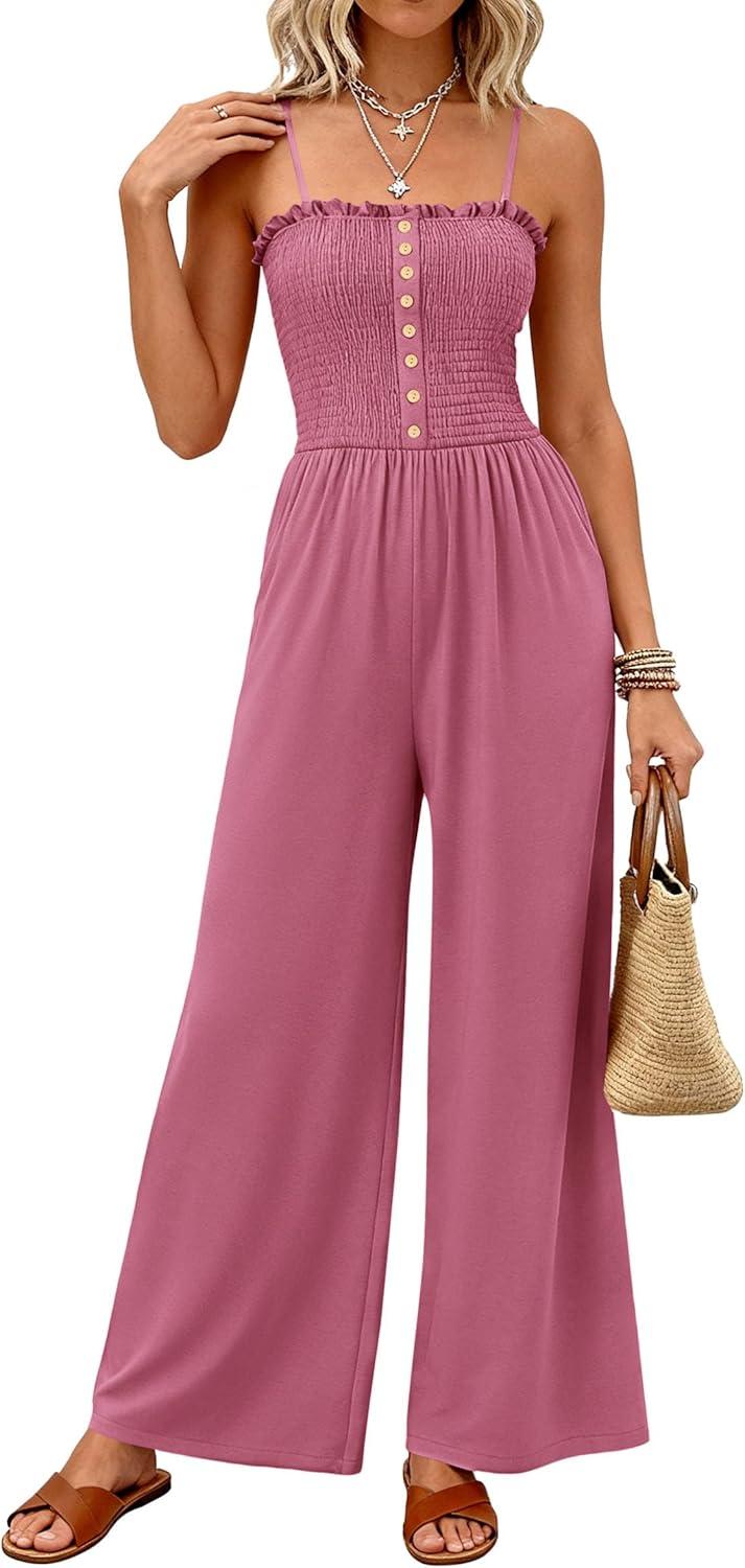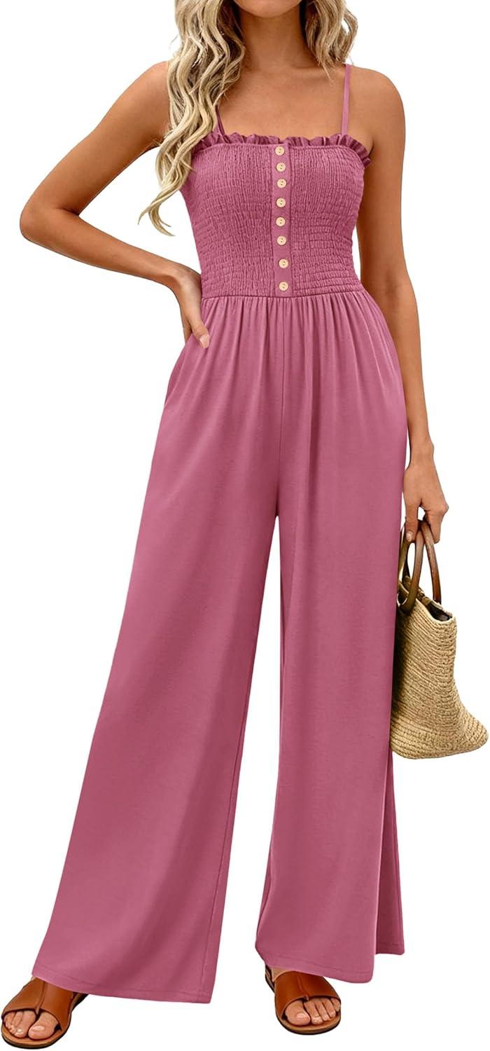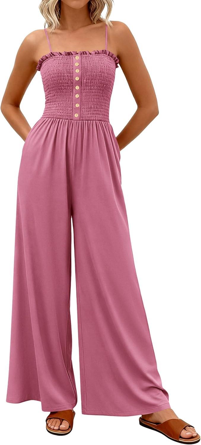 Be the first to review “PRETTYGARDEN Jumpsuits for Women 2026 Summer Sleeveless Smocked Button Wide Leg Rompers Spring Travel One Piece Outfits(Pink)” Cancel reply