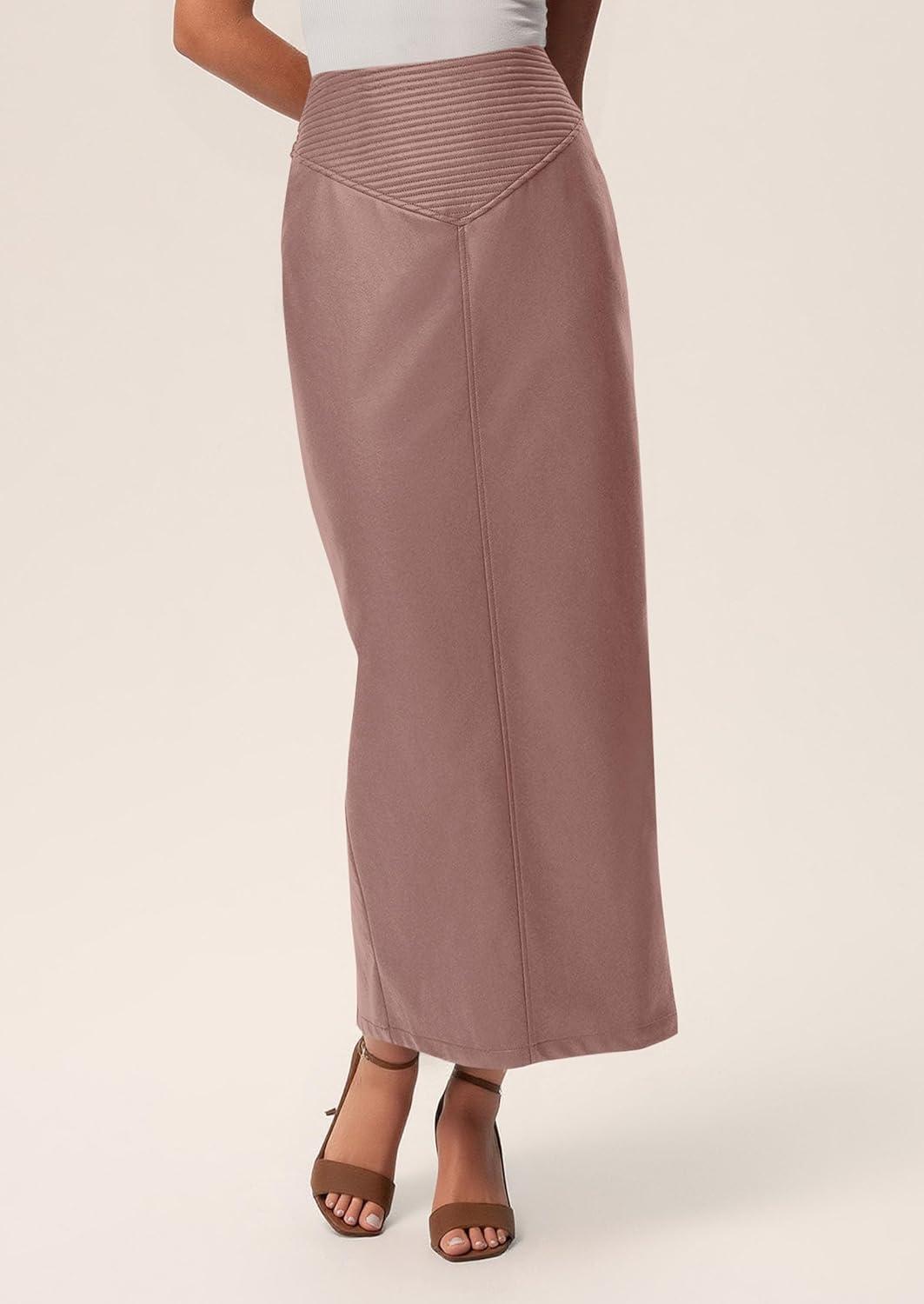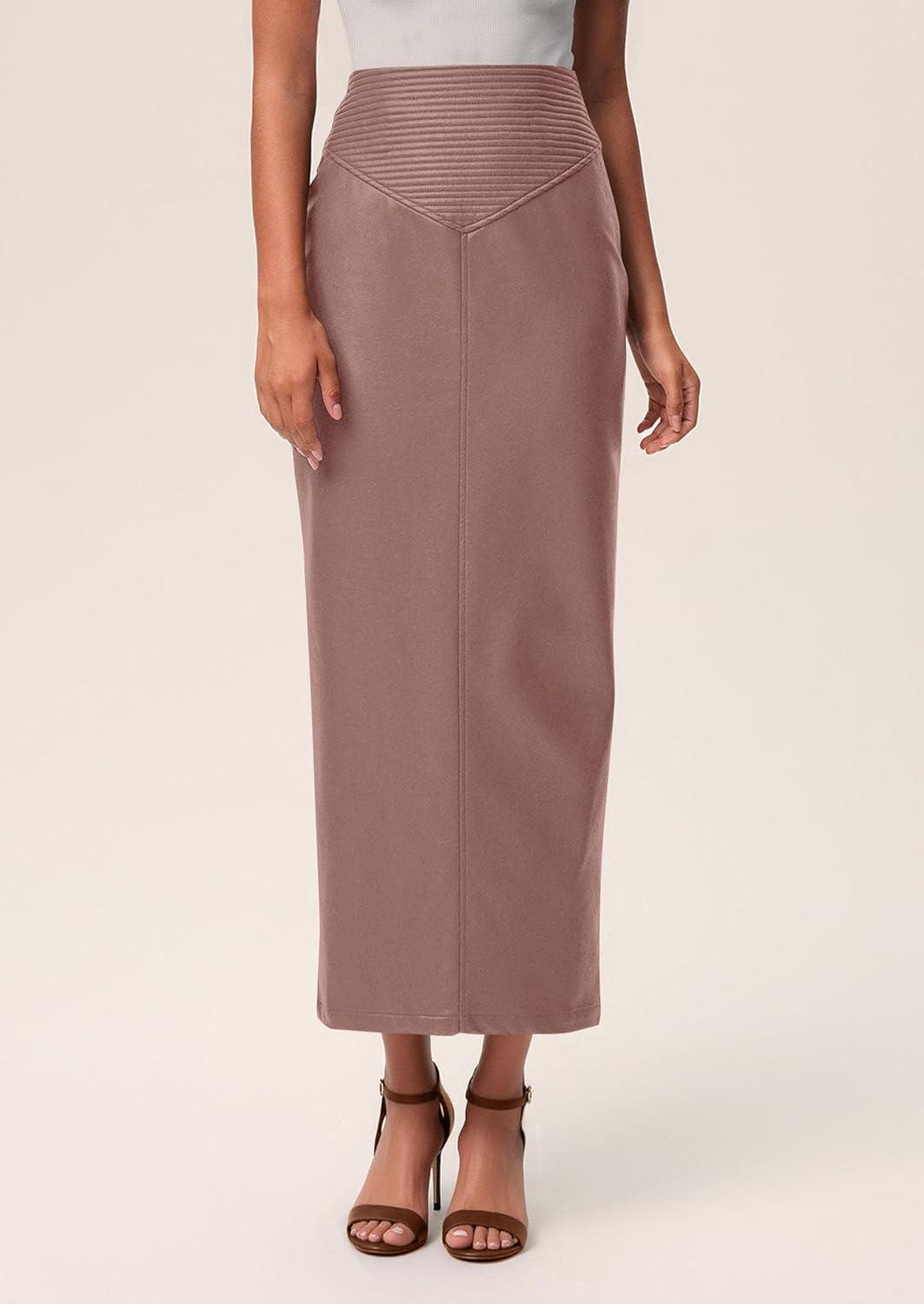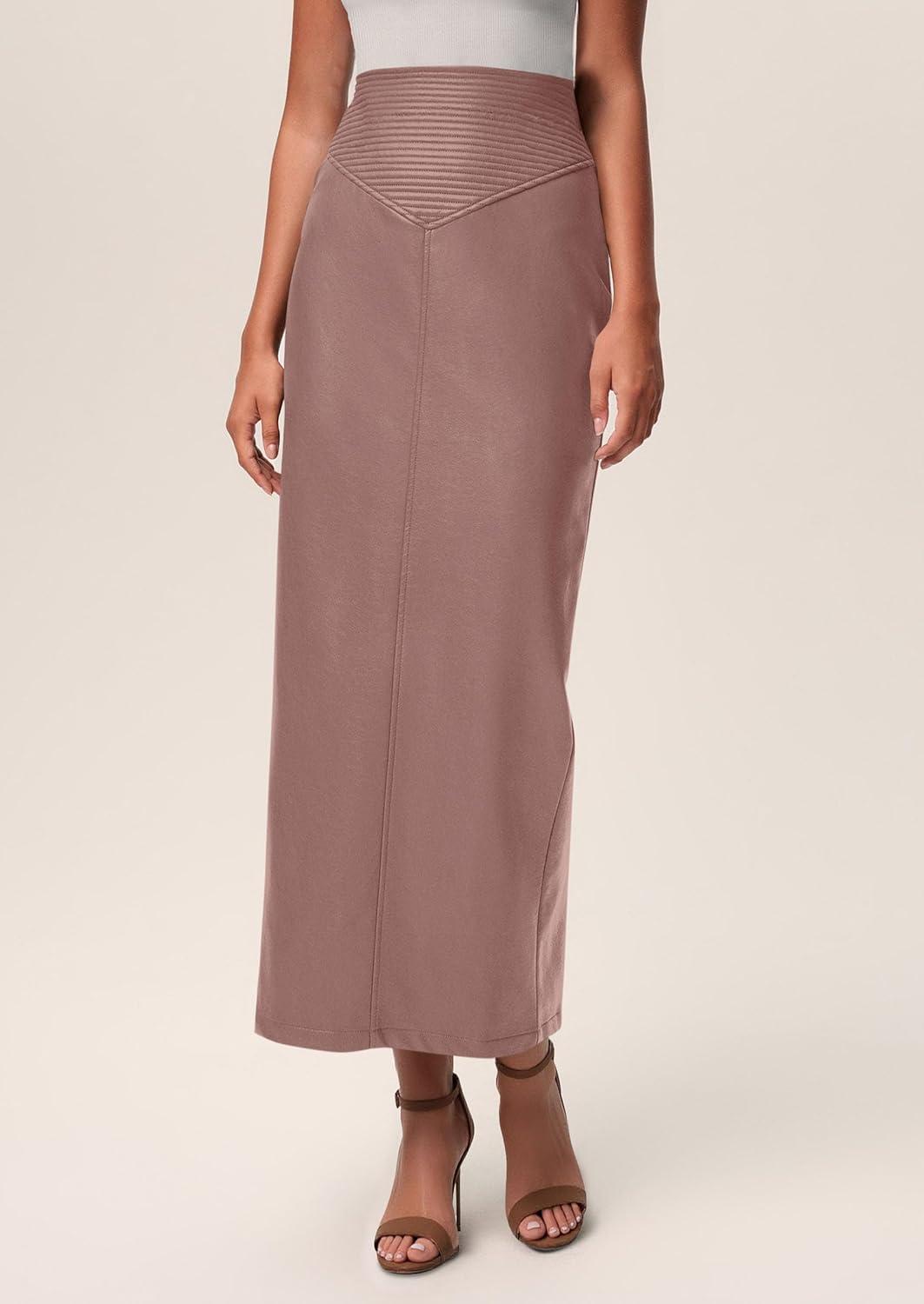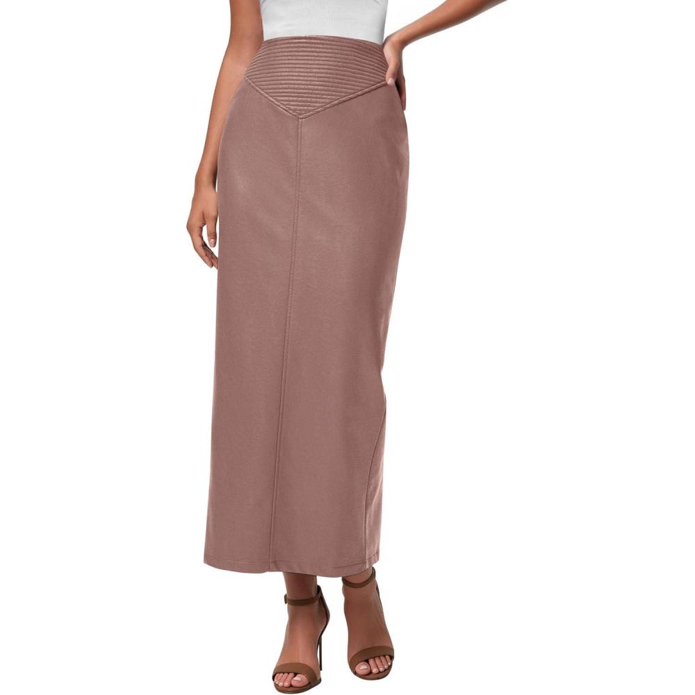 PRETTYGARDEN Long Skirts for Women 2025 Fall Fashion Clothing Faux Leather High Waist Dressy Casual Slit Pencil Maxi Skirt(Pink)
