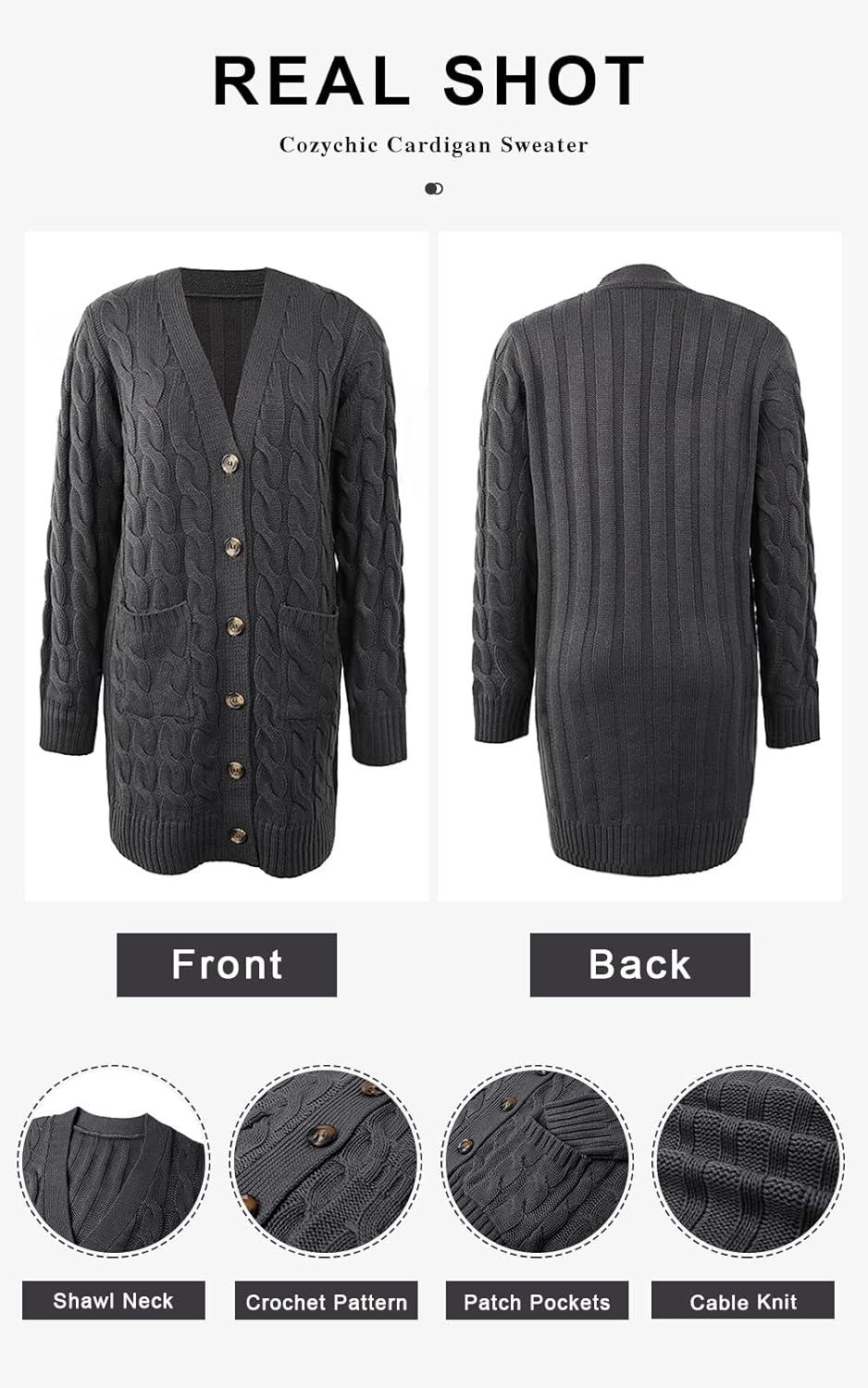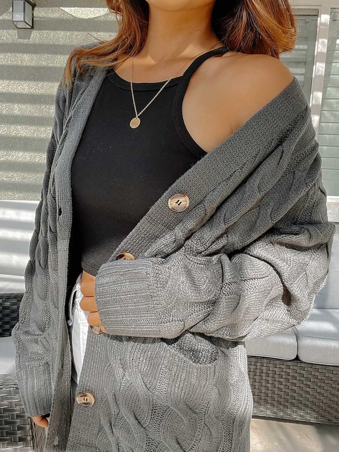 Be the first to review “PRETTYGARDEN Long Sleeve Cable Knit Long Cardigan for Women 2025 Fall Winter Chunky Open Front Button Sweaters with Pockets(Dark Grey)”