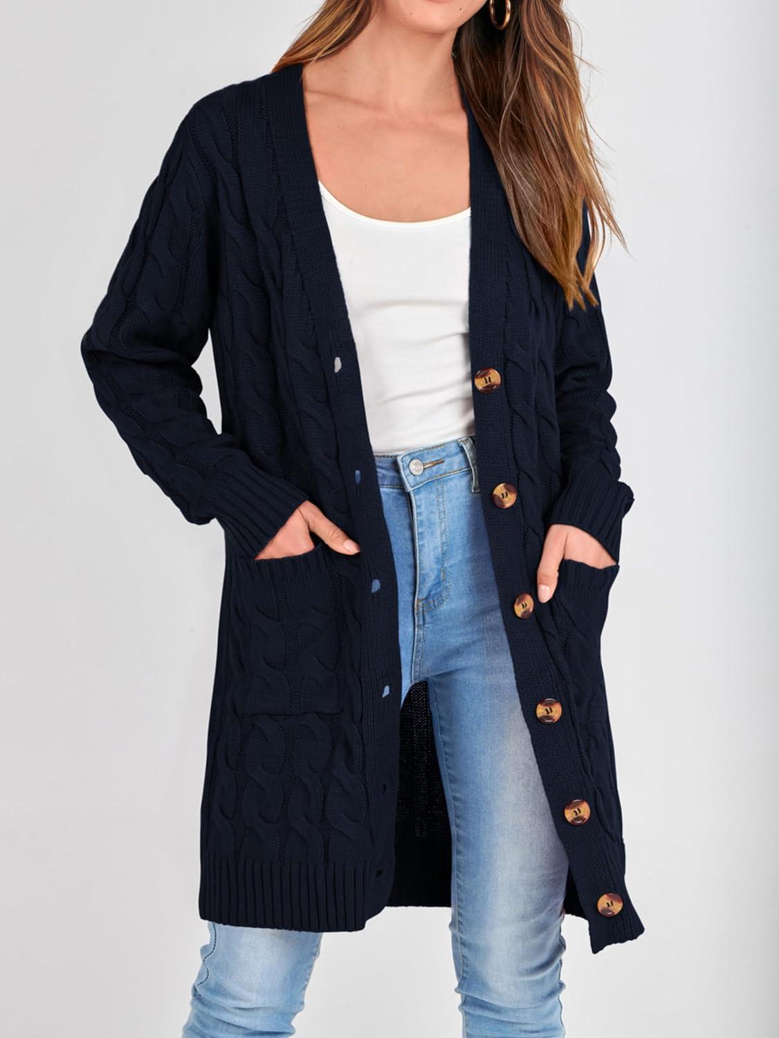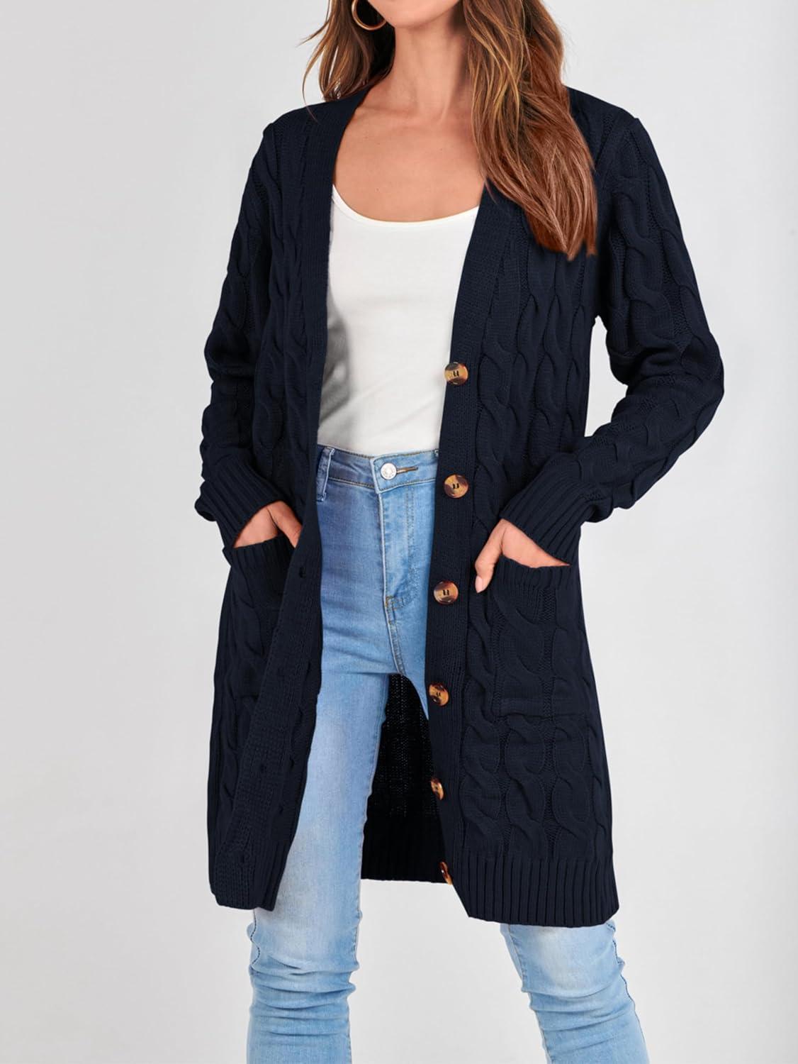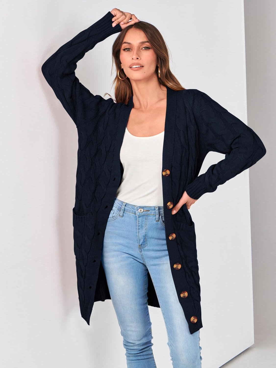 Get up to 50% off on PRETTYGARDEN Long Sleeve Cable Knit Long Cardigan for Women 2025 Fall Winter Chunky Open Front Button Sweaters with Pockets(Navy) styles during our spring sale event.