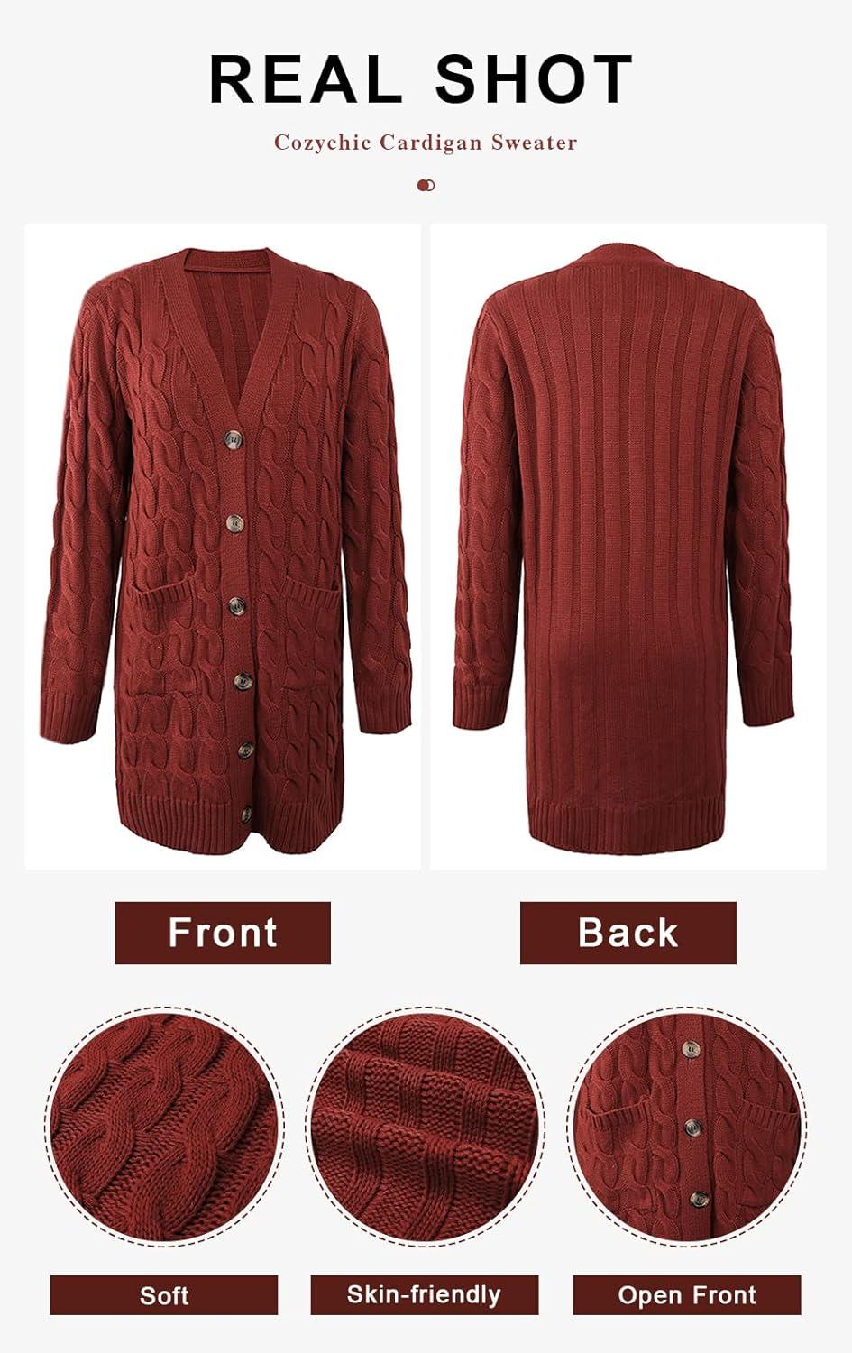 Be the first to review “PRETTYGARDEN Long Sleeve Cable Knit Long Cardigan for Women 2025 Fall Winter Chunky Open Front Button Sweaters with Pockets(Rust Red)”
